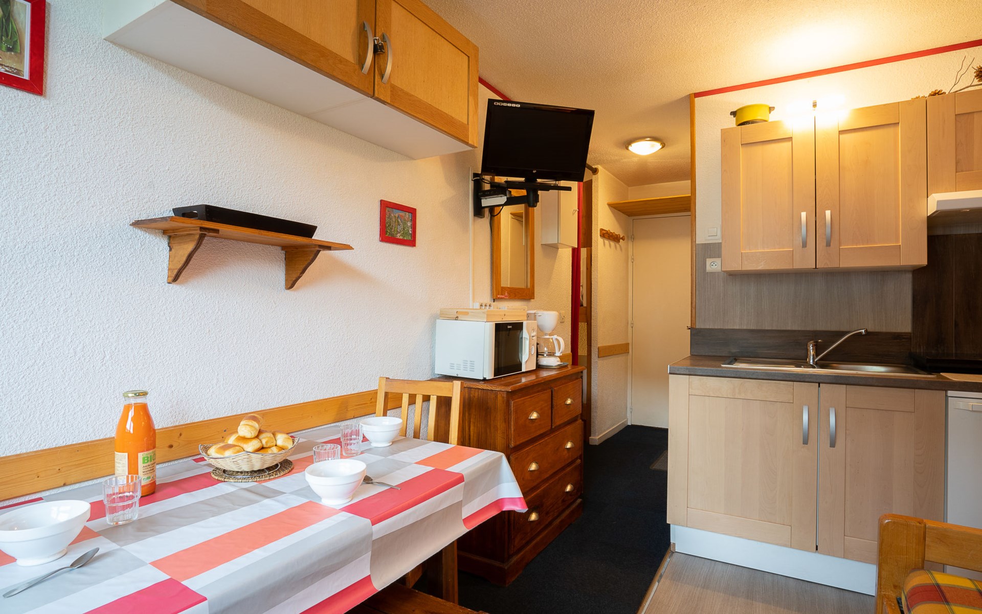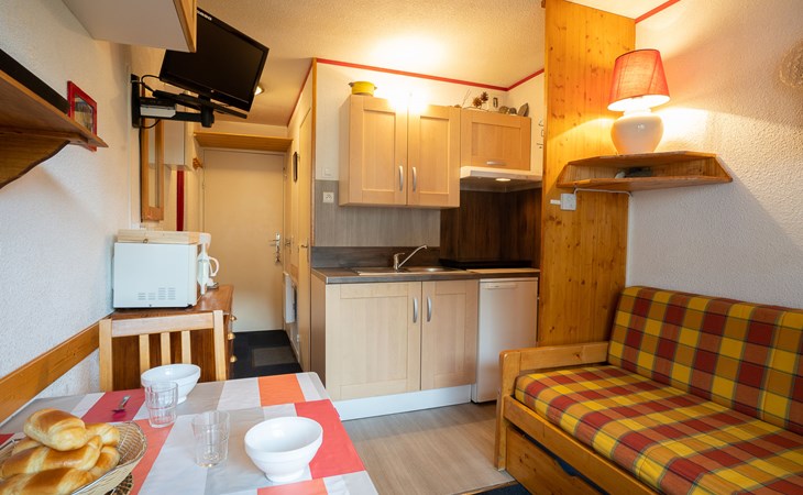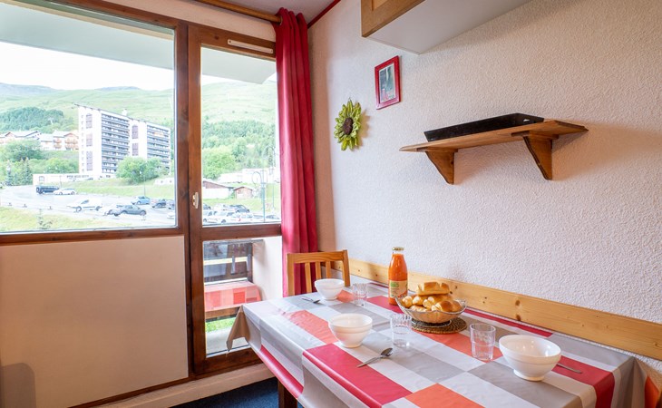 The residence Le Sarvan is located 20 m from the free lift, linking the area of Preyrand to la Croisette with ski school, shopping.. open from 0830 hrs to 2300 hrs. Residence "Le Sarvan". In the district of Preyerand, directly by the skiing area. In the complex: lift, storage room for skis. Public parking. Grocery, supermarket 100 m, shopping centre 400 m, bus stop "Gare routière les menuires" 700 m. Sports centre 400 m, skisport facilities 50 m, slopes 20 m, ski school 400 m. Well-known ski regions can easily be reached: 3 Vallées. Please note: the photograph shows a typical example. Additional accommodations can be booked.