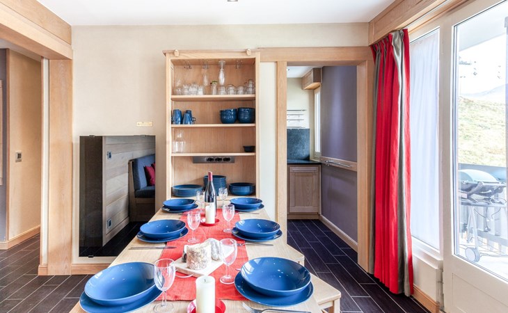Tignes le Lac: Residence "Le Bec Rouge (Le Lac)", 8 storeys. Excellent location: right in the centre but still quiet, 150 m from the skiing area. In the complex: lift, storage room for skis, central heating system. Shop 200 m, grocery 200 m, supermarket, shopping centre, restaurant 100 m, bar 100 m, bakery 100 m, bus stop, indoor swimming pool 200 m, 200 m. Golf course (18 hole) 1 km, minigolf 1 km, sports centre, chair lift 100 m, gondola lift 200 m, skisport facilities 150 m, slopes 200 m, ski rental 200 m, ski bus stop, ski school 400 m, fishing possibilities 200 m. Nearby attractions: Le Lagon (Piscine, wellness, fitness) 200 m, Centre Sportif Tignespace 200 m, Cinéma 1 km, Bike park l'été 100 m, Base nautique l'été 200 m. Well-known ski regions can easily be reached: Tignes & Val d'Isère 300km de pistes 100 m. Well-known lakes can easily be reached: Le Lac de Tignes 200 m. Hiking paths: Le Parc National de la Vanoise 100 m. Please note: ski bus (free of charge). Free ski bus service to the ski region Tignes & Val d'Isère. In case of good snow conditions, the house is accessible on skis. Please note: Loading and unloading of baggage is possible at the holiday house. Guarded residence. The keys‘ handover takes place by the agency Interhome in Tignes le Lac. Additional accommodations can be booked.