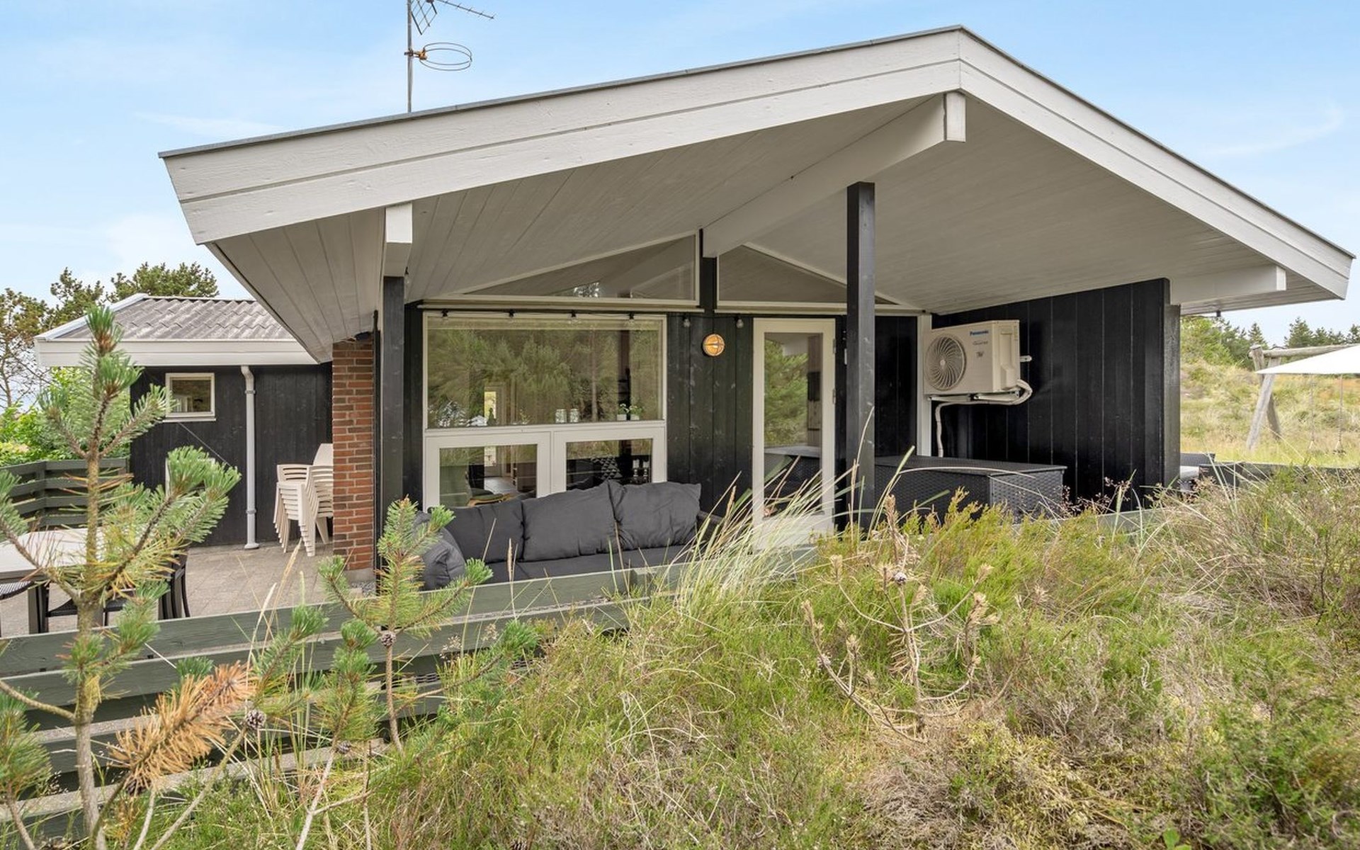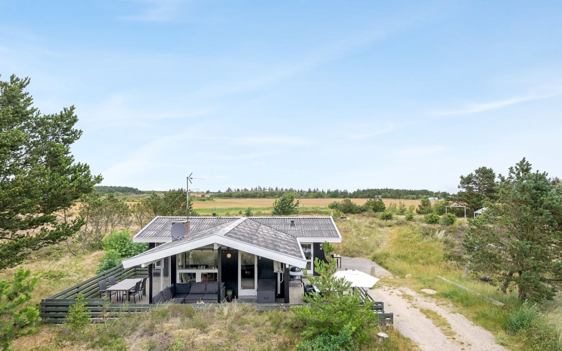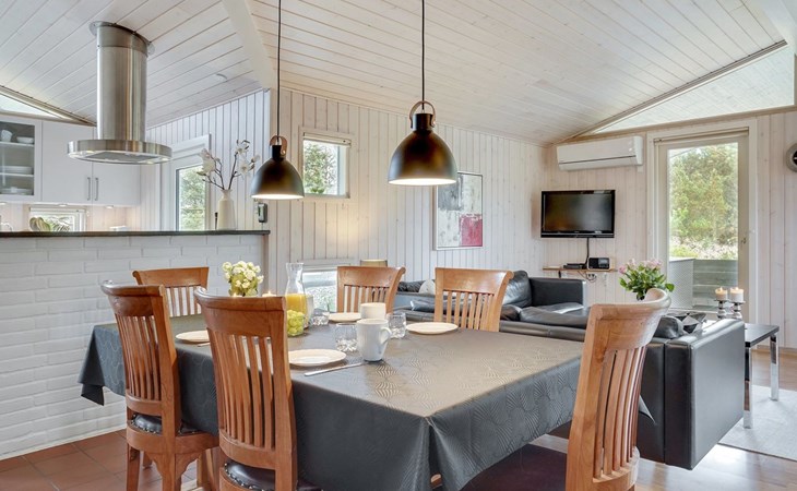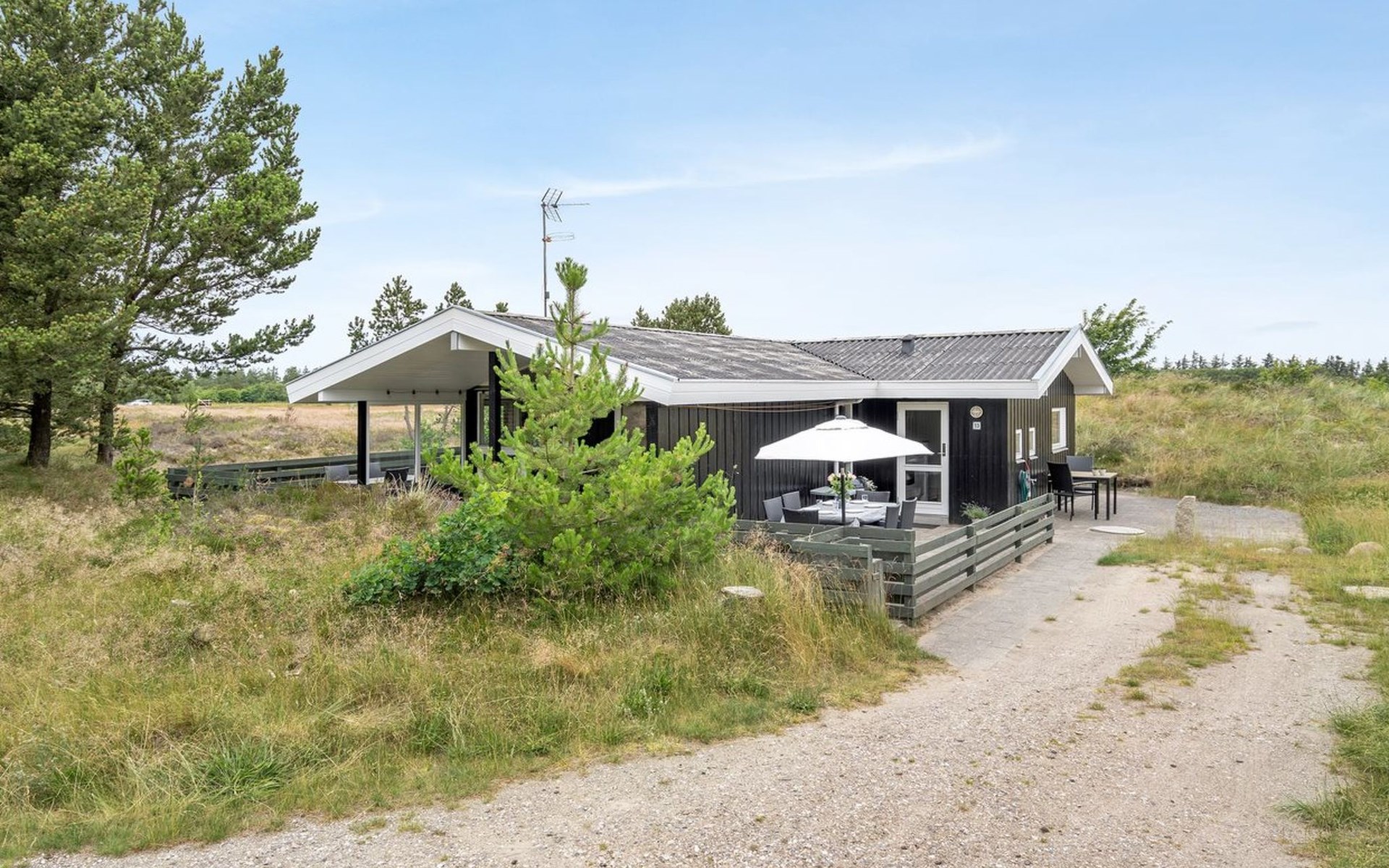 Single-family house, built in 1986. 3.9 km from the sea. Private: natural state property 2'750 m2. Terrace (80 m2), children's playground (swing). In the house: sauna, washing machine, tumble dryer. Parking at the house. Grocery 2.6 km. The owner does not accept any youth groups.