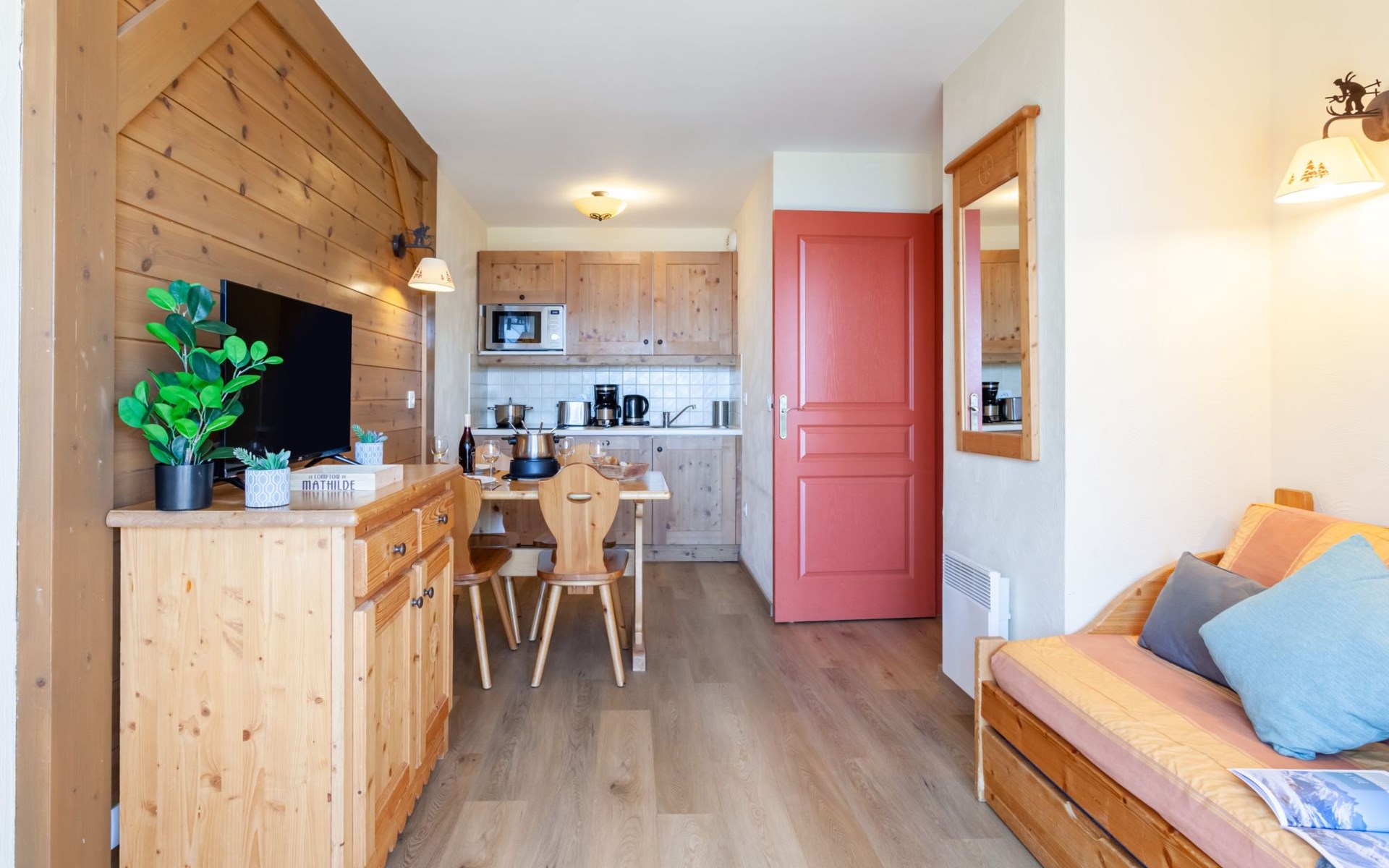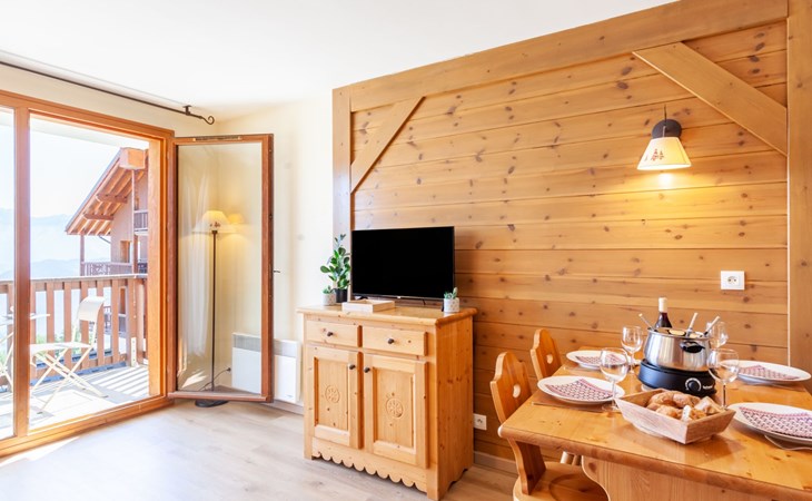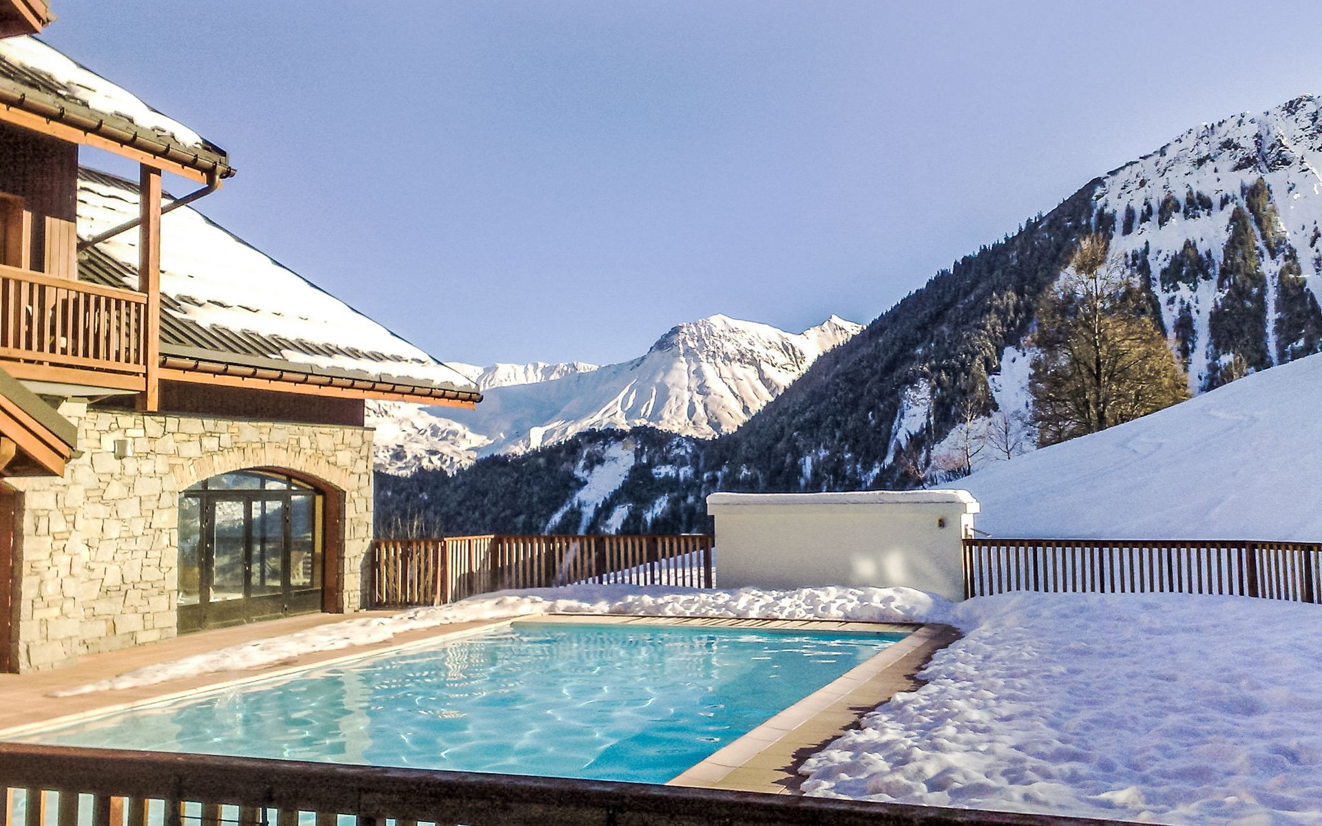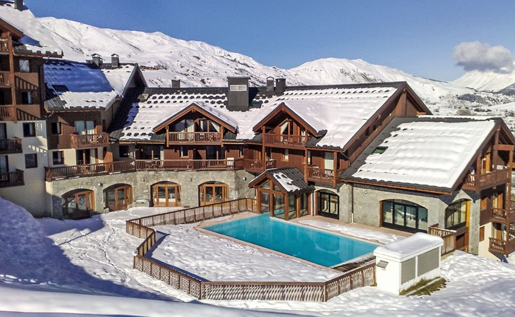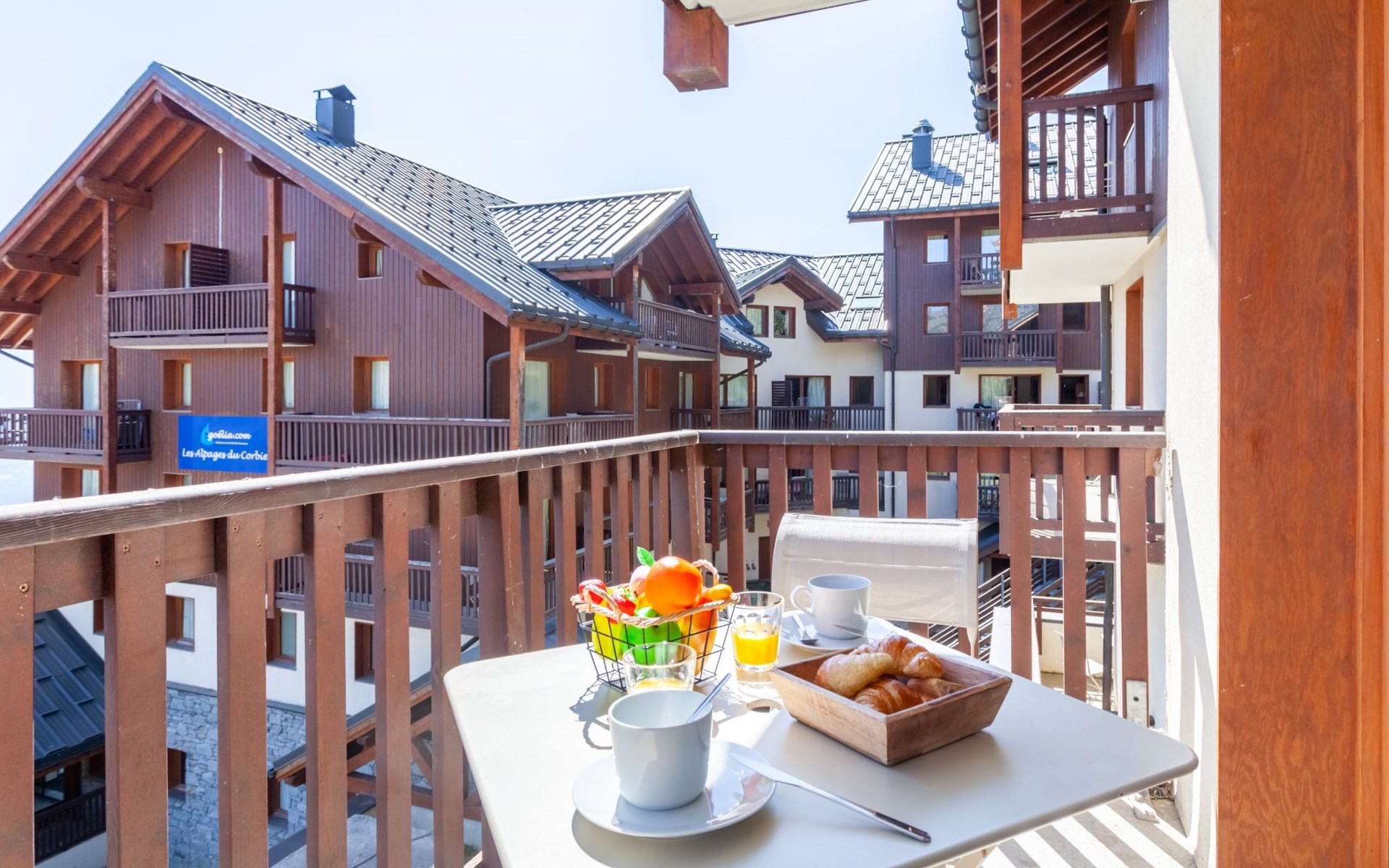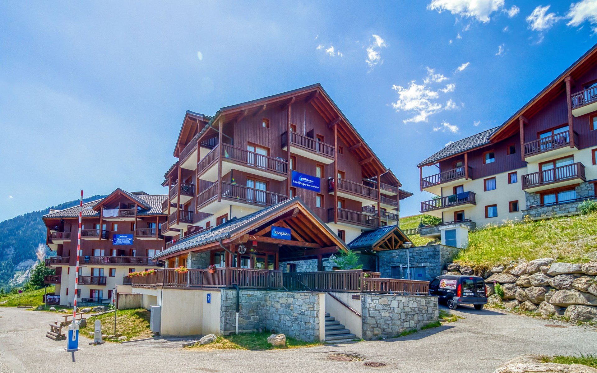 Beautiful residence "Les Alpages du Corbier", 8 storeys, built in 2007. Below Corbier, 700 m from the centre, 50 m from the skiing area. For shared use: swimming pool angular heated (5 x 10 m, depth 150 cm, seasonal availability: 14.Dec. - 11.Apr. and 05.Jul. - 29.Aug. pool opening hours: 10:00-18:45). Shower/WC in the pool area. In the complex: restaurant, bar, internet access, sauna, fitness room, lift, storage room for skis, washing machine, tumble dryer (for shared use, extra). 50 m long steep, narrow motor access. In Winter: please take snow chains. Public parking 150 m. Shop 600 m, grocery 100 m, restaurant, bar 600 m, bus stop "Bagagerie" 700 m, railway station "St Jean de Maurienne" 15 km. Chair lift, skisport facilities, slopes 100 m, ski bus stop 50 m, ski school 600 m, ski-kindergarten 400 m, sled run 600 m. Please note: ski bus (free of charge). In case of good snow conditions, the house is accessible on skis.