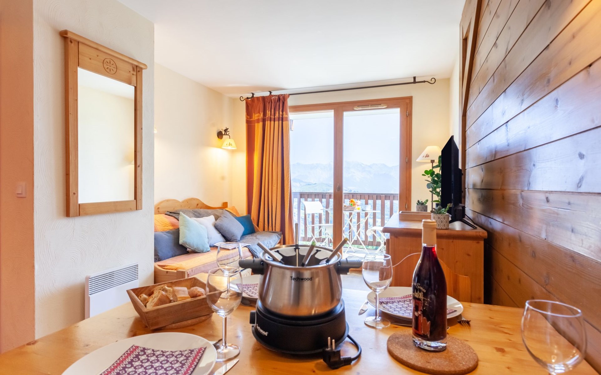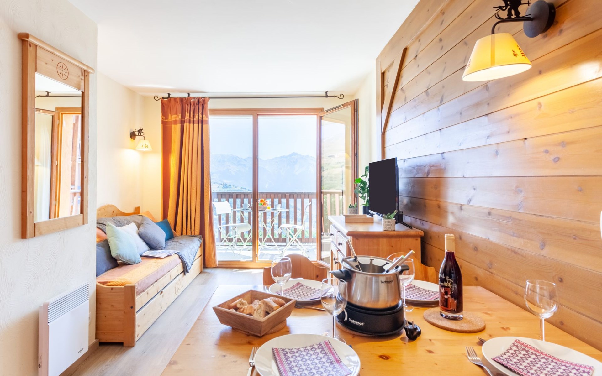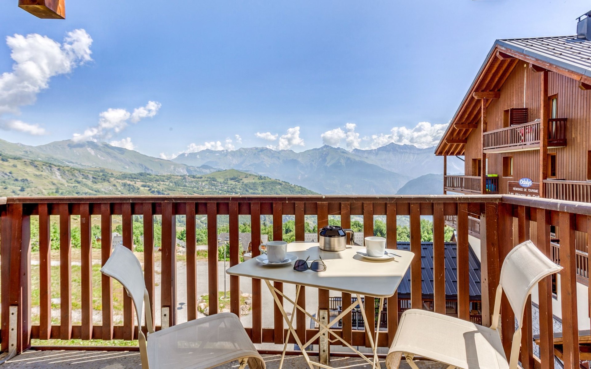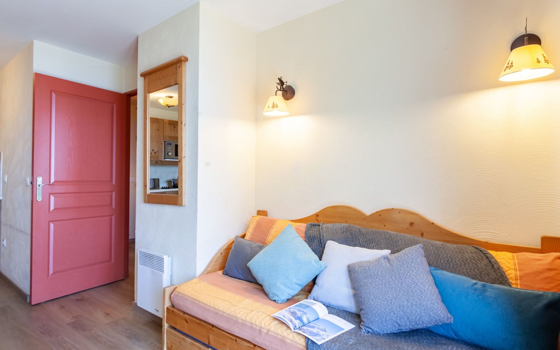 Beautiful residence "Les Alpages du Corbier", 8 storeys, built in 2007. Below Corbier, 700 m from the centre, 50 m from the skiing area. For shared use: swimming pool angular heated (5 x 10 m, depth 150 cm, seasonal availability: 14.Dec. - 11.Apr. and 05.Jul. - 29.Aug. pool opening hours: 10:00-18:45). Shower/WC in the pool area. In the complex: restaurant, bar, internet access, sauna, fitness room, lift, storage room for skis, washing machine, tumble dryer (for shared use, extra). 50 m long steep, narrow motor access. In Winter: please take snow chains. Public parking 150 m. Shop 600 m, grocery 100 m, restaurant, bar 600 m, bus stop "Bagagerie" 700 m, railway station "St Jean de Maurienne" 15 km. Chair lift, skisport facilities, slopes 100 m, ski bus stop 50 m, ski school 600 m, ski-kindergarten 400 m, sled run 600 m. Please note: ski bus (free of charge). In case of good snow conditions, the house is accessible on skis.