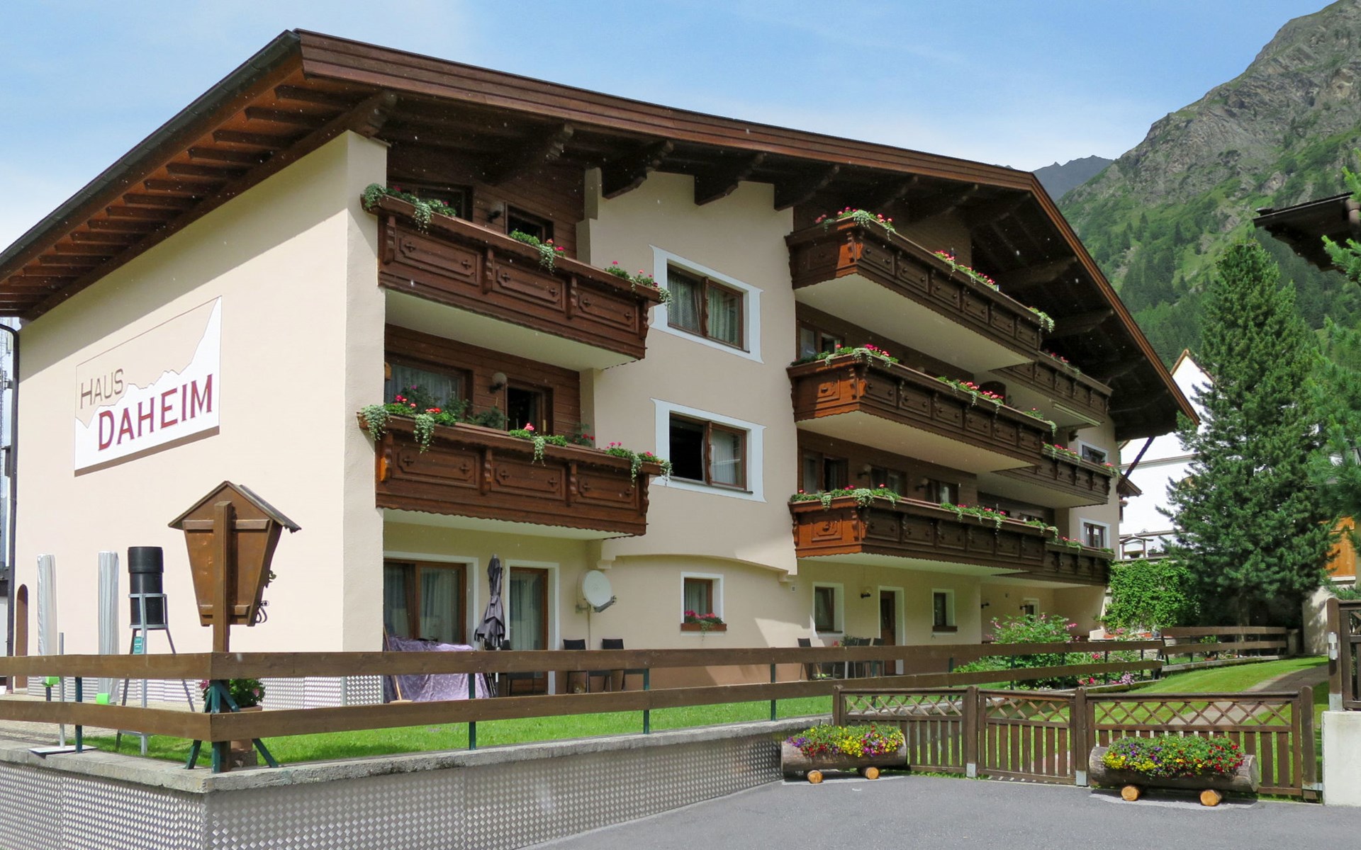 Child friendly apartment block "Daheim". 5 apartments in the property. In the district of Plangeross 9.5 km from the centre of St. Leonhard im Pitztal, 27 km from the centre of Wenns, 38 km from the centre of Imst. For shared use: property, meadow. Garden furniture. In the house: storage room for bicycles, storage room for skis, central heating system. Motor access to the house. Parking on the premises. Shop 2 km, bus stop "Plangeross" 230 m, railway station "Ötztal Bahnhof" 44 km, outdoor swimming pool 27 km. Walking paths from the house, cycle lane 100 m, mountain railway 3 km, gondola lift 2 km, ski bus stop 150 m, ski school 2 km, cross country ski track 50 m. Well-known ski regions can easily be reached: Rifflsee 2 km, Pitztaler Gletscher 9 km. Please note: ski bus (free of charge). The owner lives in the same residence.