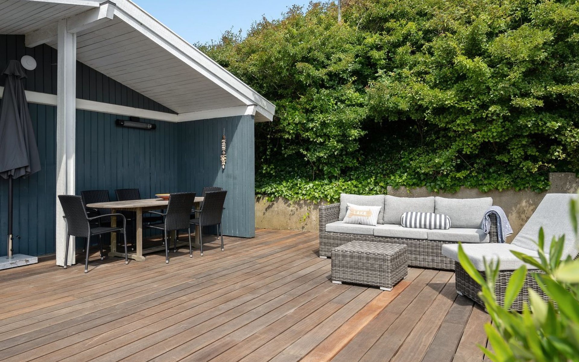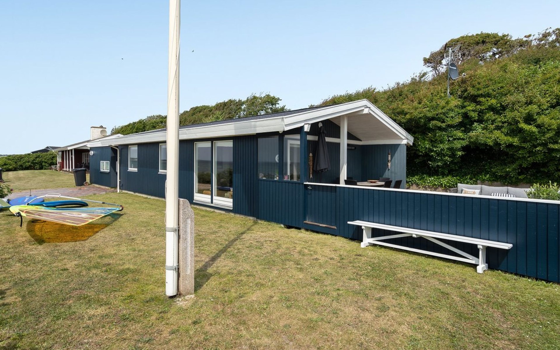 Single-family house, built in 1967. 20 m from the sea. Private: property 526 m2, well-kept garden. Terrace (60 m2), barbecue. In the house: washing machine, tumble dryer. Parking at the house. Grocery 6.5 km. Golf course 5 km. The owner does not accept any youth groups.