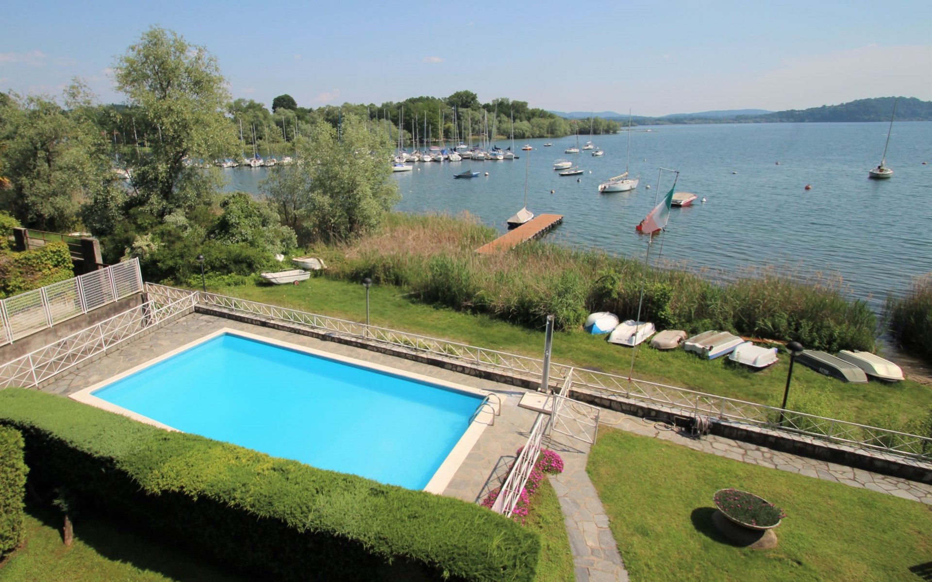 Apartment house. 12 apartments in the residence. 1.5 km from the centre of Monvalle, 6.5 km from the centre of Ispra, 8.5 km from the centre of Laveno, on the lake. For shared use: small garden, swimming pool (10 x 5 m, depth 120 - 220 cm, seasonal availability: 01.Jun. - 30.Sep. pool opening hours: 09:00-13:00 and 15:00-19:00). Outdoor shower. Motor access to the house. Stepped path to the house. Restaurant 1 km, bar 1 km, bus stop 300 m, grass beach "Guree" 1.3 km. Marina 200 m. Nearby attractions: Santa Caterina del Sasso 4 km, Rocca di Angera 14 km. Hiking paths: Campo dei Fiori 20 km. Please note: car recommended. Neighbourhood highly sensitive to noise. Quietness and good behaviour expected.