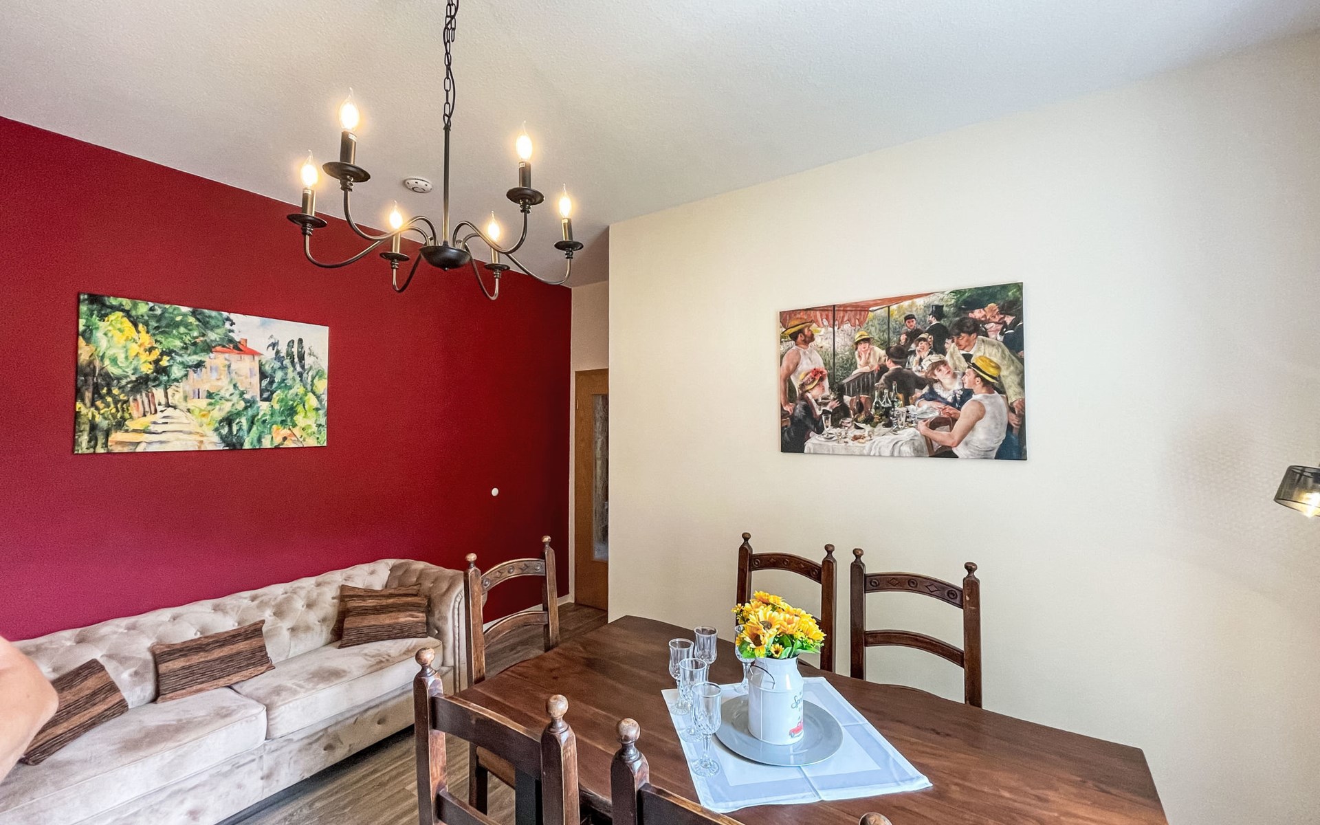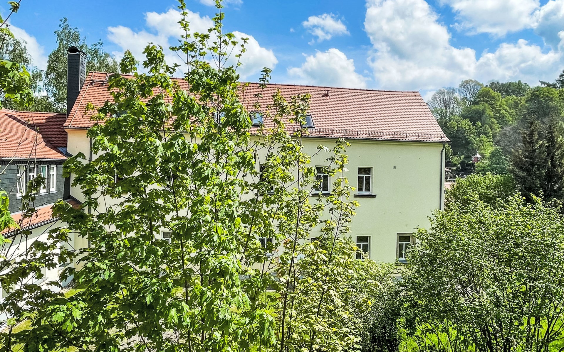 House "Residenz am Sonnenhübel". 3 apartments in the residence. In the district of Waltersdorf, 3.3 km from the centre of Großschönau, 12 km from the centre of Zittau. Supermarket 3 km, restaurant 200 m, café 300 m, bus stop "Waltersdorf Postamt" 150 m, railway station "Großschönau" 3 km, 50 m, outdoor swimming pool 4 km, bathing lake 13 km. Walking paths from the house 50 m, ski lift 1.8 km, ski school 1.8 km, cross country ski track 1.8 km, children's playground 50 m. Well-known lakes can easily be reached: Olbersdorfer See 13 km.