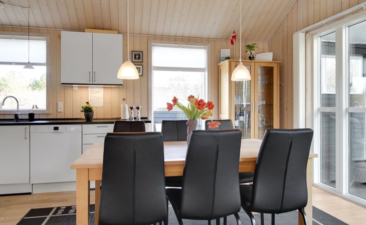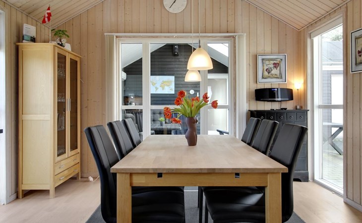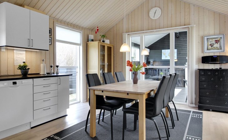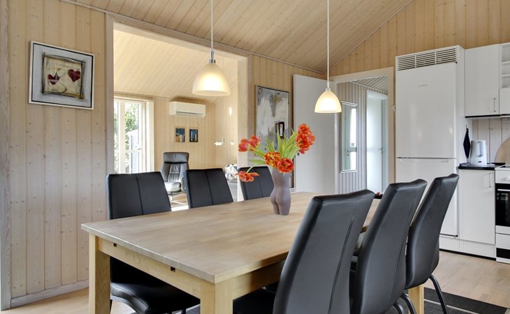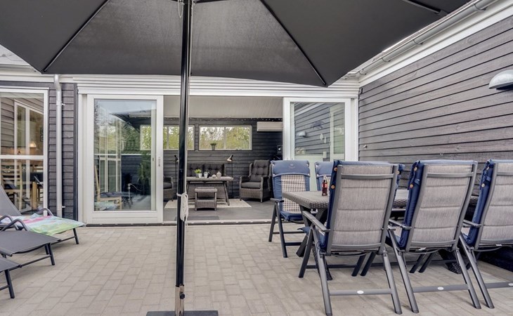 Single-family house, built in 2007. 3.5 km from the sea. Private: natural state property 1'800 m2. Terrace (40 m2), barbecue. In the house: sauna, washing machine, tumble dryer. Parking at the house. Carport. Grocery 1.5 km. Golf course 1.5 km. The owner does not accept any youth groups.