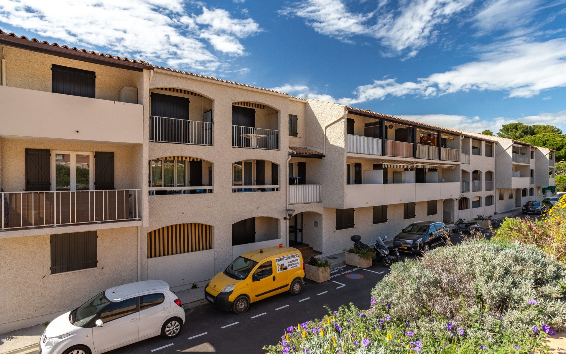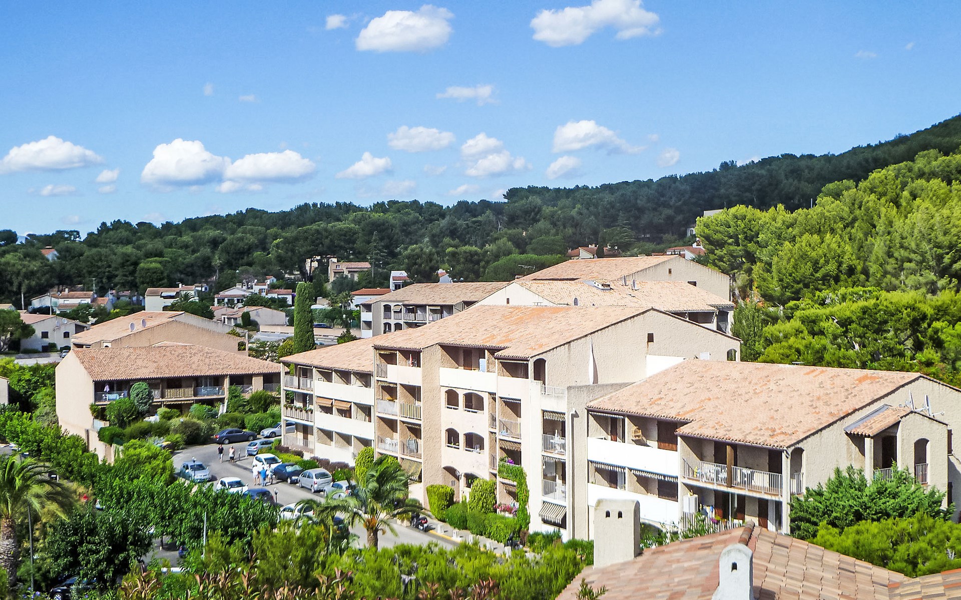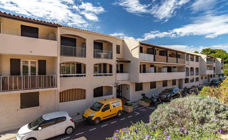 Residence "Les Aigues Marines", 3 storeys. In the resort 2 km from the centre of Saint Cyr sur Mer, in an elevated position in the residential district, 600 m from the sea, 600 m from the beach, located by a road, in the countryside. Parking (limited number of spaces), public parking extra. Grocery 200 m, restaurant 500 m, bus stop "Le Viguier" 2.3 km, railway station "Saint Cyr les Lecques-La Cadière" 3.1 km, sandy beach "La Madrague", shingle beach 600 m. Sports harbour 500 m, golf course (18 hole) 4 km. Nearby attractions: Aqualand 3 km, Sentier du Littoral 1 km. Hiking paths: Sainte Baume, Sainte Victoire, Calanques Port-Cros, Porquerolles, Ile verte, Embiez, Figuerolles, Cassis. Please note: the keys‘ handover takes place by the agency INTERHOME in St Cyr La Madrague. The photograph shows a typical example. Additional accommodations can be booked.