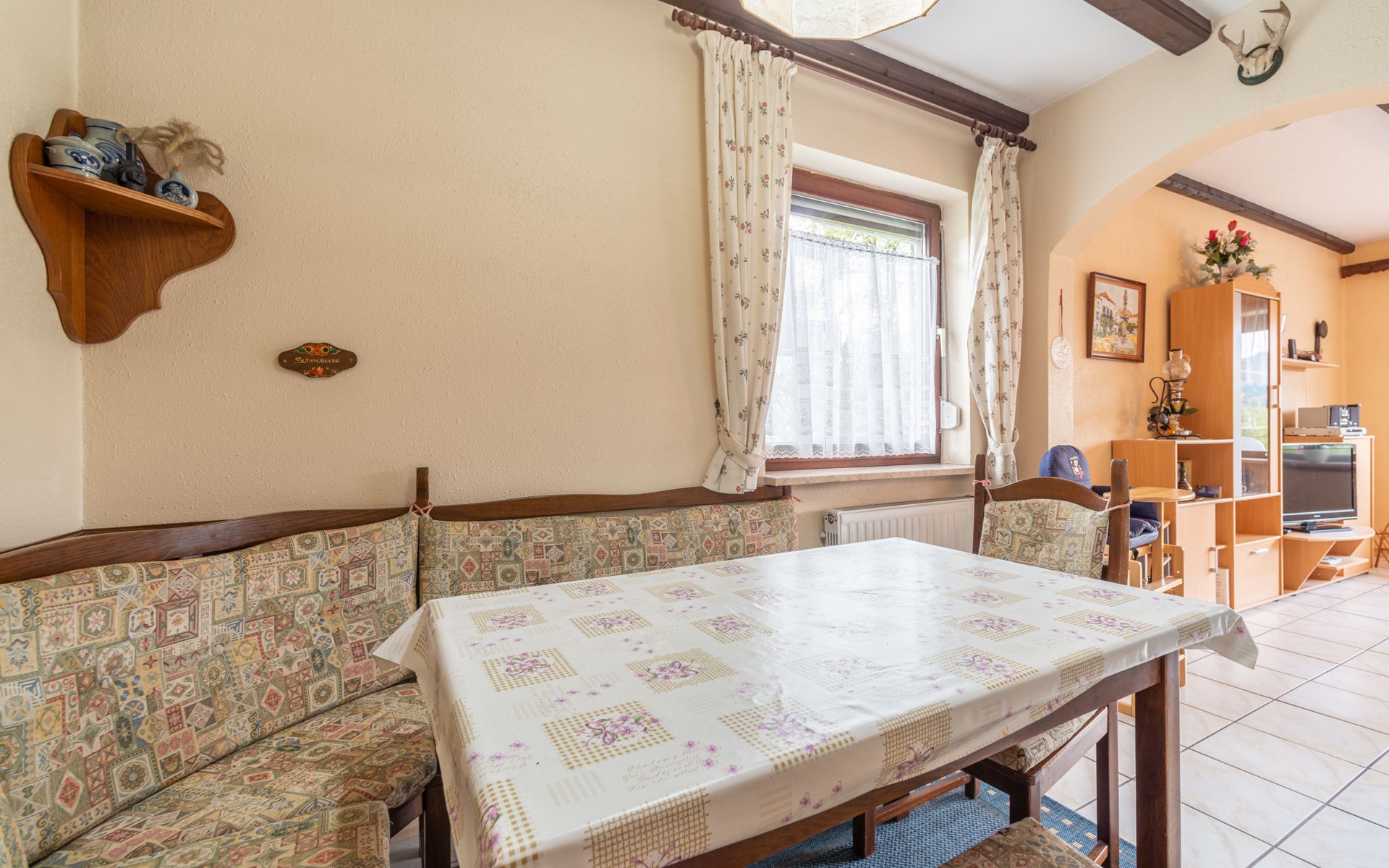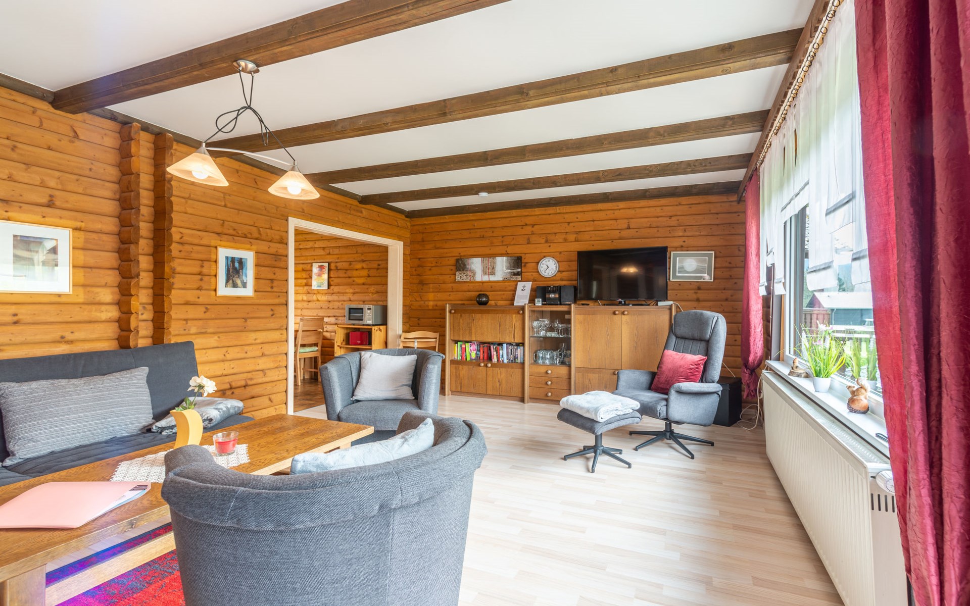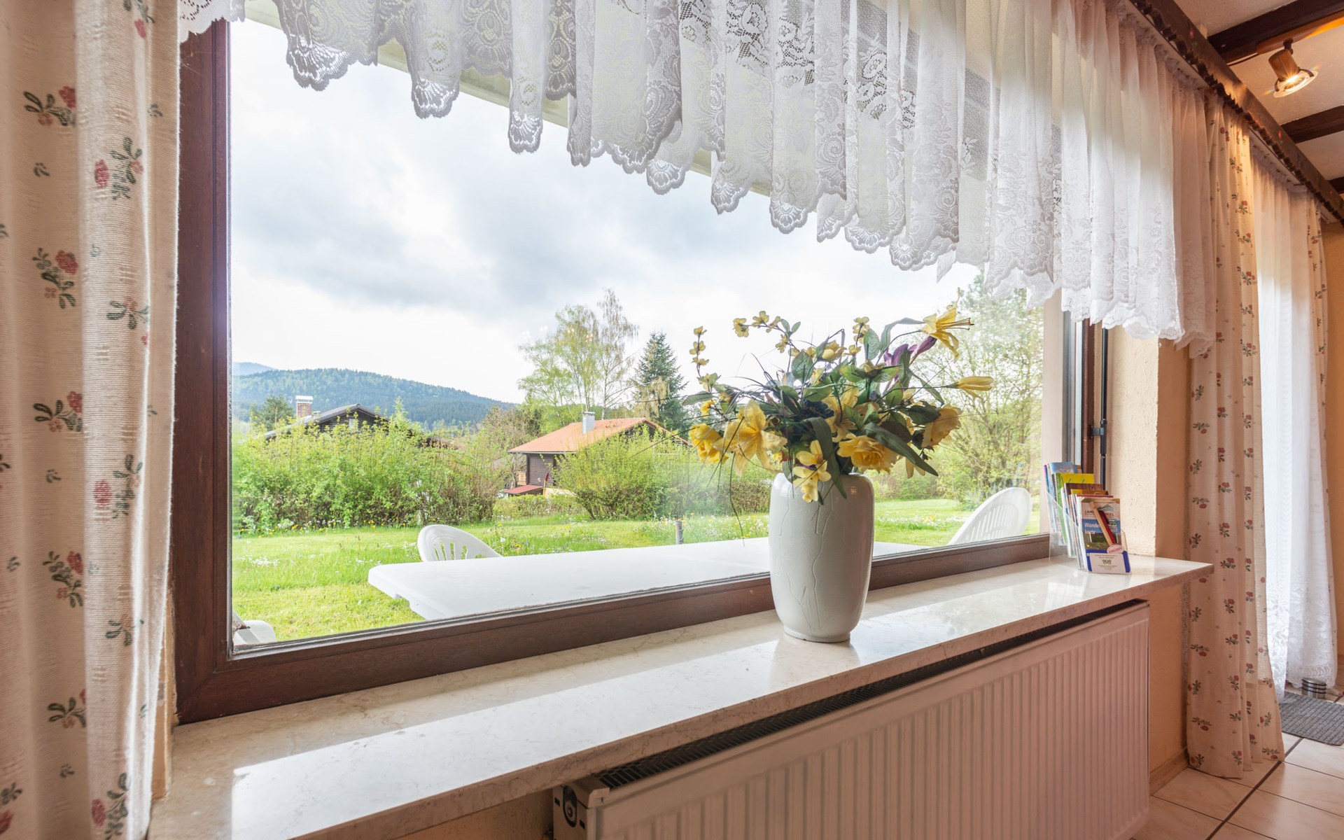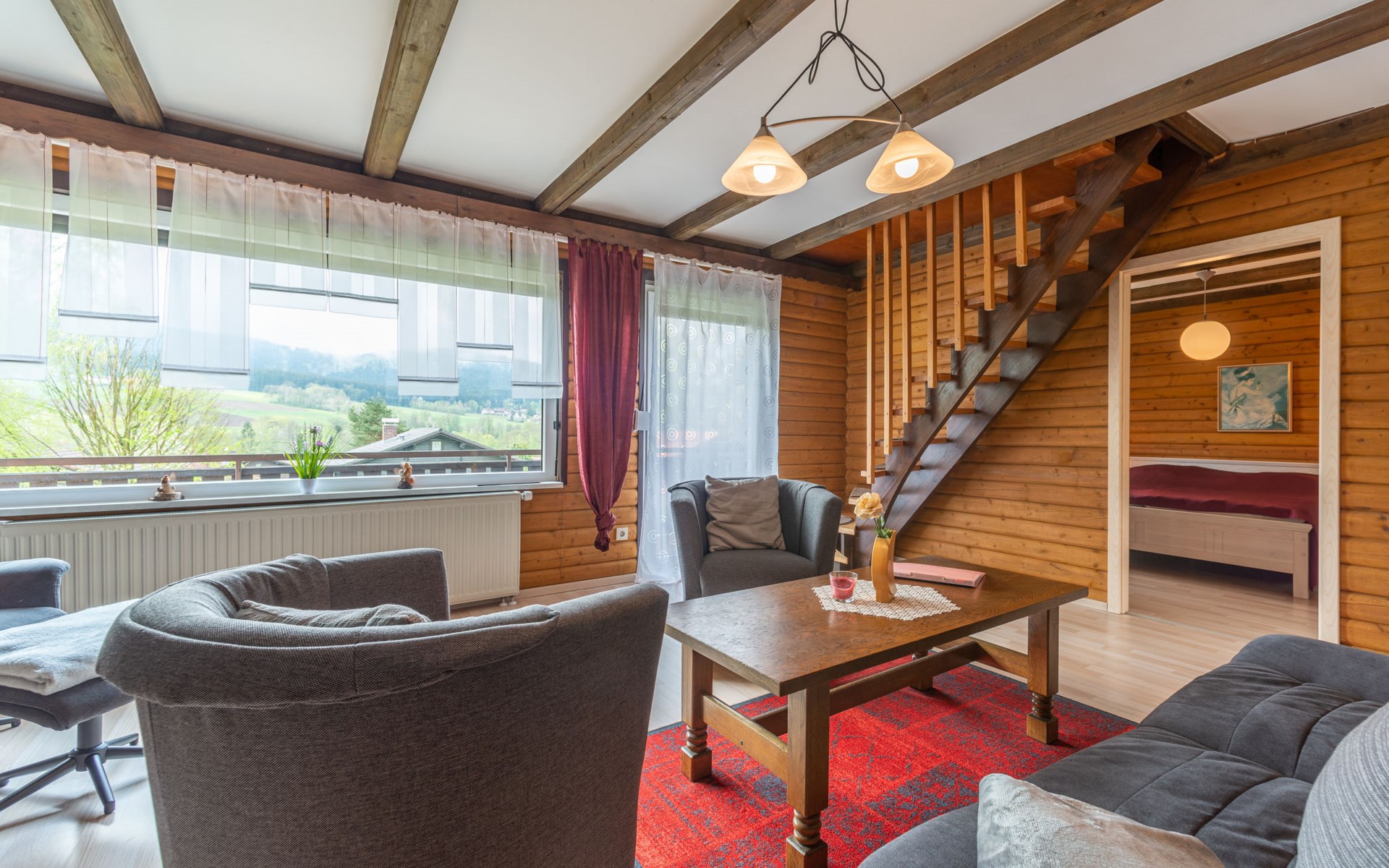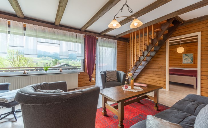 Child friendly holiday village "Am Hohen Bogen". In the district of Kummersdorf, outside the resort, 3 km from the centre of Arrach, on a slope, traffic calmed area, 300 m from the edge of the forest, 100 m from the lake, 9 km from the skiing area. For shared use: volleyball, children's playground (slide, swing, sandbox). In the complex: table tennis (extra). Central heating system. Parking at the house. Shop 3 km, grocery 3 km, supermarket 3 km, restaurant 3 km, bakery 3 km, railway station "Hohenwarth" 1.5 km, grass beach "Seepark Arrach" 5 km, outdoor swimming pool 10 km, thermal baths 10 km, bathing lake "Seepark Arrach" 5 km. Golf course (9 hole) 6 km, tennis 6 km, riding stable 800 m, chair lift 9 km, skisport facilities 9 km, slopes 9 km, ski rental 11 km, ski school 9 km, cross country ski track 11 km. Nearby attractions: Bayerwald-Tierpark Lohberg 15 km, Spielbank Bad Kötzting, Fun-Park Neukirchen, Tiergarten Straubing, Pullman-City. Well-known ski regions can easily be reached: Eck 6 km, Am Hohen Bogen 9 km, Arber 29 km. Hiking paths: Arberregion. Please note: car recommended. Groups of teenagers on request only. Boating, fishing 500 m. The holiday village consists of an apartment house and two-storey holiday houses with shared lawns and play areas. The distance from the individual houses to the natural swimming lake is 50 – 400 m.