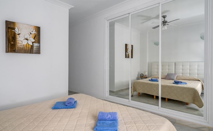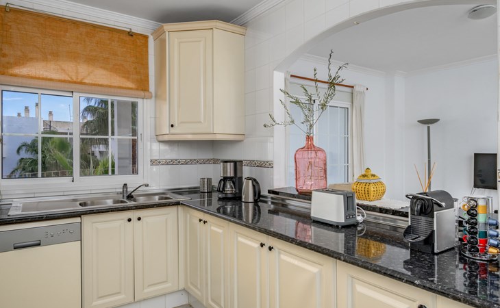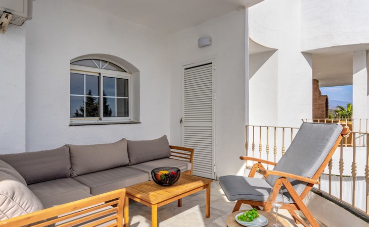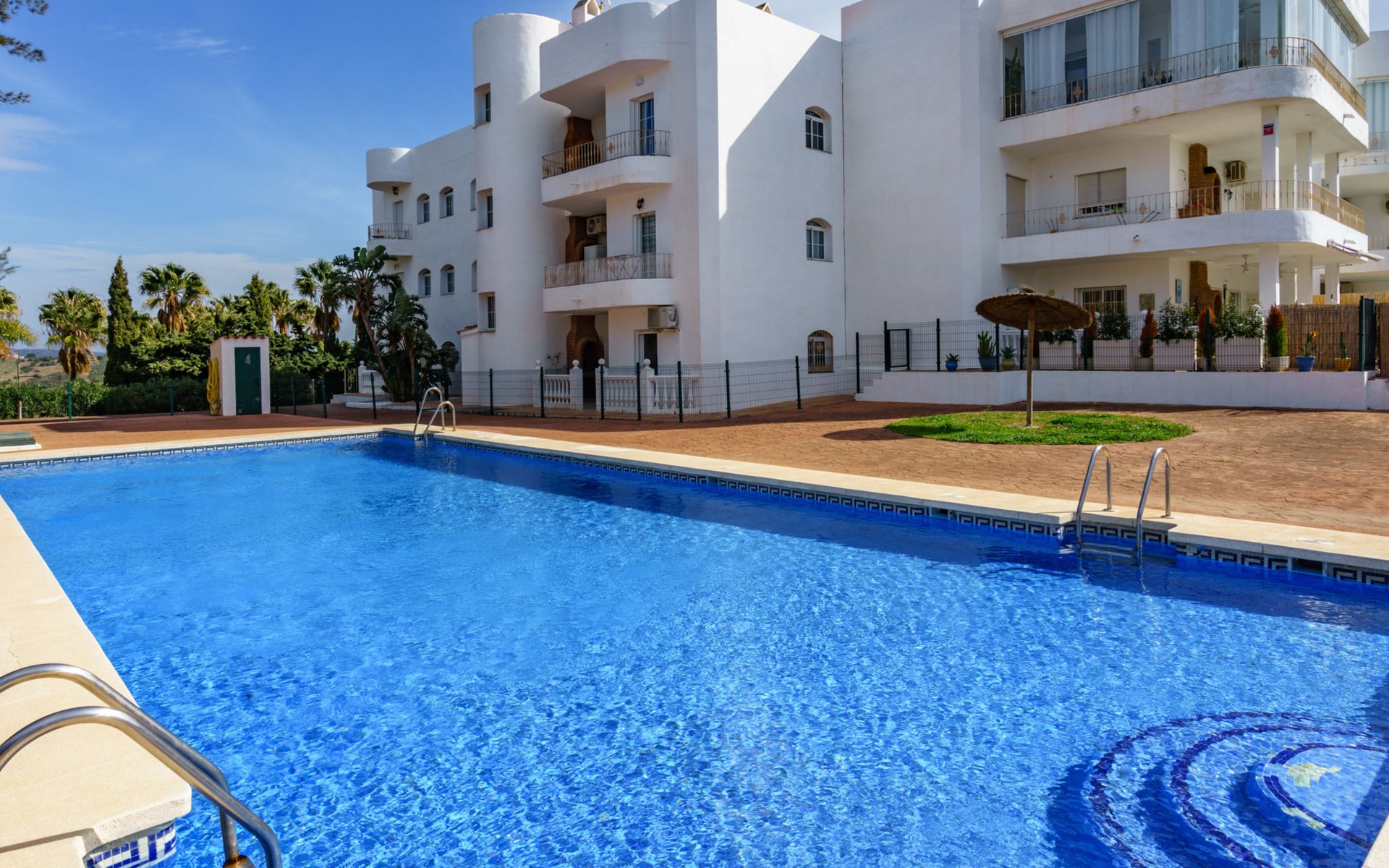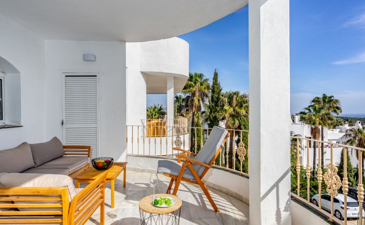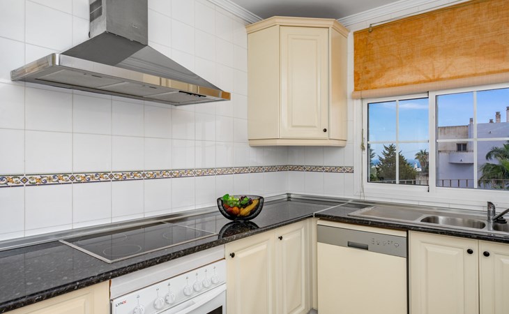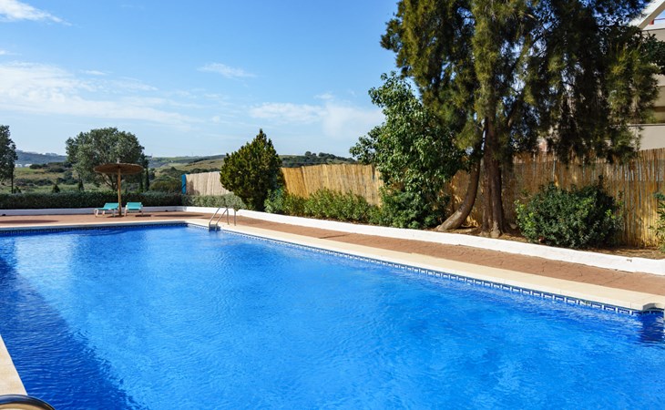 Apartment block "Las Brisas Estepona Golf", built in 2004. Outside the resort, 9 km from the centre of Estepona, on top of a hill, 3 km from the sea, 3 km from the beach. For shared use: property (fenced), swimming pool angular (7 x 18 m, depth 60 - 150 cm, seasonal availability: 01.Jan. - 31.Dec. pool opening hours: 09:00-21:00). Communal covered parking space n 1. Supermarket 3.6 km, bus stop "Arroyo Vaquero" 2.4 km, sandy beach "Playa Arroyo Vaquero" 3 km. Sports harbour 7.1 km, golf course (18 hole) 1 m.