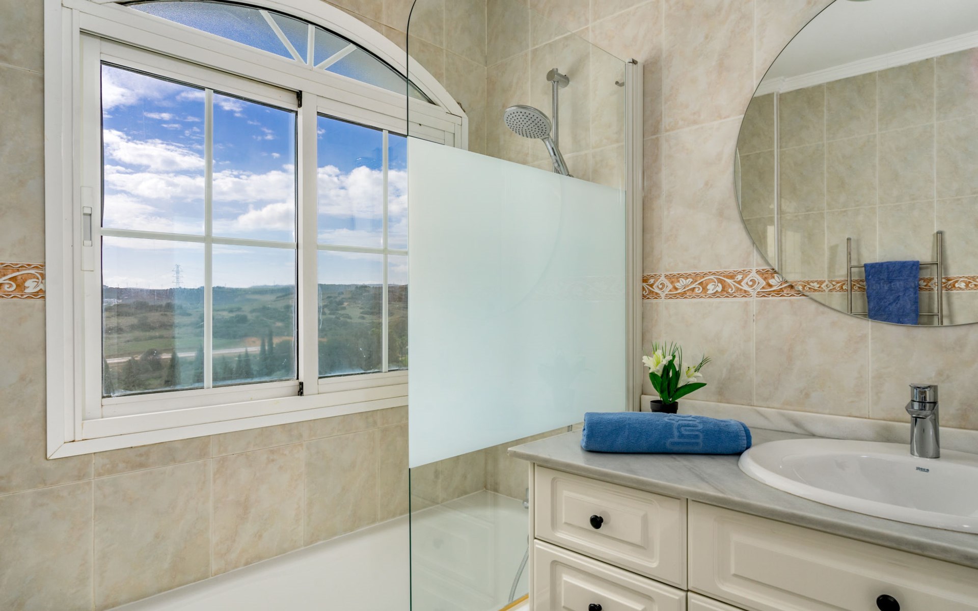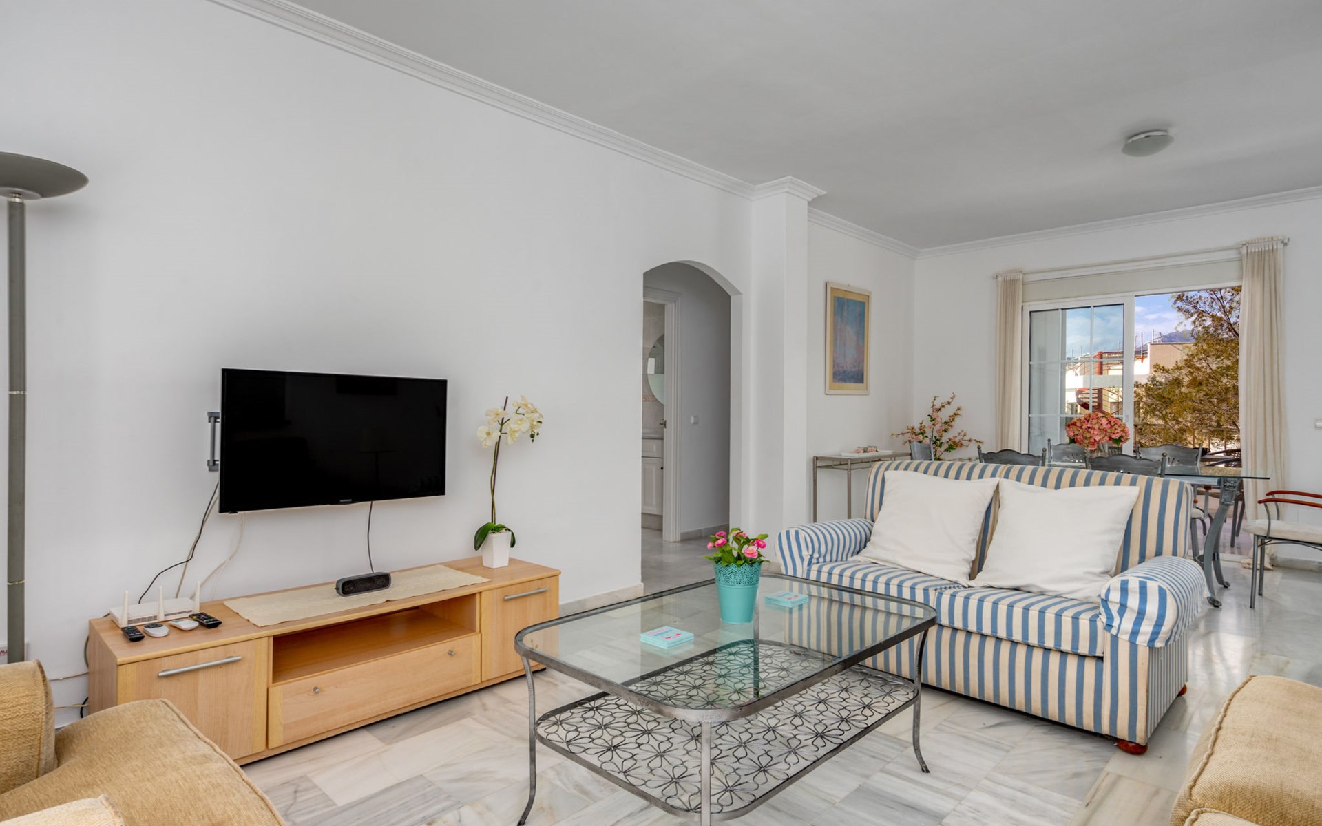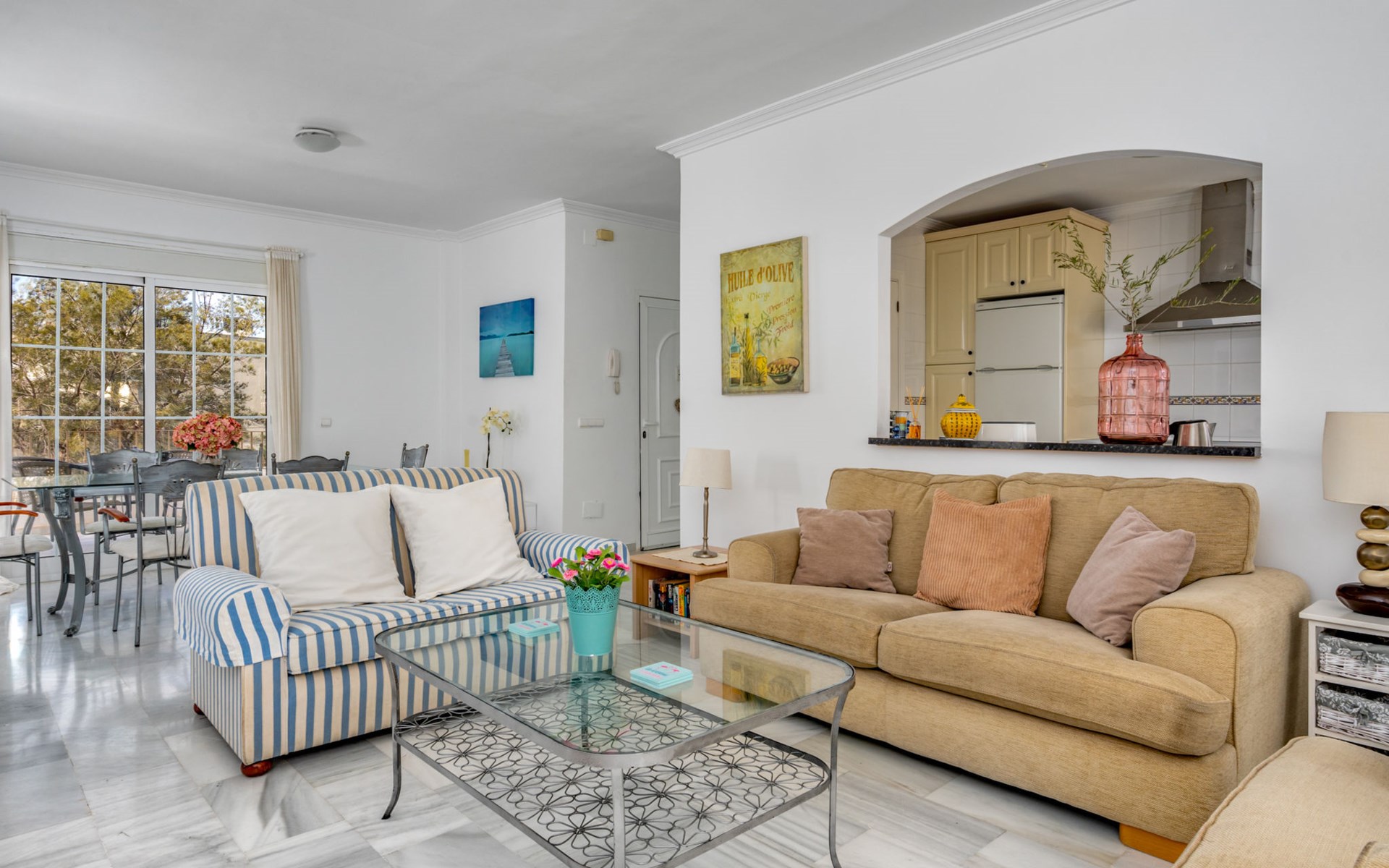 Apartment block "Las Brisas Estepona Golf", built in 2004. Outside the resort, 9 km from the centre of Estepona, on top of a hill, 3 km from the sea, 3 km from the beach. For shared use: property (fenced), swimming pool angular (7 x 18 m, depth 60 - 150 cm, seasonal availability: 01.Jan. - 31.Dec. pool opening hours: 09:00-21:00). Communal covered parking space n 1. Supermarket 3.6 km, bus stop "Arroyo Vaquero" 2.4 km, sandy beach "Playa Arroyo Vaquero" 3 km. Sports harbour 7.1 km, golf course (18 hole) 1 m.