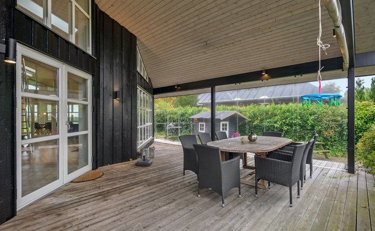 Single-family house, built in 2006. 100 m from the sea. Private: property 985 m2, well-kept garden. Barbecue. In the house: washing machine, tumble dryer. Parking at the house. Carport. E-charging station. Grocery 2 km. The owner does not accept any youth groups.