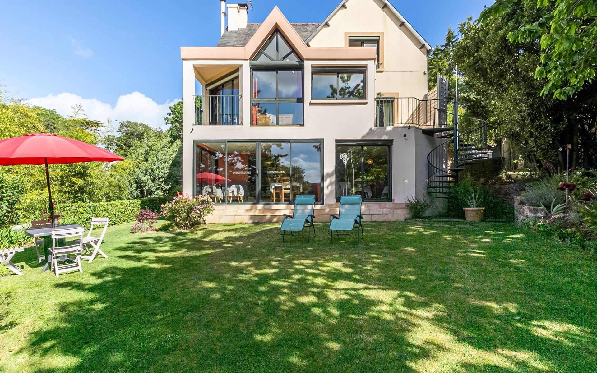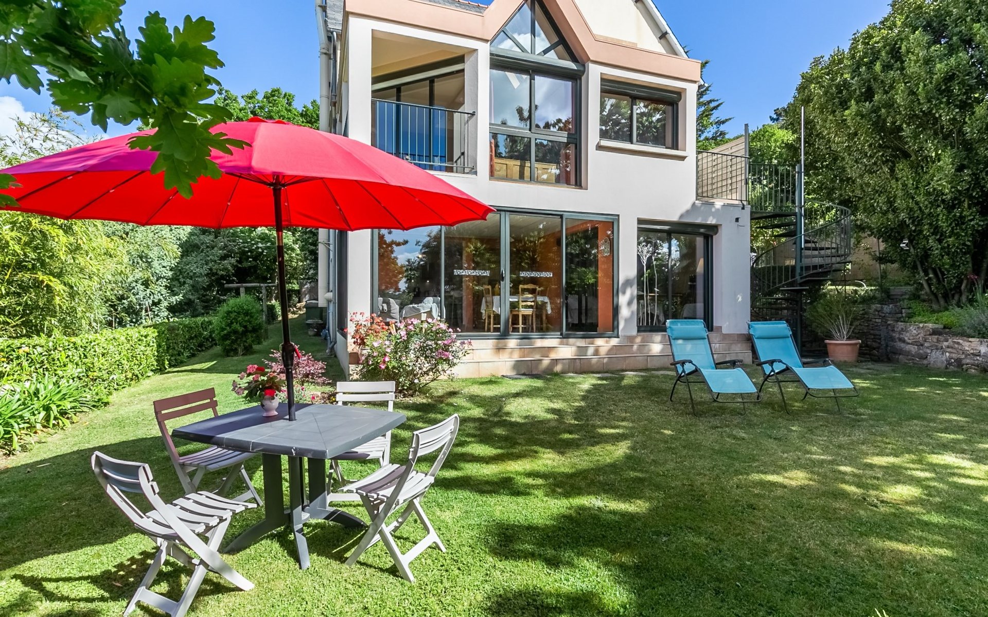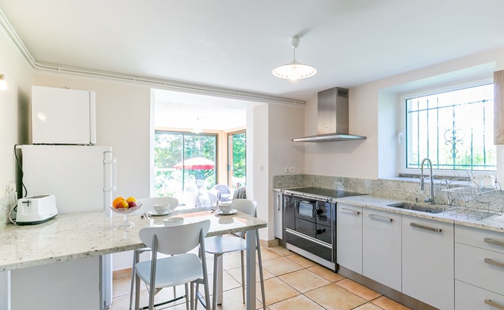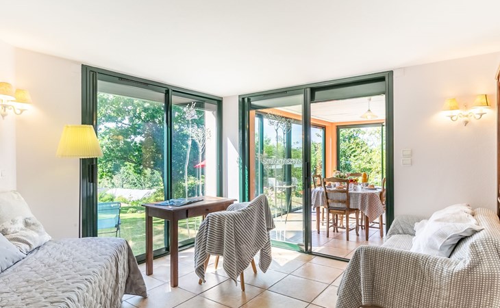 Daoulas 11 km from Plougastel-Daoulas: 2-family house "Ker Marie". On the outskirts, 400 m from the centre of Daoulas, 12 km from the sea, 12 km from the beach. For shared use: property 1'000 m2 with lawn. Private: garden 300 m2 (fenced) with lawn and flowers. (12 steps). Parking at the house. Shop, grocery 400 m, supermarket 850 m, restaurant 400 m, bakery 350 m, café 400 m, bus stop 500 m, sandy beach 12 km, park "D'Armorique" 10 km. Marina 16 km, golf course (18 hole) 11 km, sailing school 6 km, walking paths from the house 500 m. Nearby attractions: Brest 20 km, Oceanopolis 15 km, Rade de Brest 5 km, Plougastel 11 km, Quimper 53 km, Abbaye de Daoulas 200 m. Hiking paths: GR34, sentier des douaniers 500 m. Please note: car recommended. Baby equipment on request (included).