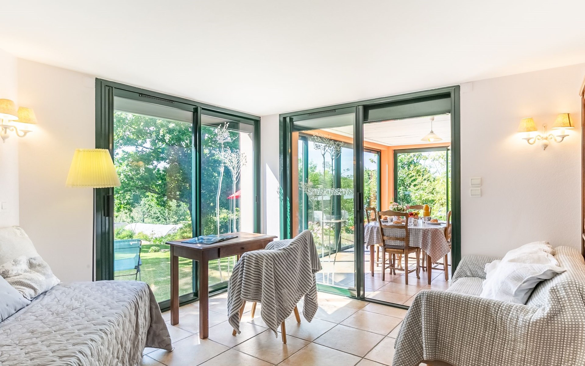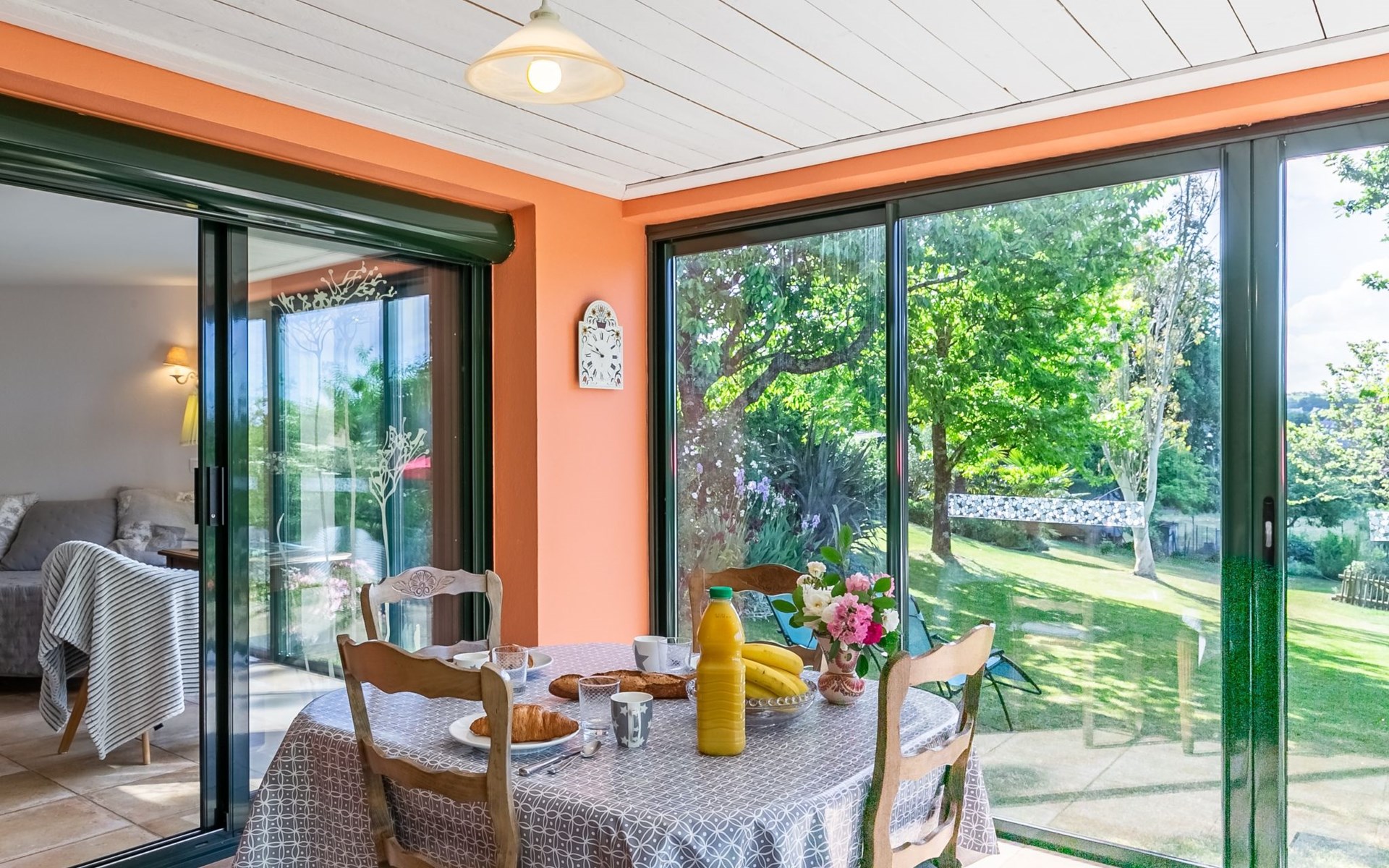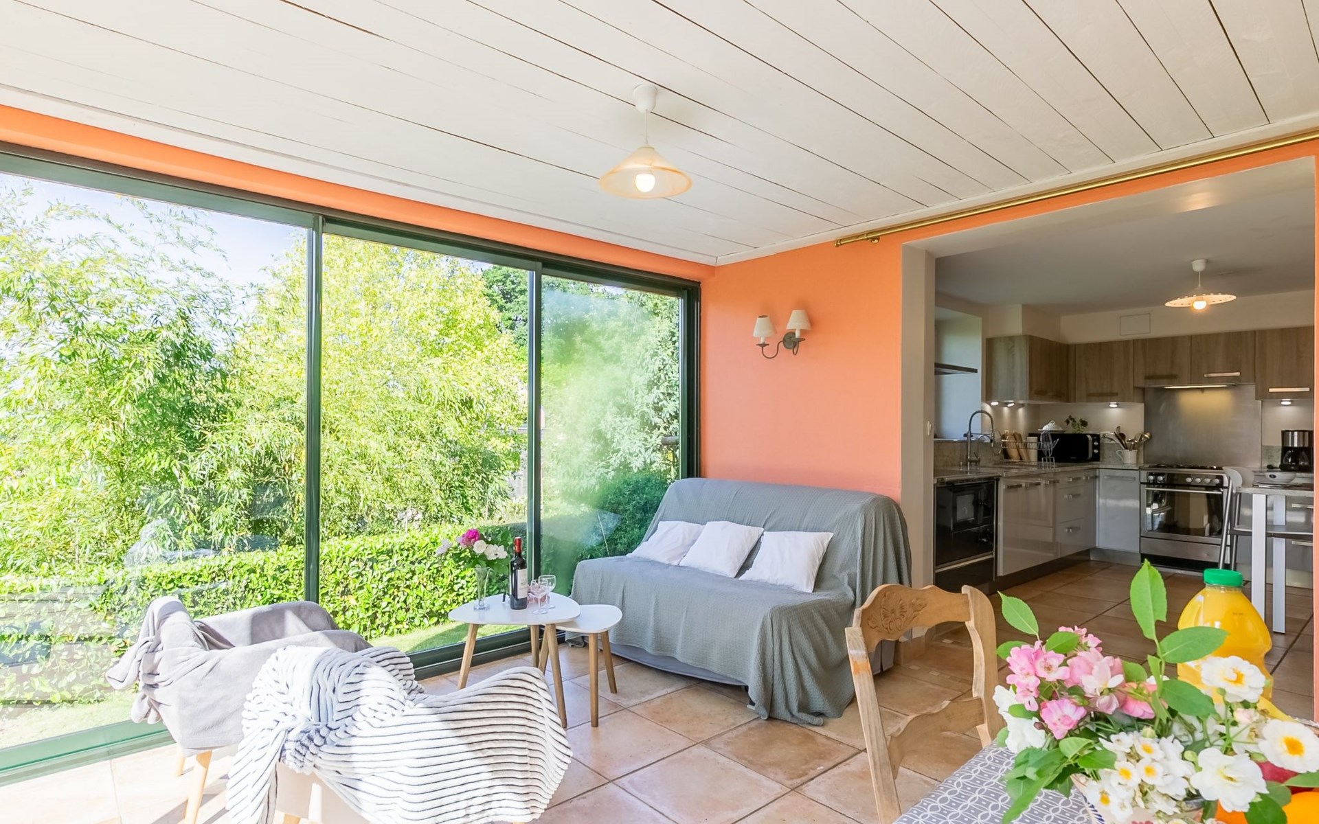 Daoulas 11 km from Plougastel-Daoulas: 2-family house "Ker Marie". On the outskirts, 400 m from the centre of Daoulas, 12 km from the sea, 12 km from the beach. For shared use: property 1'000 m2 with lawn. Private: garden 300 m2 (fenced) with lawn and flowers. (12 steps). Parking at the house. Shop, grocery 400 m, supermarket 850 m, restaurant 400 m, bakery 350 m, café 400 m, bus stop 500 m, sandy beach 12 km, park "D'Armorique" 10 km. Marina 16 km, golf course (18 hole) 11 km, sailing school 6 km, walking paths from the house 500 m. Nearby attractions: Brest 20 km, Oceanopolis 15 km, Rade de Brest 5 km, Plougastel 11 km, Quimper 53 km, Abbaye de Daoulas 200 m. Hiking paths: GR34, sentier des douaniers 500 m. Please note: car recommended. Baby equipment on request (included).