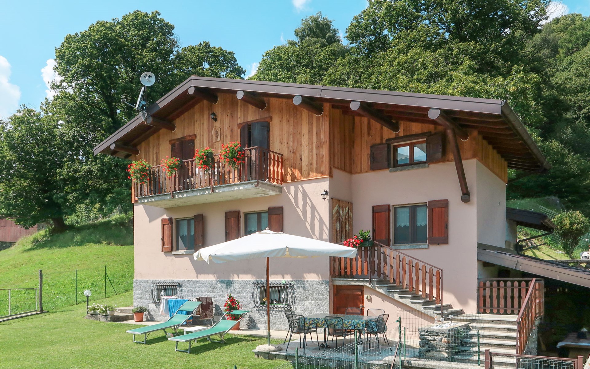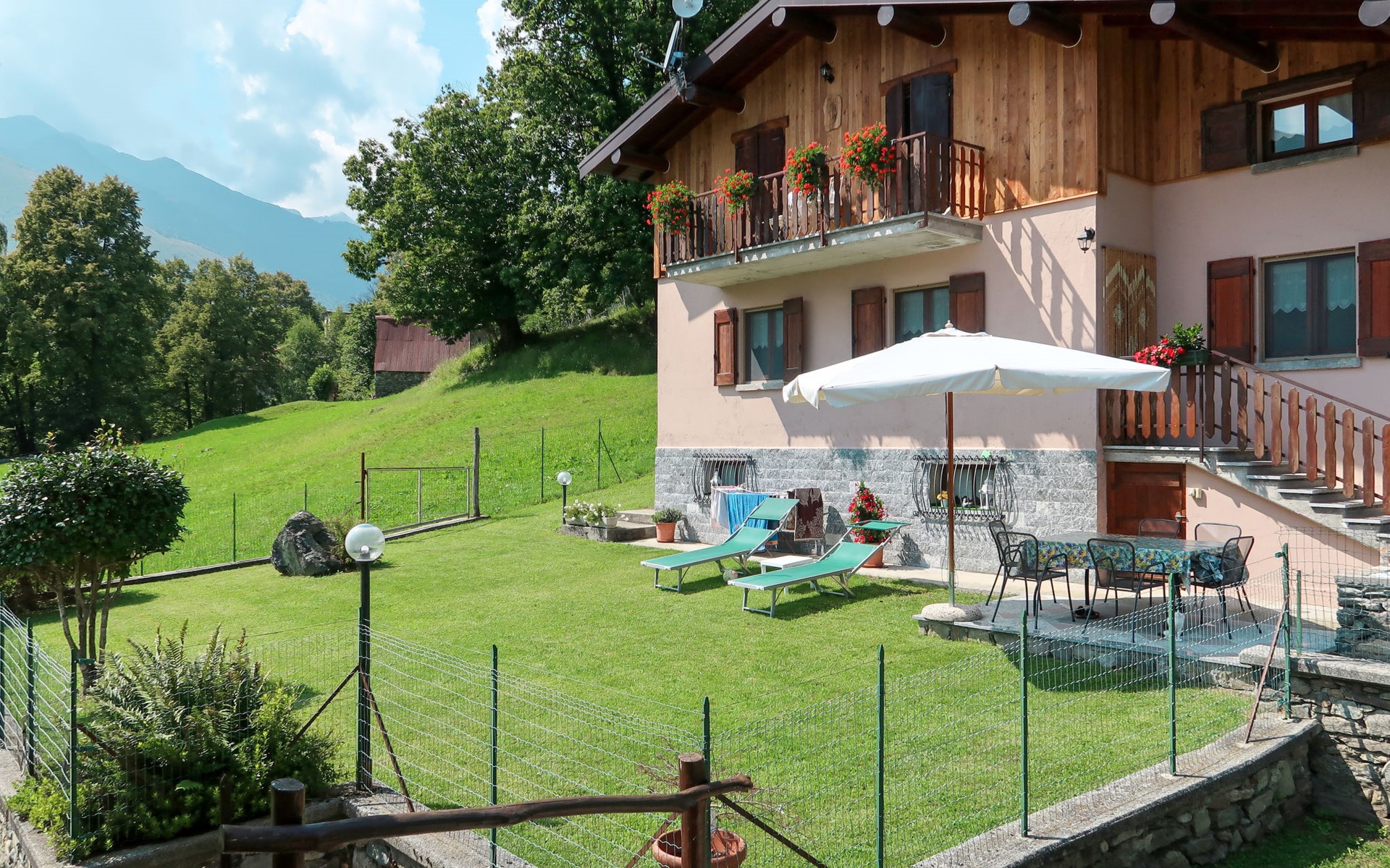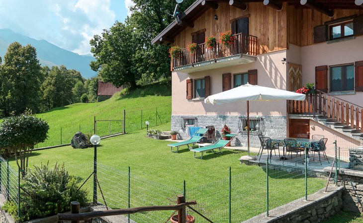 Rustic house "Quang", 800 m a.s.l., surrounded by meadows. Above Garzeno, in the hamlet Quang 2.5 km from the centre of Garzeno, 60 km from the centre of Como, 50 km from the centre of Lugano, on a slope, 200 m from the edge of the forest, 12 km from the lake. Private: property (fenced), lawn. 2.5 km long narrow motor access (mountain road). Parking at the house. Shop 2.5 km, supermarket 11 km, bus stop 2 km, railway station "Como" 60 km, grass beach "Dongo" 12 km, outdoor swimming pool 15 km. Golf course (18 hole) 30 km. Nearby attractions: Museo Barca Lariano, Giardino del Merlo, Chiesa di San Bernardo, Lake Como Adventure Park. Well-known lakes can easily be reached: Lago di Novate. Hiking paths: Valle Albano. Please note: animals in the neighbourhood.