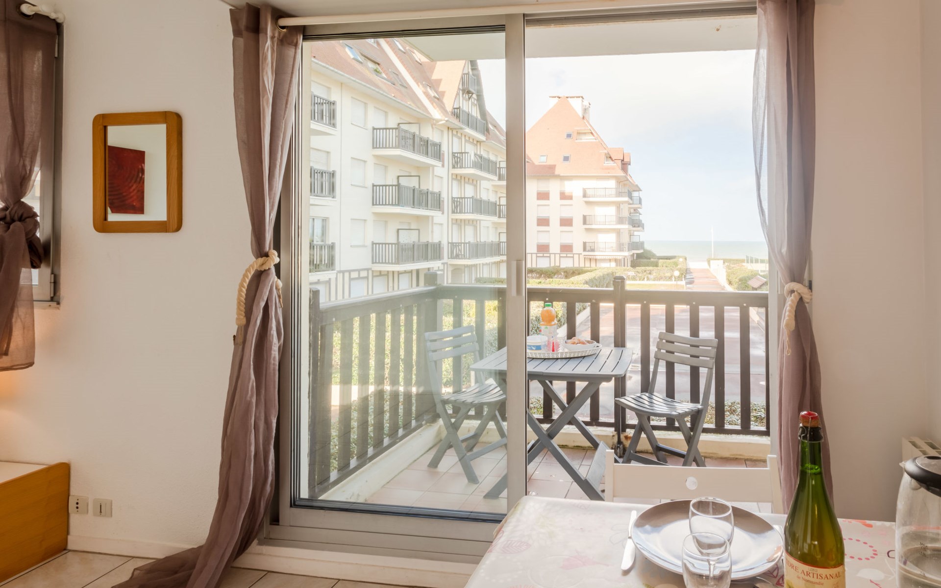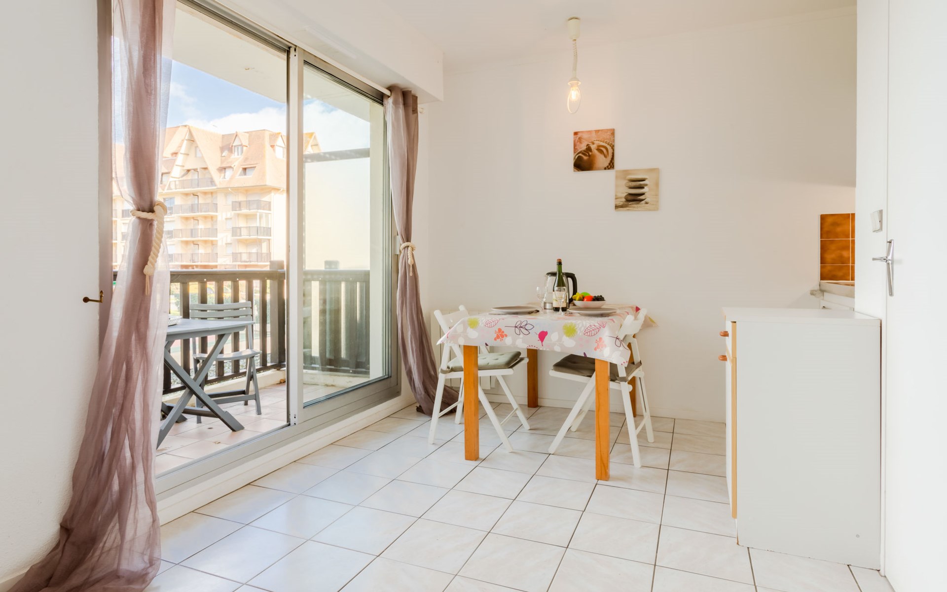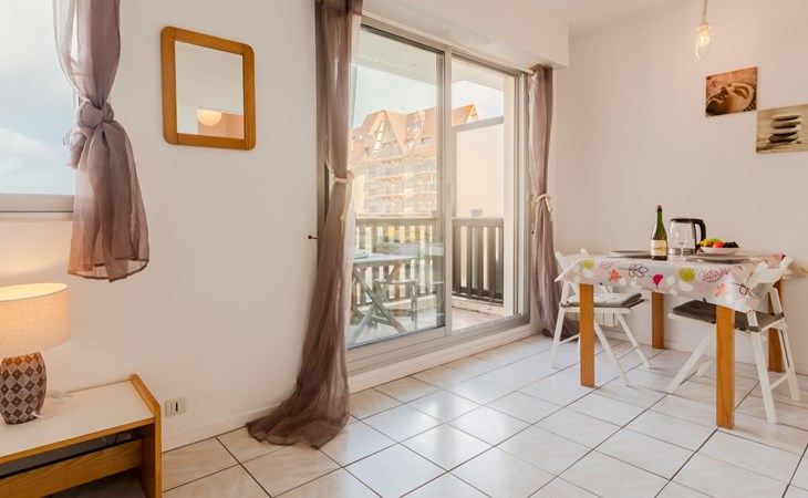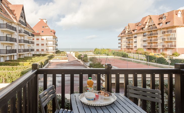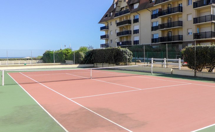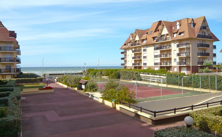 Residence "Les Normandières", 5 storeys. In the resort 2 km from the centre of Cabourg, 50 m from the sea, 50 m from the beach, direct access to the beach. For shared use: swimming pool angular heated, fenced (12 x 6 m, depth 80 - 180 cm, seasonal availability: 15.Jun. - 15.Sep. pool opening hours: 09:00-20:00) with internal staircase. Outdoor shower, tennis (1 x hard court). In the complex: lift. Parking (limited number of spaces) on the premises, public parking on the road. Shop 1 km, supermarket 800 m, restaurant 500 m, bus stop "Oasis" 600 m, thermal baths "Thalazur" 800 m. Golf course (18 hole) 1.2 km. Please note: Additional accommodations can be booked.