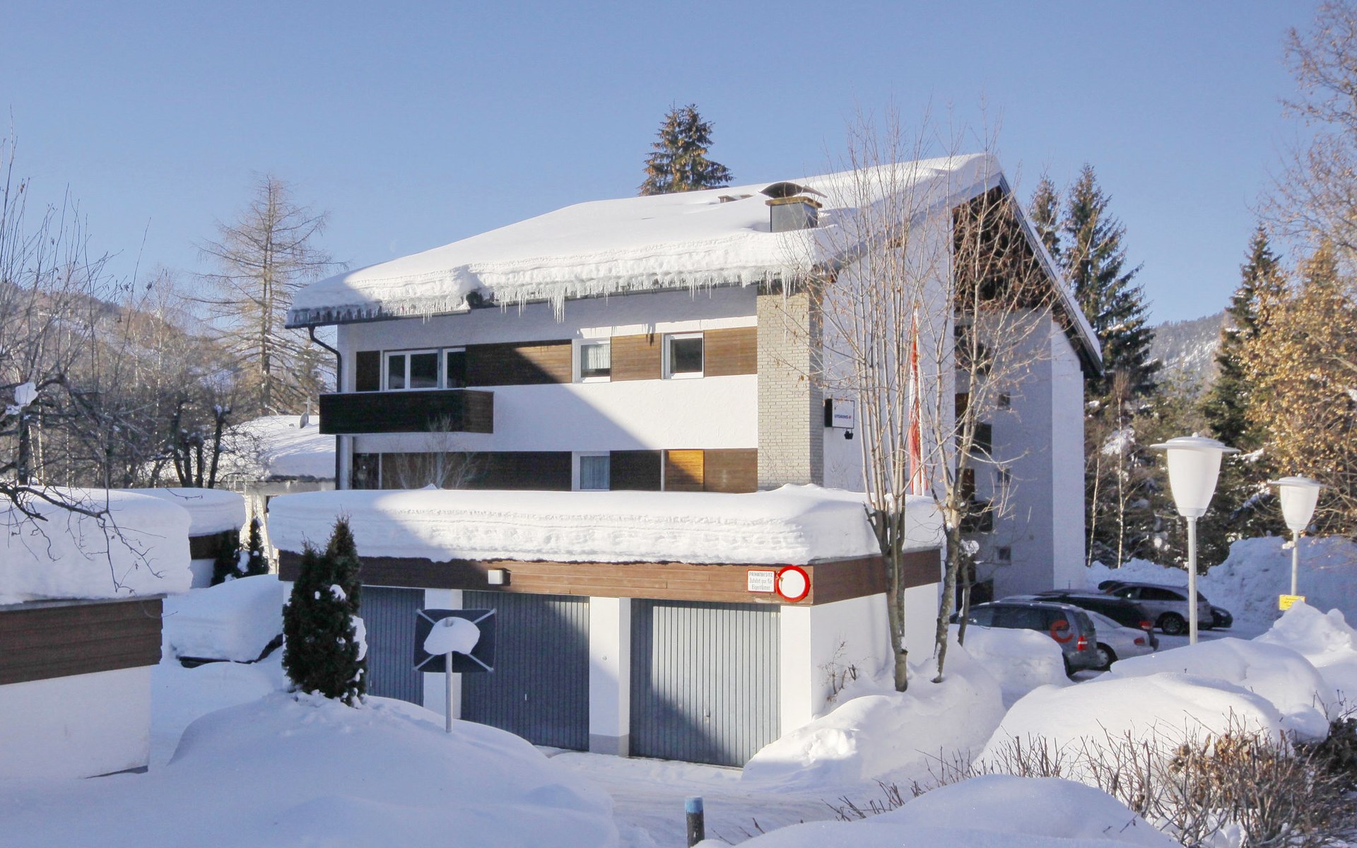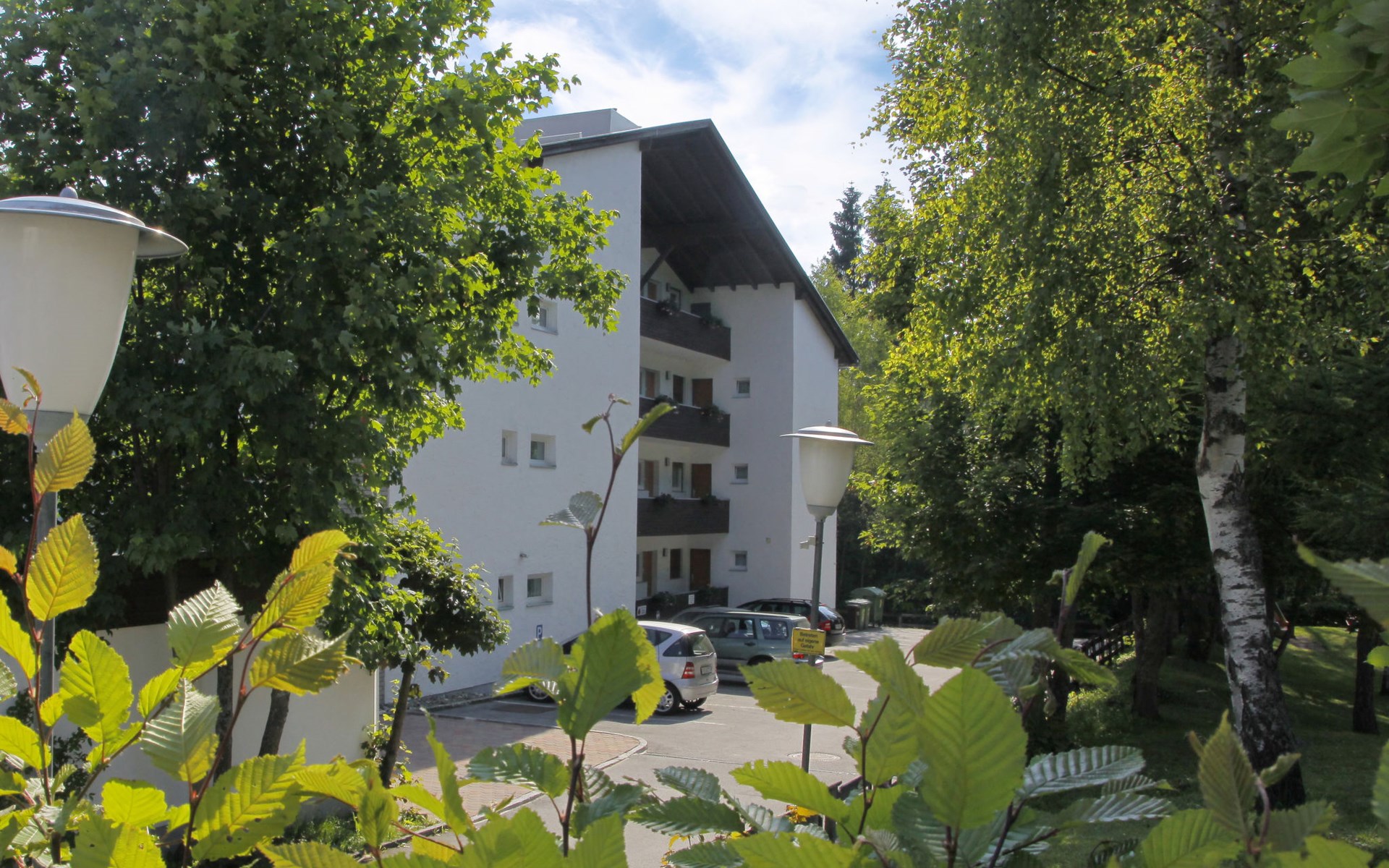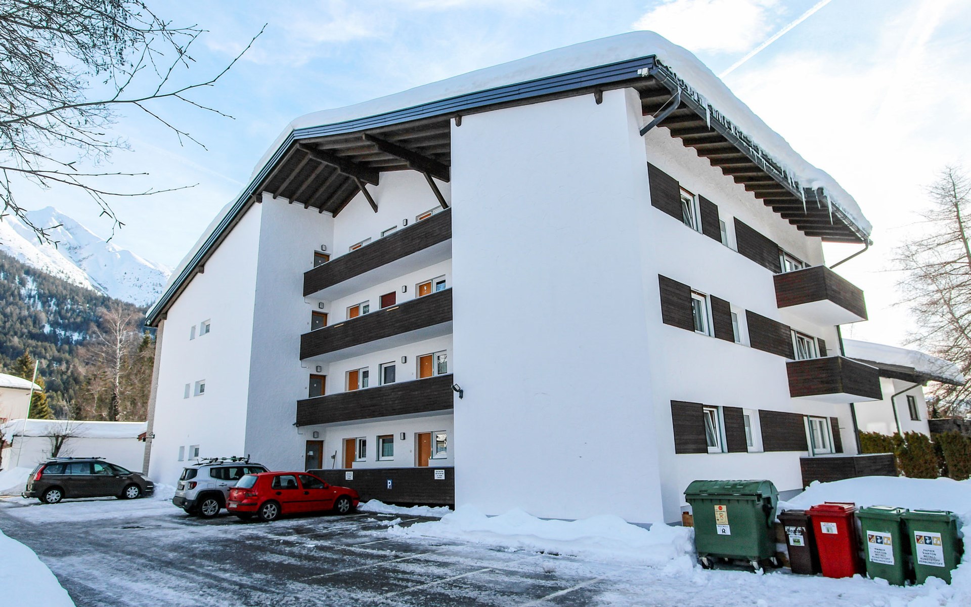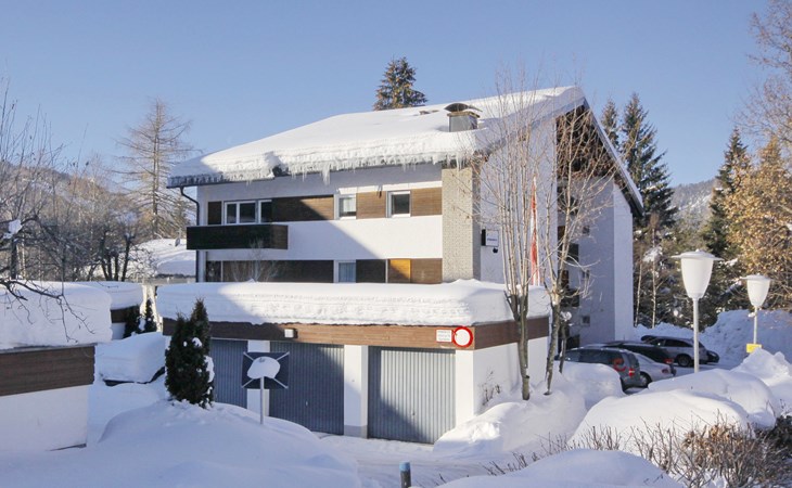 Seefeld: Located in the immediate vicinity of the mountain train "Rosshütte", cosy apartment block "Am Birkenhain". In the resort, 500 m from the centre, in a central, quiet, sunny position, 800 m from the lake, 400 m from the skiing area. For shared use: lawn for sunbathing. Garden furniture. In the house: reception, WiFi, table tennis, trampoline, lift, storage room for bicycles, storage room for skis, central heating system. Bread roll service and beverage service. Motor access to the house. Parking at the house. Shop, supermarket 500 m, restaurant 200 m, pedestrian zone 500 m, 5 minute walk to the centre, bus stop 100 m, railway station 500 m, indoor swimming pool 800 m, bathing lake "Wildsee" 800 m. Golf course (9 hole) 500 m, indoor tennis centre 1 km, sports centre 1 km, skisport facilities 400 m, ski bus stop 50 m, cross country ski track 500 m. Well-known ski regions can easily be reached: Rosshütte 400 m, Gschwandtkopf 1.5 km. Please note: ski bus (free of charge). Use of the washing machine on request with the person in charge.