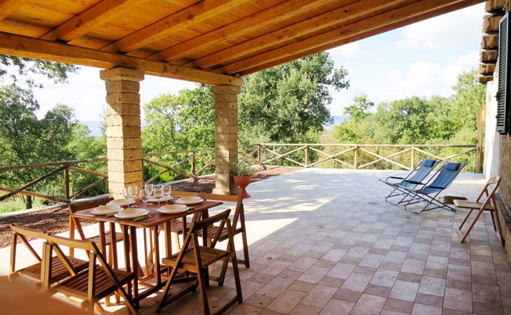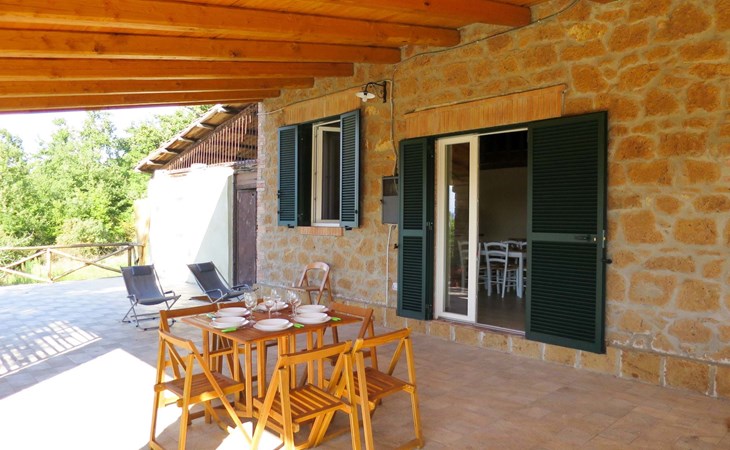 Cottage "L'Essiccatoio". 3 apartments in the residence. 5 km from the centre of Bolsena, 9 km from the centre of Montefiascone, 110 km from the centre of Roma, 350 m from the lake, in the countryside. For shared use: natural state property 30 ha with trees, swimming pool (15 x 5 m, depth 140 cm, seasonal availability: 16.May. - 03.Oct.). Outdoor shower, barbecue. In the house: washing machine (for shared use, extra). Supermarket 4 km, bus stop 60 m, grass beach "Lago di Bolsena" 350 m. Obligation to wear bathing caps. The pool belongs to the estate Podere Sant' Antonio , 450 m away from the house.