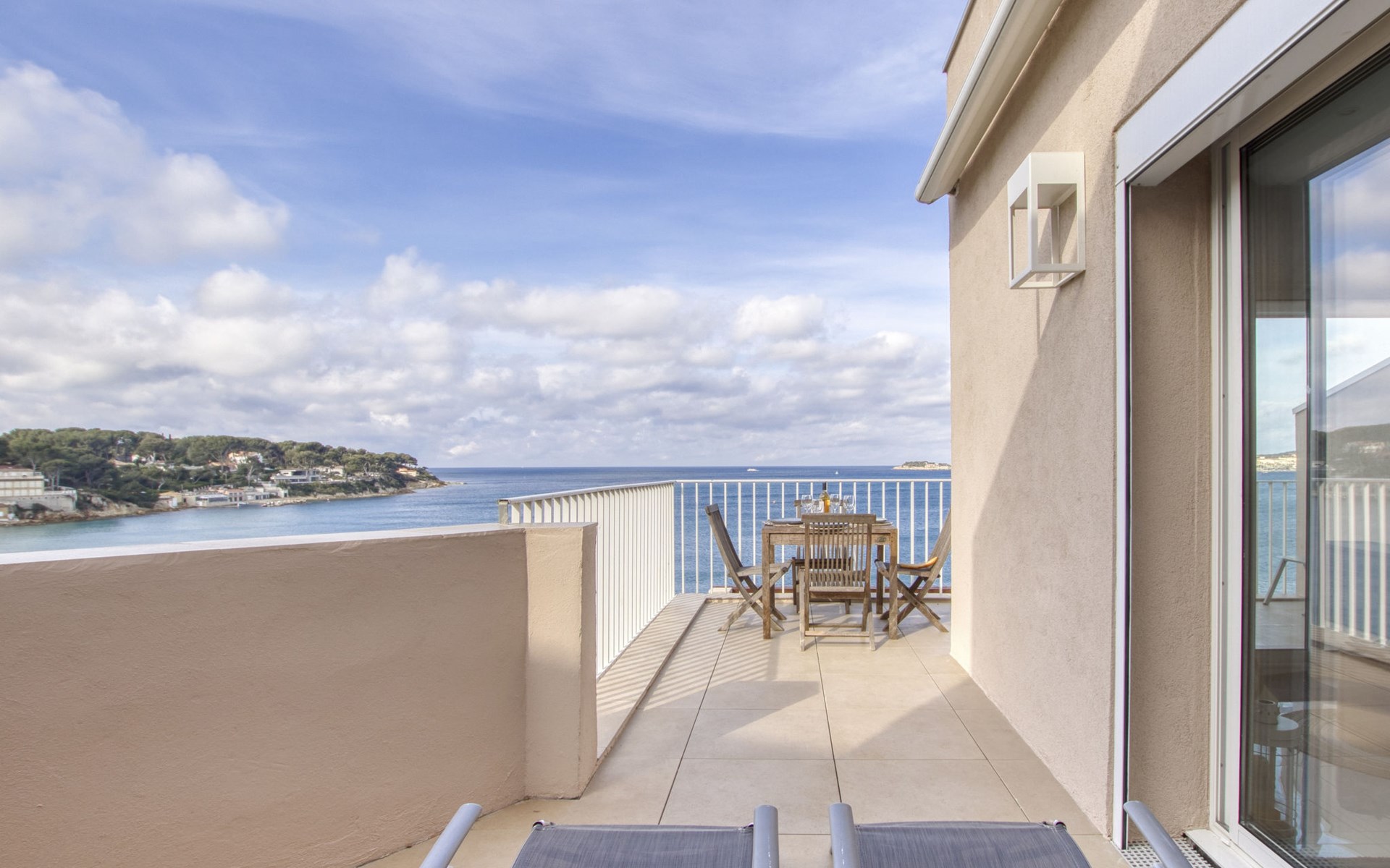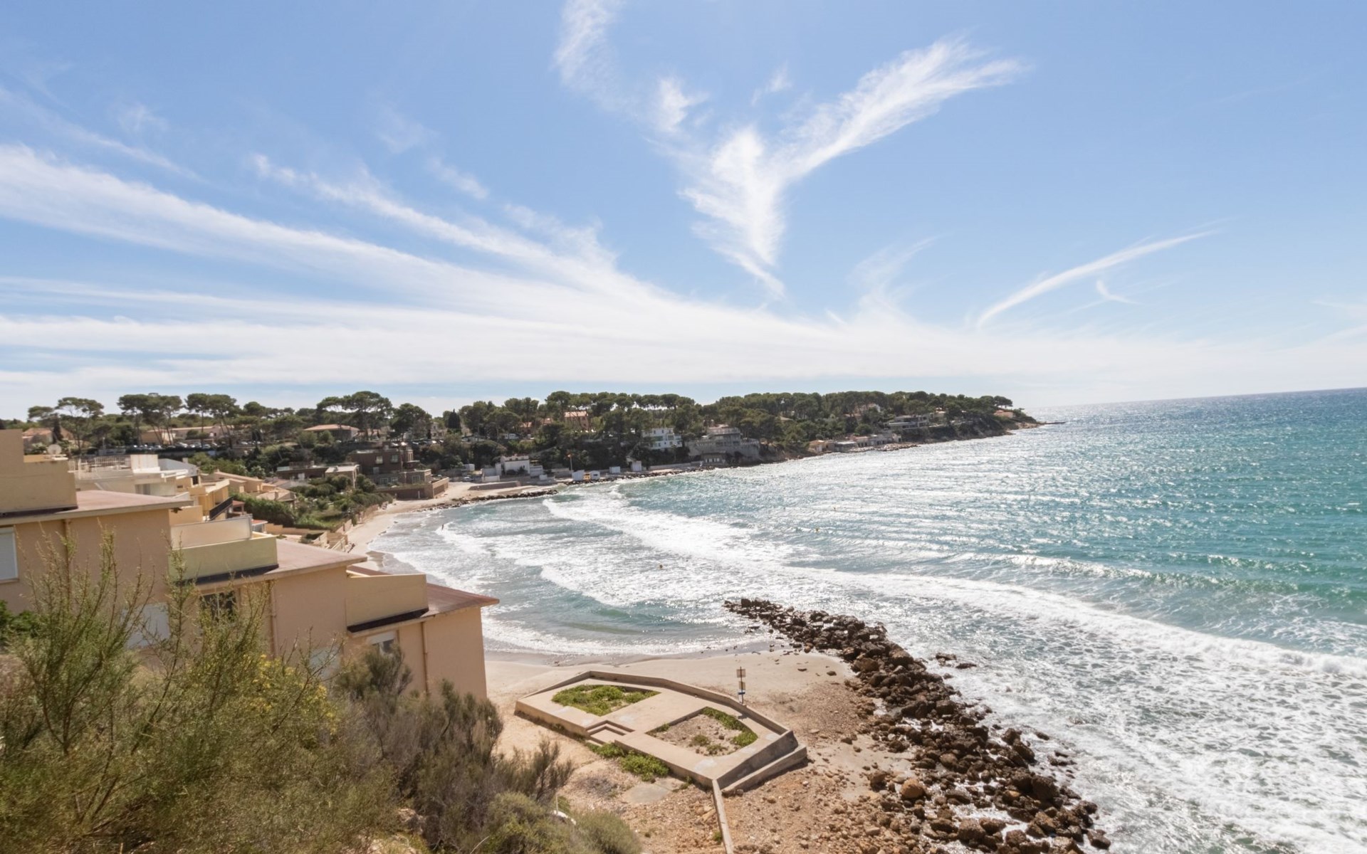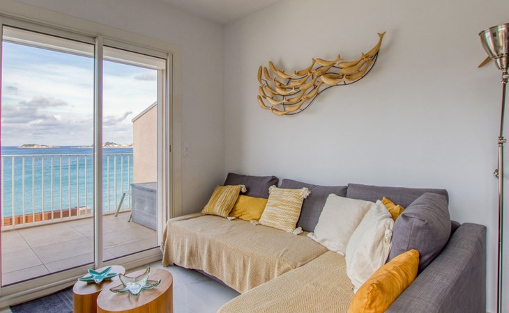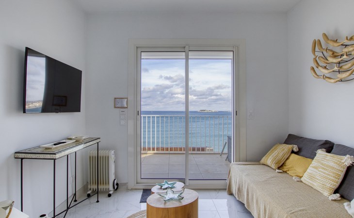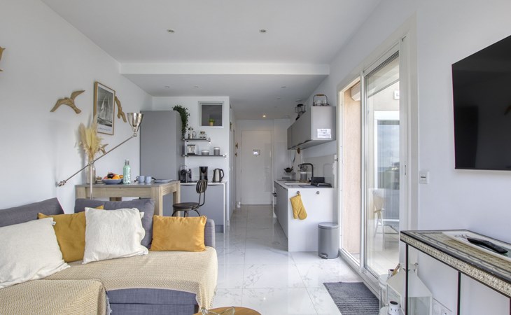 Residence "La Kamarina", 3 storeys, renovated in 2022. 3 km from the centre of Sanary, on the outskirts, 2.5 km from the centre of Bandol, in a quiet position, at the seaside, direct access to the beach, south-west facing position. Parking space n 12. Grocery 1 km, restaurant 200 m, bus stop 500 m, sandy beach 20 m (small). Golf course (18 hole) 6 km. Nearby attractions: Aqualand 10 km. Hiking paths: Sainte Baume,Sainte Victoire,Calanque, Cassis,Porquerolles,Ile verte,Embiez. Residence with electric gates. The keys‘ handover takes place by the agency Interhome in SIX FOURS LES PLAGES, 5 km. The residence is located on the seafront. Access to the small beach is via a private path with many steps. Attention vehicle height limited to 2.20m to access the residence., The facade of the residence was renovated in 2023.