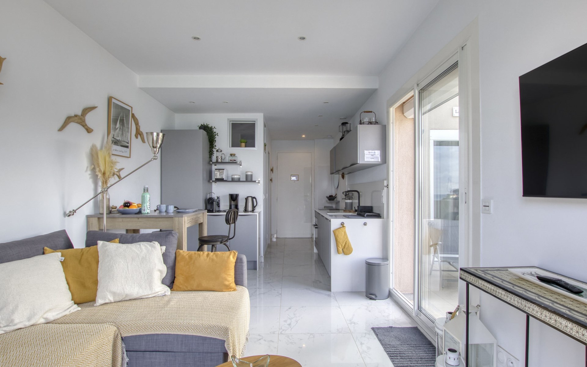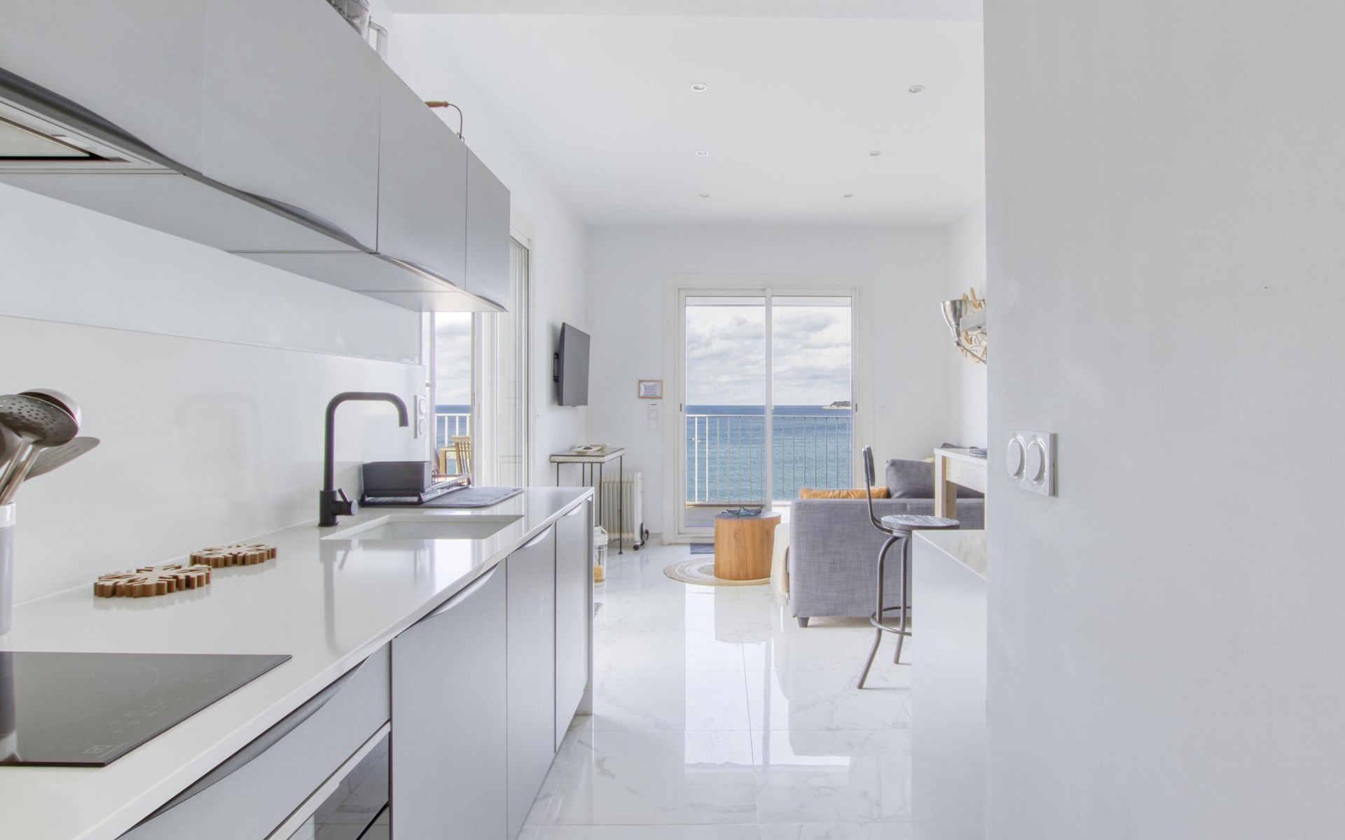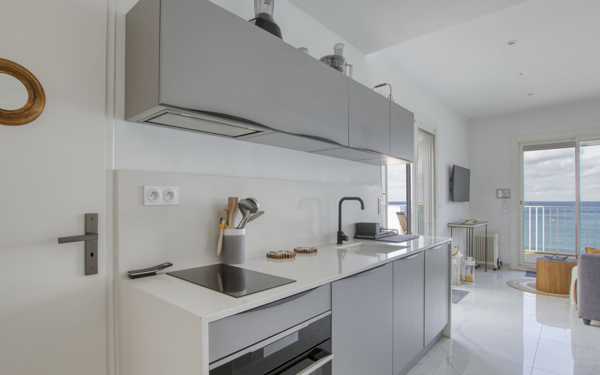 Residence "La Kamarina", 3 storeys, renovated in 2022. 3 km from the centre of Sanary, on the outskirts, 2.5 km from the centre of Bandol, in a quiet position, at the seaside, direct access to the beach, south-west facing position. Parking space n 12. Grocery 1 km, restaurant 200 m, bus stop 500 m, sandy beach 20 m (small). Golf course (18 hole) 6 km. Nearby attractions: Aqualand 10 km. Hiking paths: Sainte Baume,Sainte Victoire,Calanque, Cassis,Porquerolles,Ile verte,Embiez. Residence with electric gates. The keys‘ handover takes place by the agency Interhome in SIX FOURS LES PLAGES, 5 km. The residence is located on the seafront. Access to the small beach is via a private path with many steps. Attention vehicle height limited to 2.20m to access the residence., The facade of the residence was renovated in 2023.