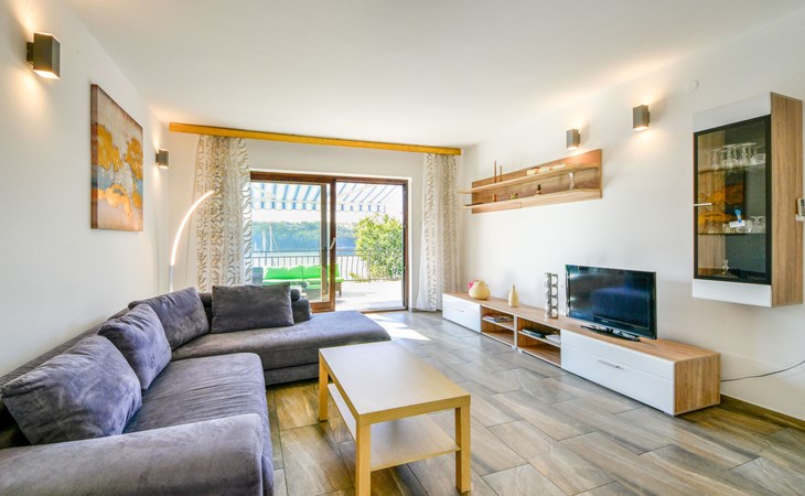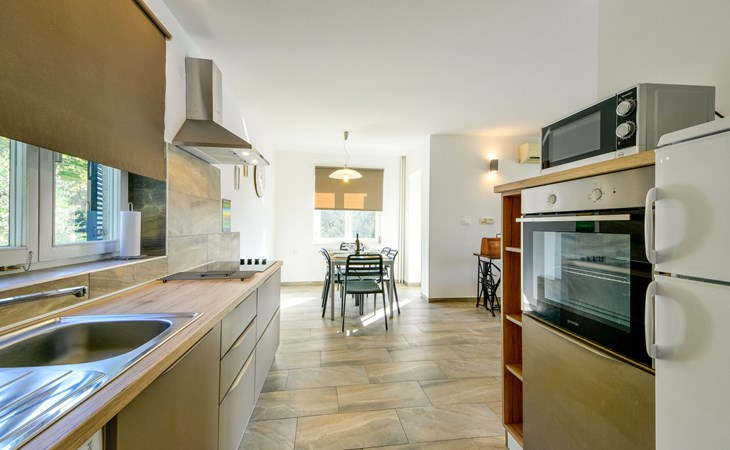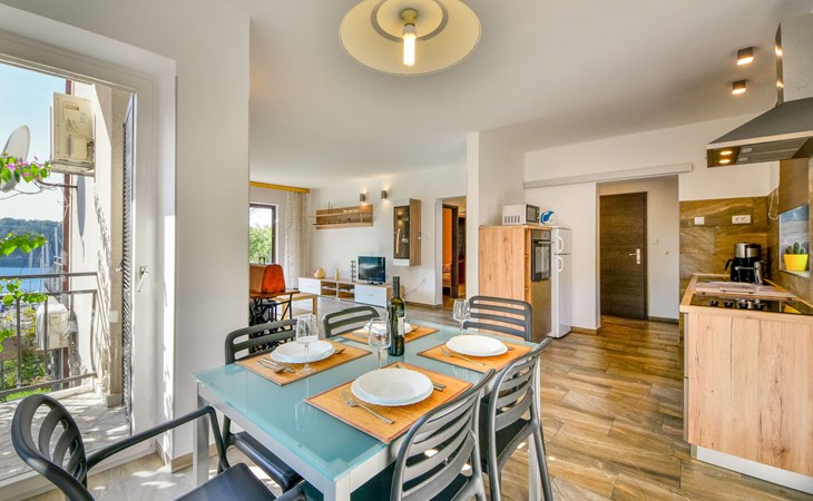 3-family house "Marija". In the district of Kancinar, 600 m from the centre of Omišalj, in a sunny position, 50 m from the sea. For shared use: property 700 m2, garden with plants. In the house: internet access. Parking at the house. Shop 1.5 km, restaurant 200 m, bus stop 1.7 km, sandy beach, pebble beach 350 m, diving center 5.5 km, swimming bay 350 m. Marina 50 m, fishing possibilities 100 m.
