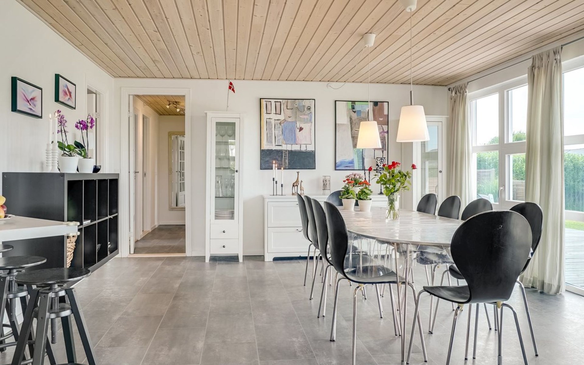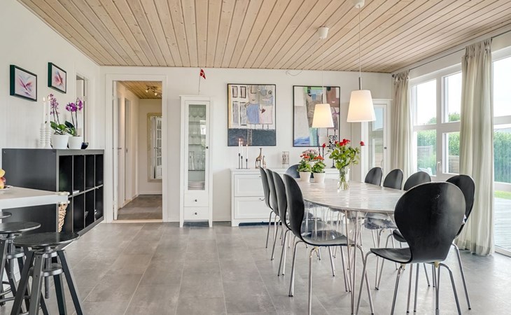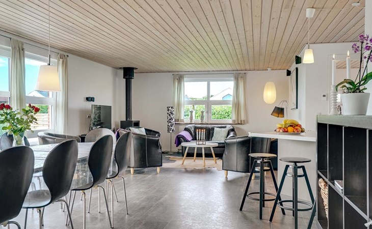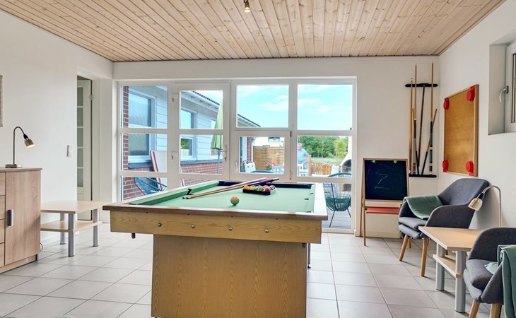 Single-family house, built in 1976. 600 m from the sea. For shared use: garden. Private: property 1'190 m2, well-kept garden (fenced). Outdoor shower, terrace (200 m2), fireplace, children's playground (slide, swing). In the house: sauna, trampoline, washing machine, tumble dryer. Parking at the house. Carport. E-charging station. Grocery 2.5 km. Golf course 10 km. The owner does not accept any youth groups.