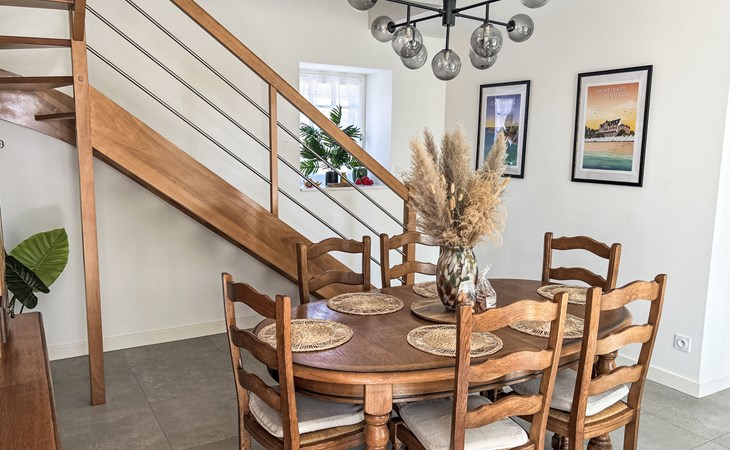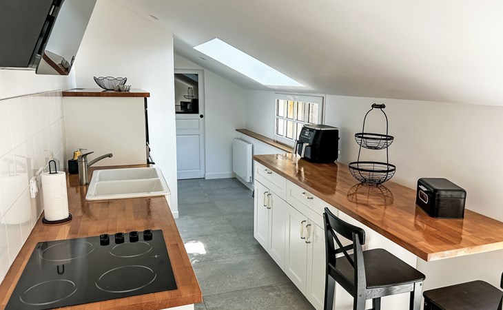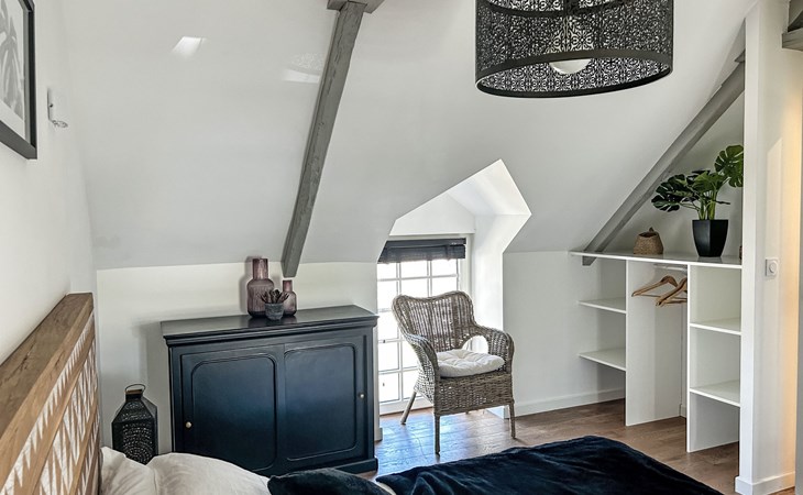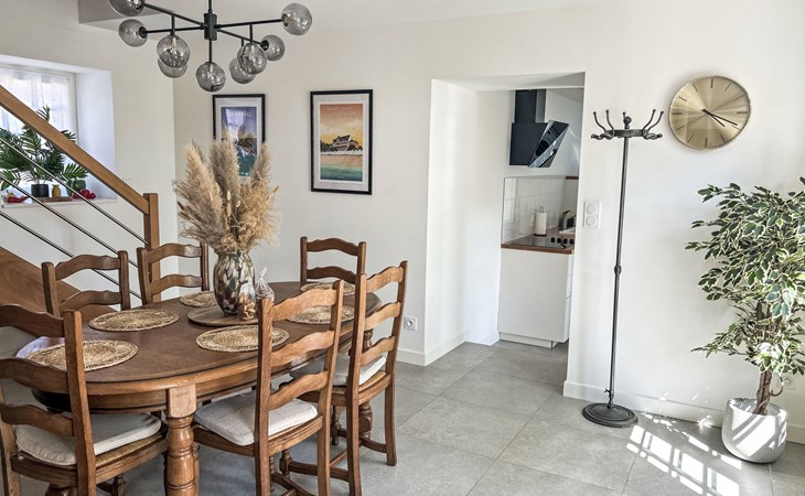 Terraced house "Le petit Papeu", renovated in 2022, surrounded by fields. In the hamlet Le Papeu, on the outskirts, 2 km from the centre of Fréhel, 5 km from the sea, 5 km from the beach. Private: small garden (fenced) with wildlife garden, parking (for 2 cars) at the house on the premises. Grocery 2 km, supermarket 7 km, restaurant 2 km, bus stop 2 km, sandy beach "Sables d'Or les Pins" 5 km. Golf course (18 hole) 5 km, sailing school 5 km, riding stable 6 km. Nearby attractions: Cap Fréhel, Fort La Latte 10 km, Erquy 9 km, Pléneuf-Val-André 16 km, Saint-Cast-le-Guildo 14 km, Dinard 32 km, Saint-Malo 40 km. Hiking paths: GR 34. Please note: car recommended. Additional accommodations can be booked. Property ref. Fr2804.613.1 is situated on the same property.