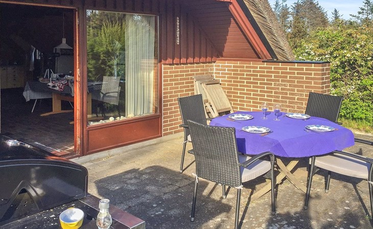 Single-family house, built in 1975. 1.5 km from the sea. Private: natural state property 1'450 m2. Terrace (65 m2), parking at the house. Grocery 5 km.