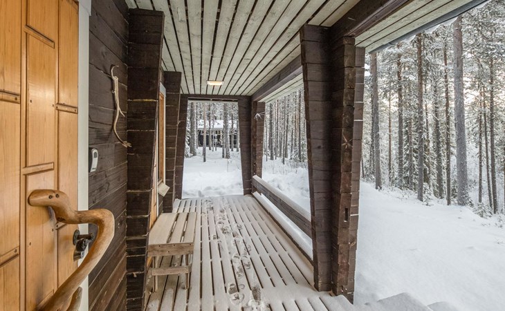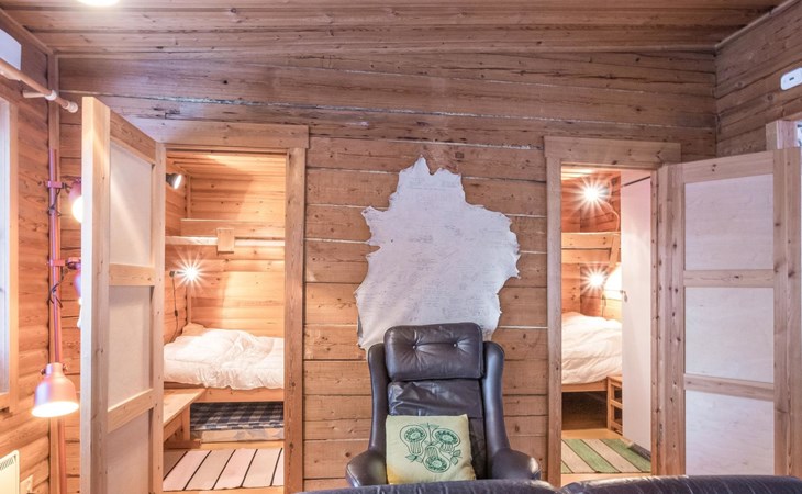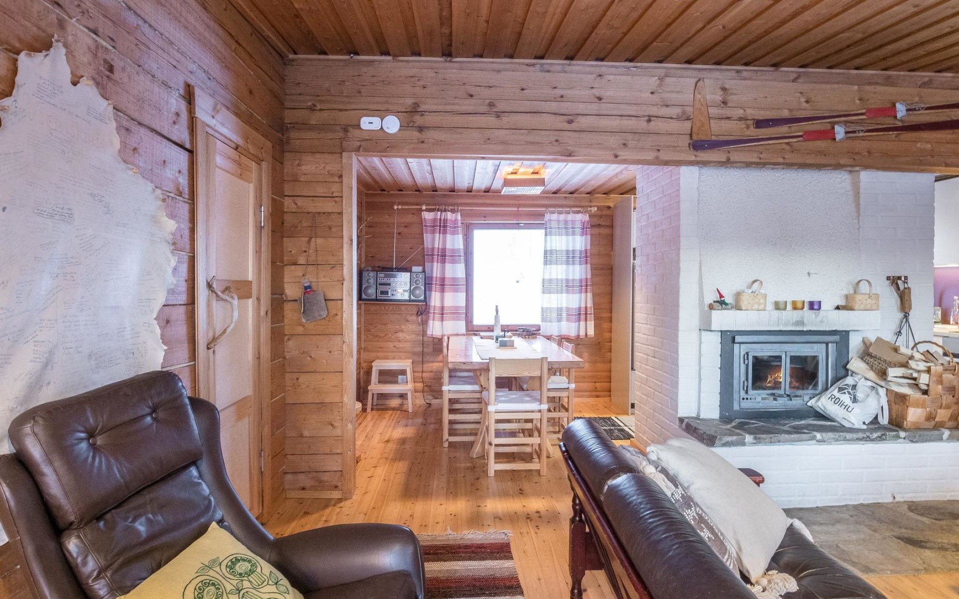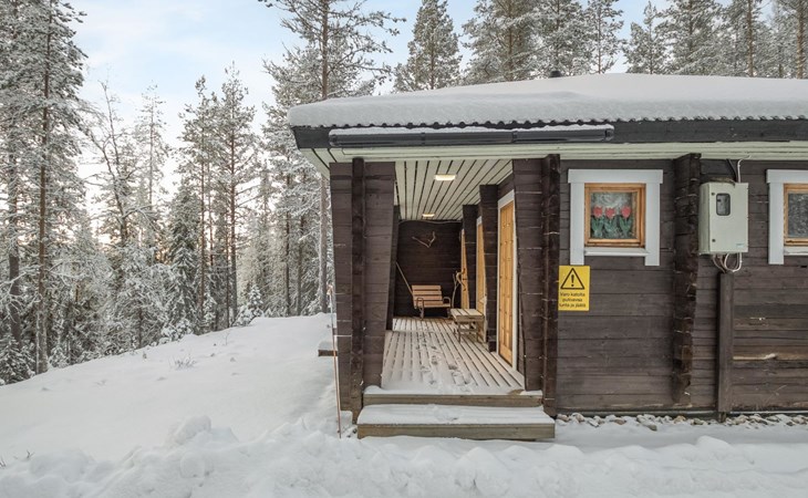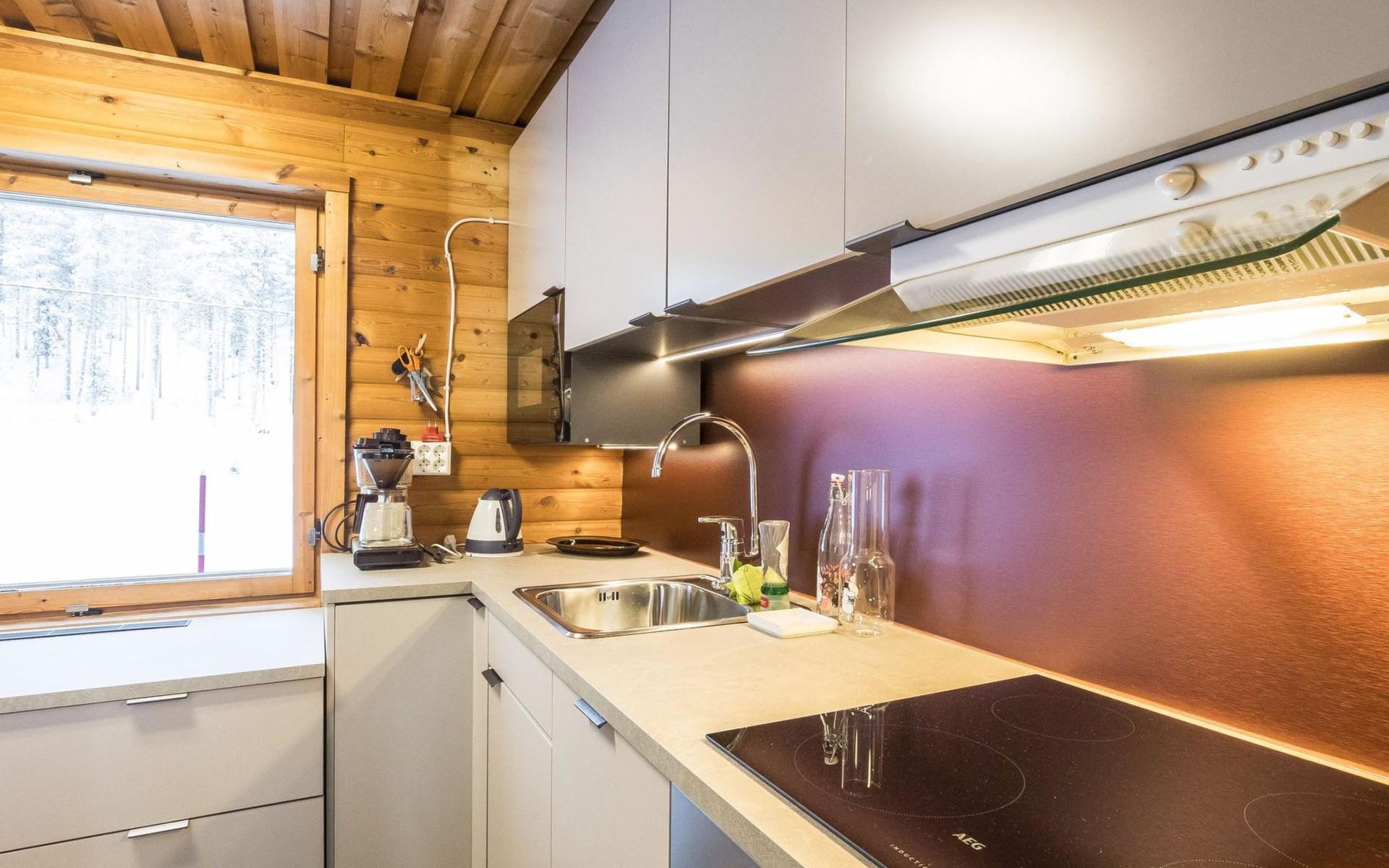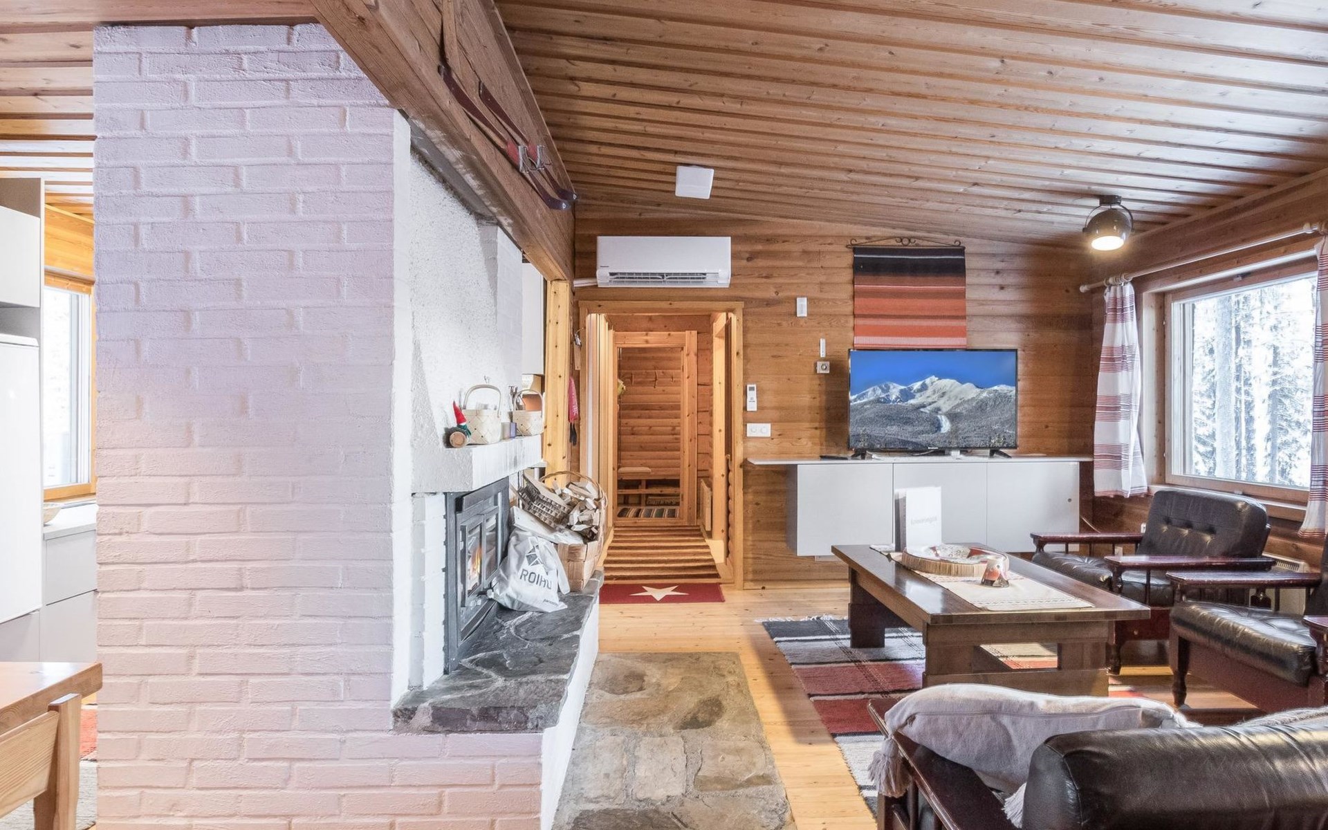 This atmospheric cabin combines nostalgic charm with modern comfort – the kitchen was renovated in 2024, and the cabin has everything needed for a relaxing holiday. The cabin is also equipped with fiber optic internet and Wi-Fi, ensuring a fast and reliable connection. The cozy open-plan kitchen and living area invite you to relax: the dining area has seating for six people, and the living room’s sofa set offers a comfortable spot to rest by the heat-storing fireplace while enjoying the forest views. You may even spot reindeer wandering through the area.