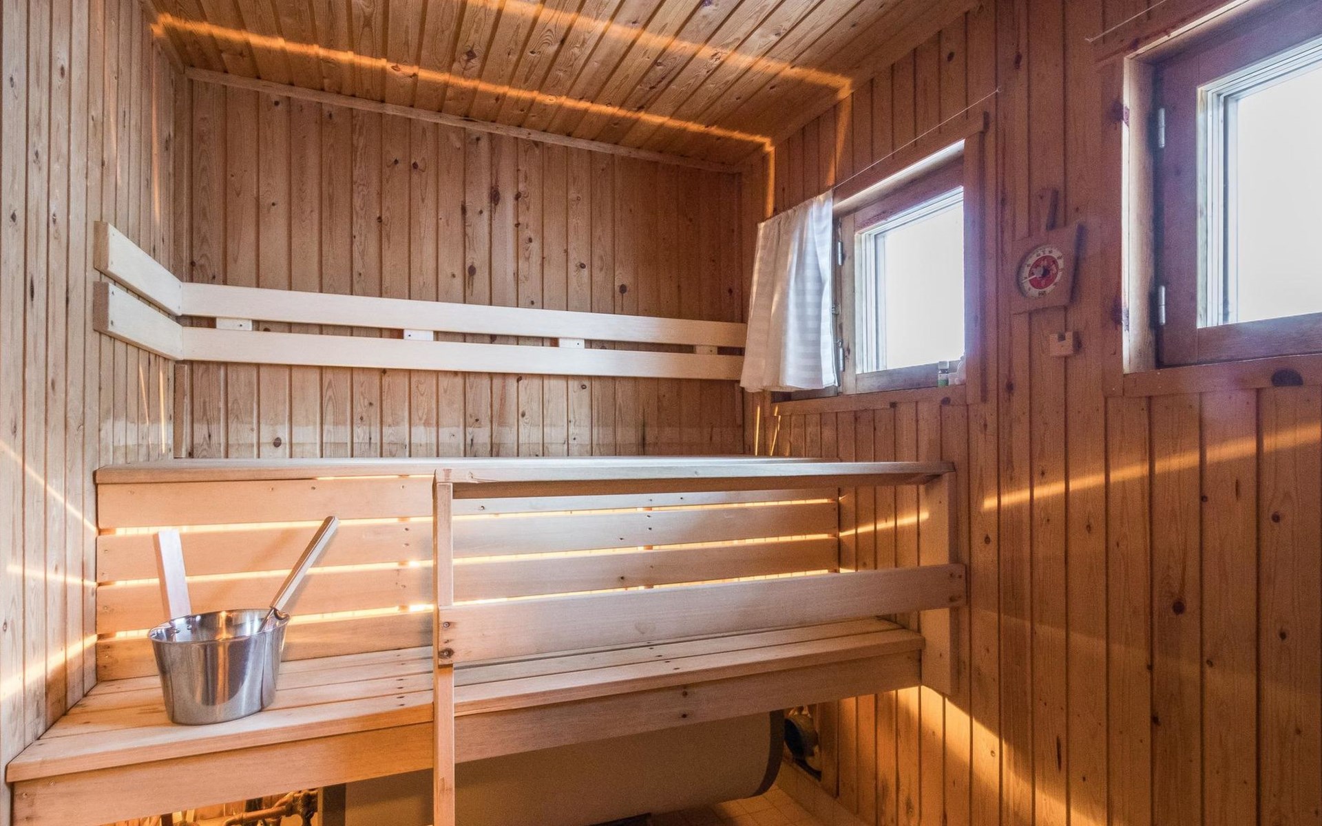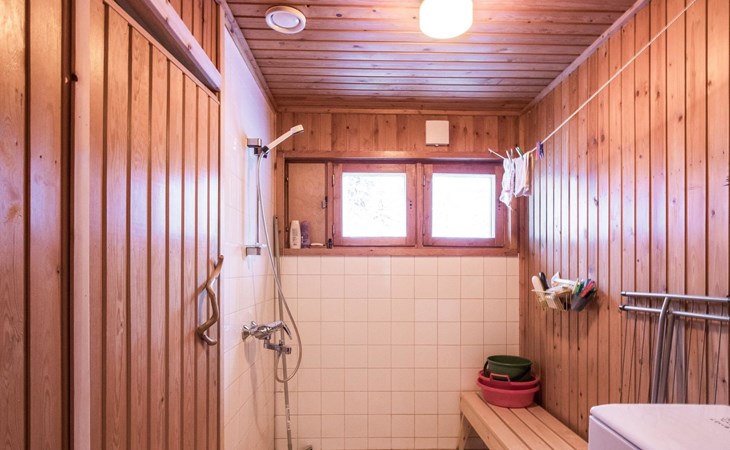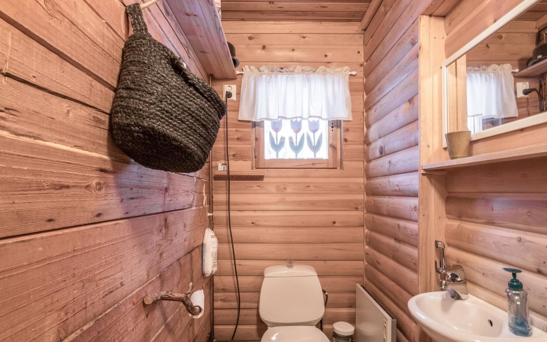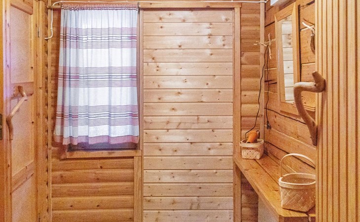 The cabin also features an electric sauna, a shower, and a separate WC. The bathroom includes a washing machine. Pets are allowed in the cabin. An additional fee is charged per pet.