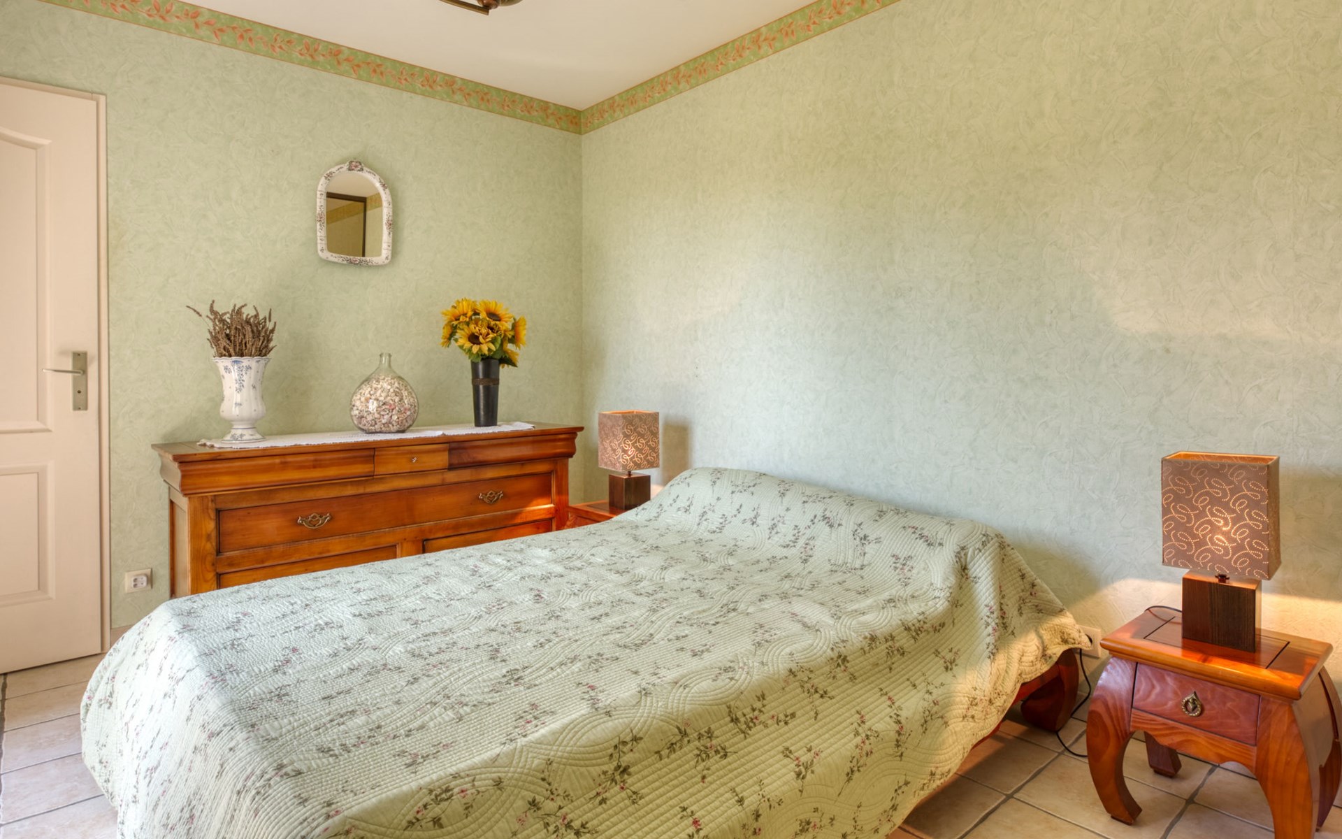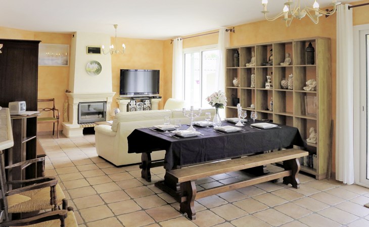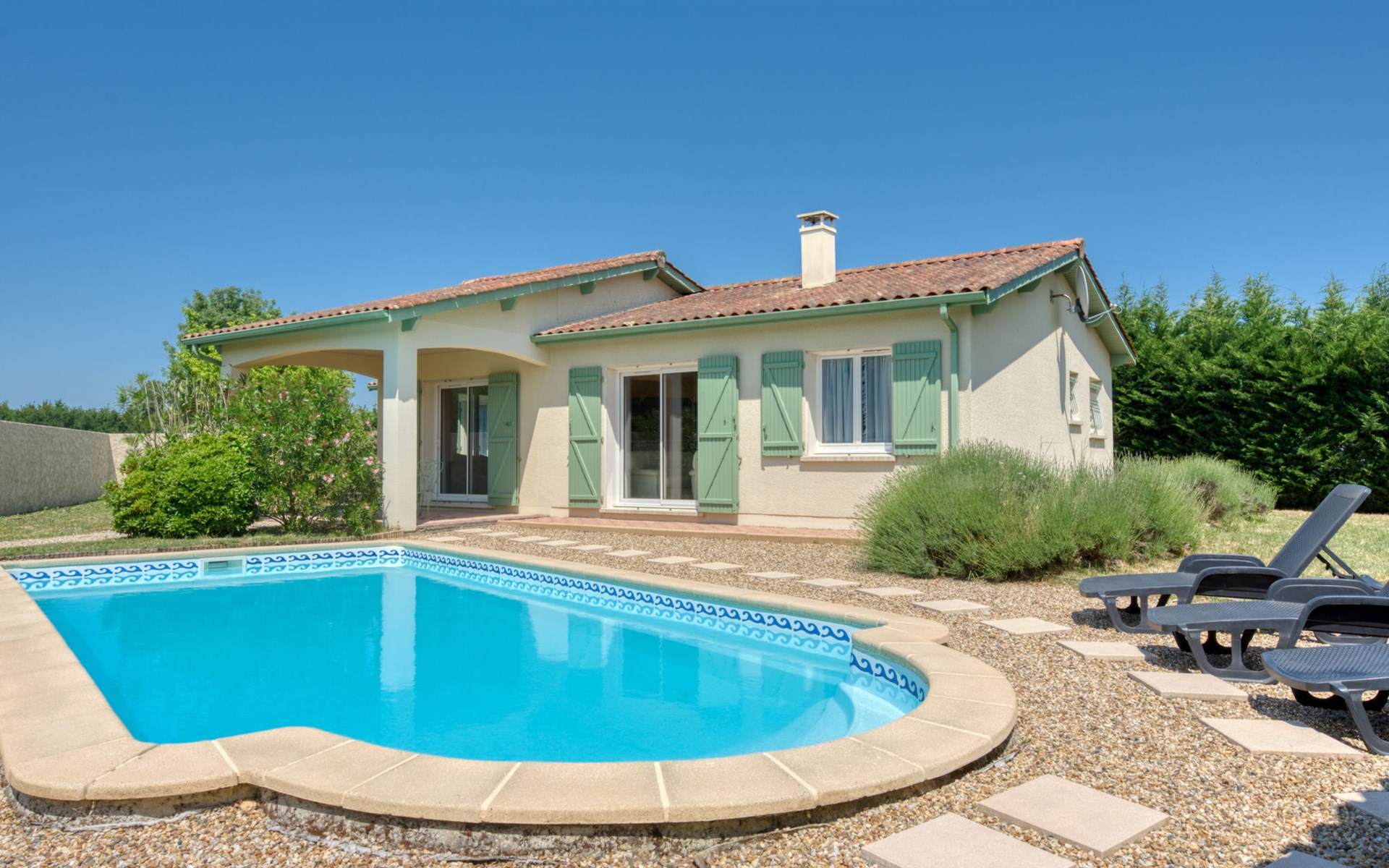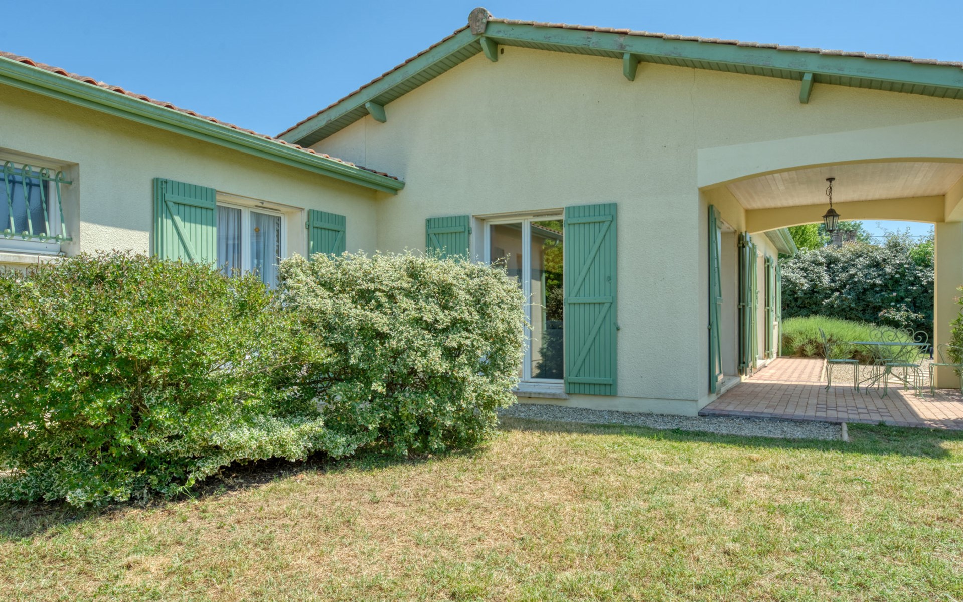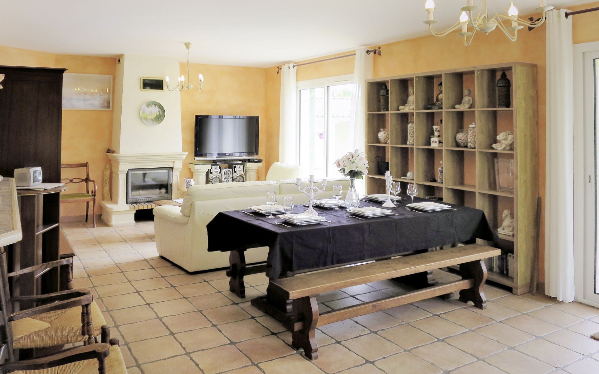 Beautiful, cosy single-family house "Les Lavandiers", surrounded by vineyards. In the district of Hôpital 4 km from the centre of Ordonnac, 8 km from the centre of Lesparre, 68 km from the centre of Bordeaux, in a sunny position, 29 km from the sea, in the countryside. Private: large, well-kept garden 1'700 m2 (fenced) with lawn and wildlife garden, swimming pool (10 x 5 m, depth 150 cm, seasonal availability: 01.Jan. - 31.Dec.) with internal staircase and alarm system. Parking (for 3 cars) at the house on the premises. Supermarket 8 km, bus stop "Route de l'hôpital" 600 m, sandy beach "Le Pin Sec" 29 km.