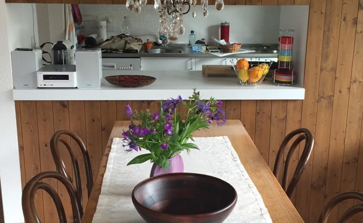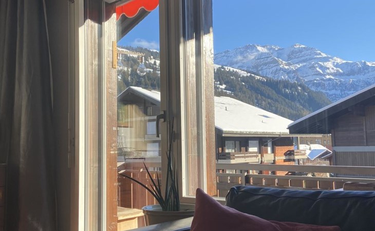 a very sunny, bright apartment with a lot of charm. Big panoramic windows & balcony with stunning views of the mountains. Nicely decorated & tasteful furniture, a cozy place! 1 big spacious living/dining area, 2 bedrooms, 1 open kitchen, 1 bathroom (bathtub/shower), 1 sep. WC, big flat-screen digital-TV (english spoken channels)DVD/bluray player, radio/CD player. free Wi-Fi. dishwasher, microwave,Nespresso coffee machine. 1 storage room.free underground parking space. Public transport included in the Simmental and Saanenland with the SIMMENTAL CARD: Overnight guests in the Lenk-Simmental holiday region travel free of charge on public transport for excursions with a valid guest card.
