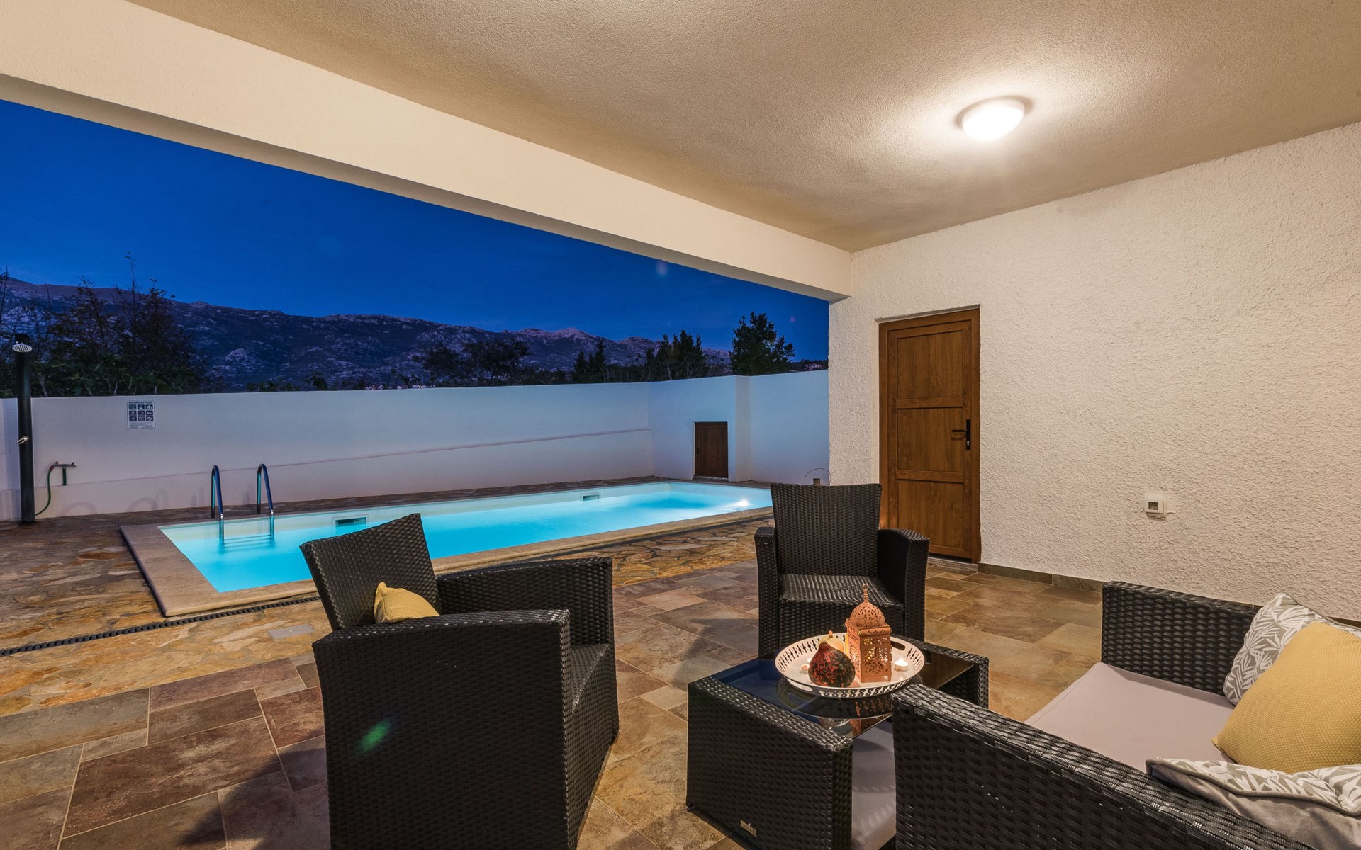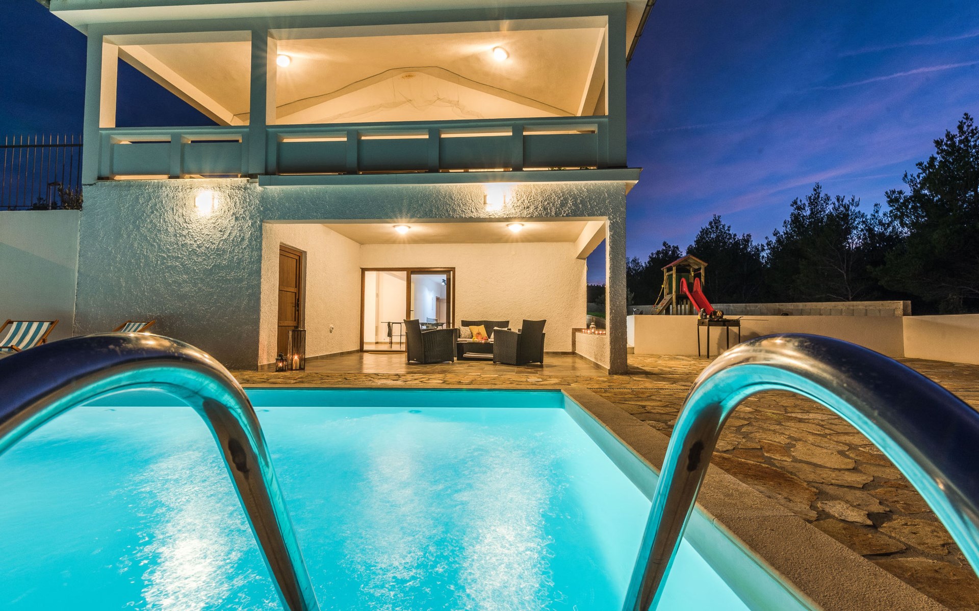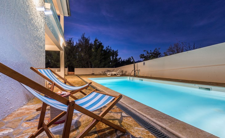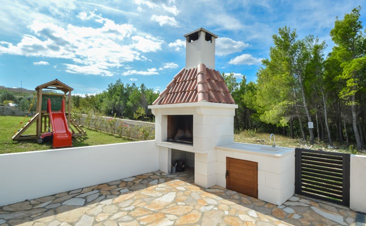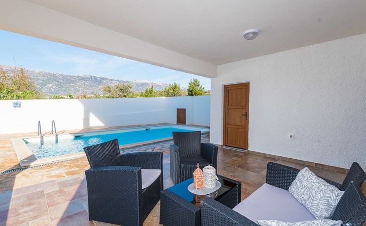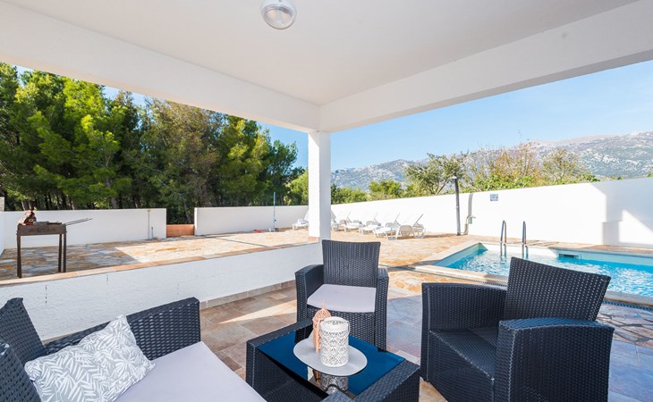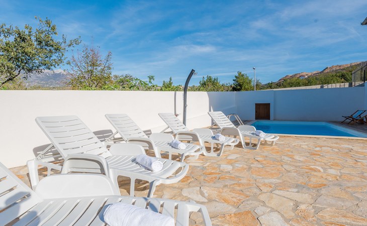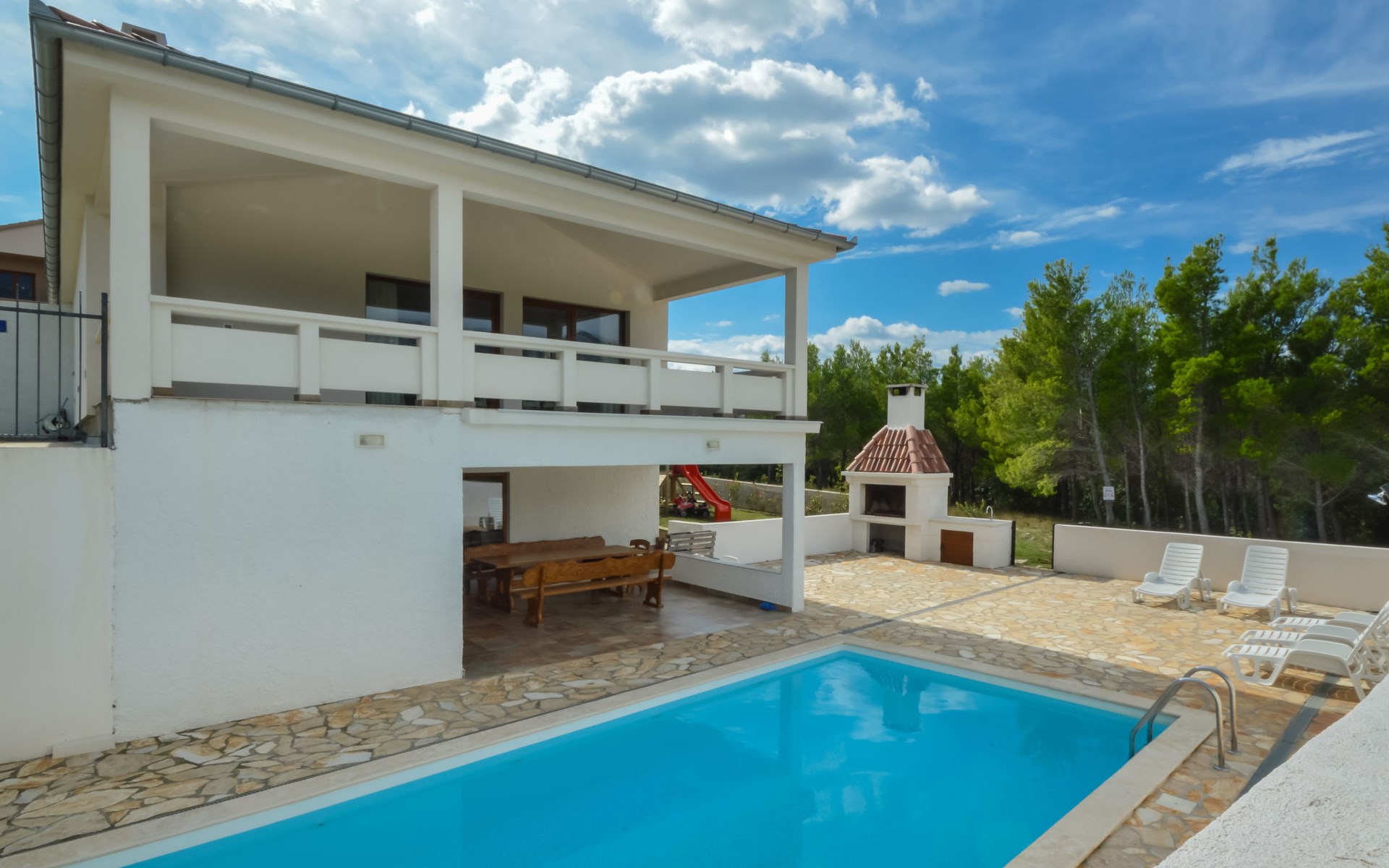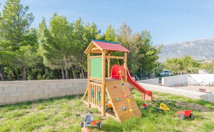 Single-family house "Velebit", 2 storeys. 12 km from the centre of Starigrad-Paklenica, in a sunny position, 250 m from the sea, 250 m from the beach. Private: property 830 m2, lawn and wildlife garden, swimming pool angular (8 x 4 m, depth 140 cm, seasonal availability: 04.May. - 28.Sep.). Outdoor shower, garden furniture, barbecue (slide). In the house: internet access, table tennis, washing machine, tumble dryer. Parking (for 3 cars) at the house on the premises. Shop 1 km, restaurant 1 km, café 200 m, bus stop 1.3 km, pebble beach 250 m. Nearby attractions: NP Paklenica 12 km, Cave Modrič 2 km. Groups of teenagers on request only. By groups of young people double deposit is requested on arrival.