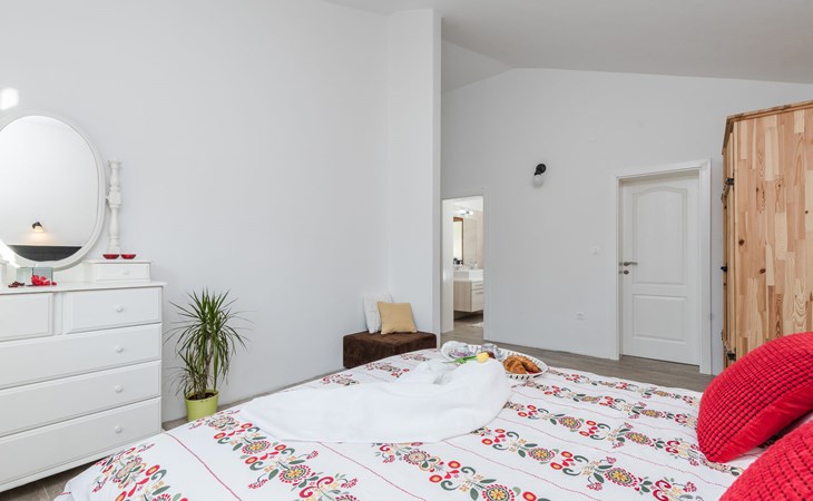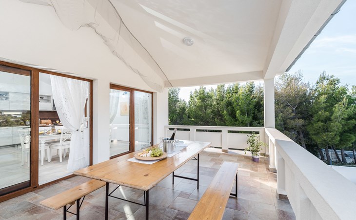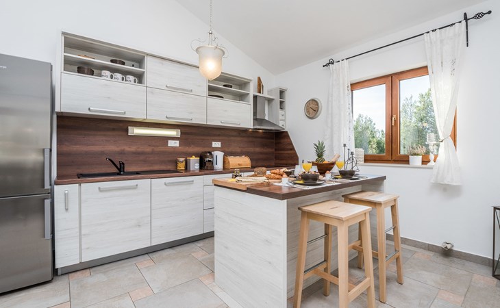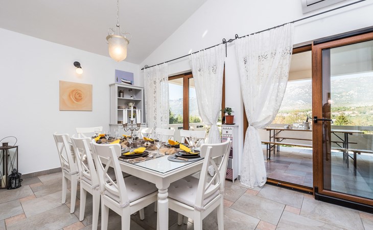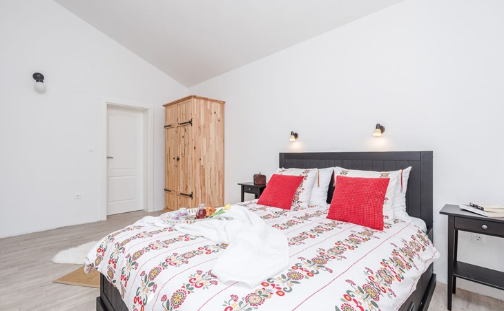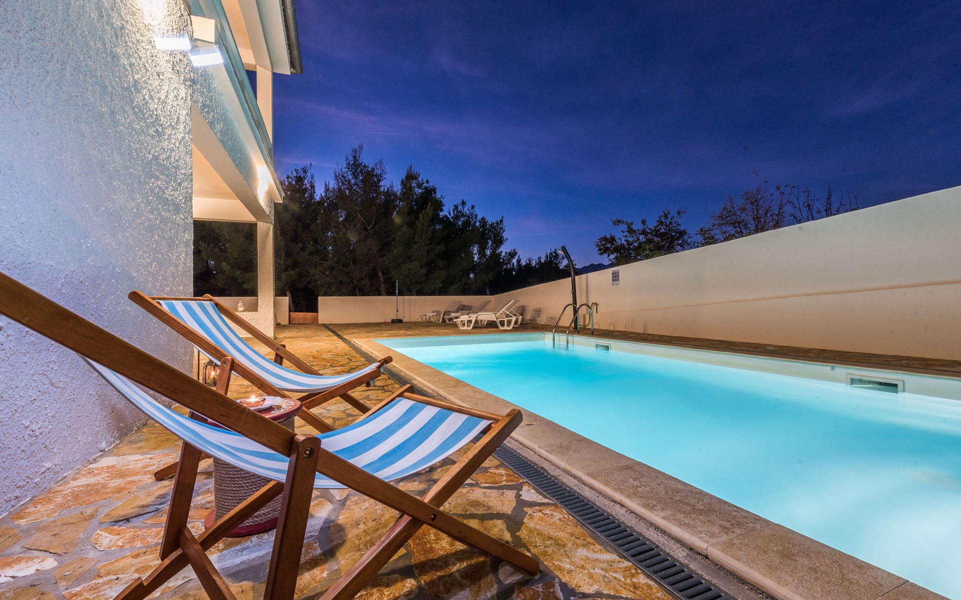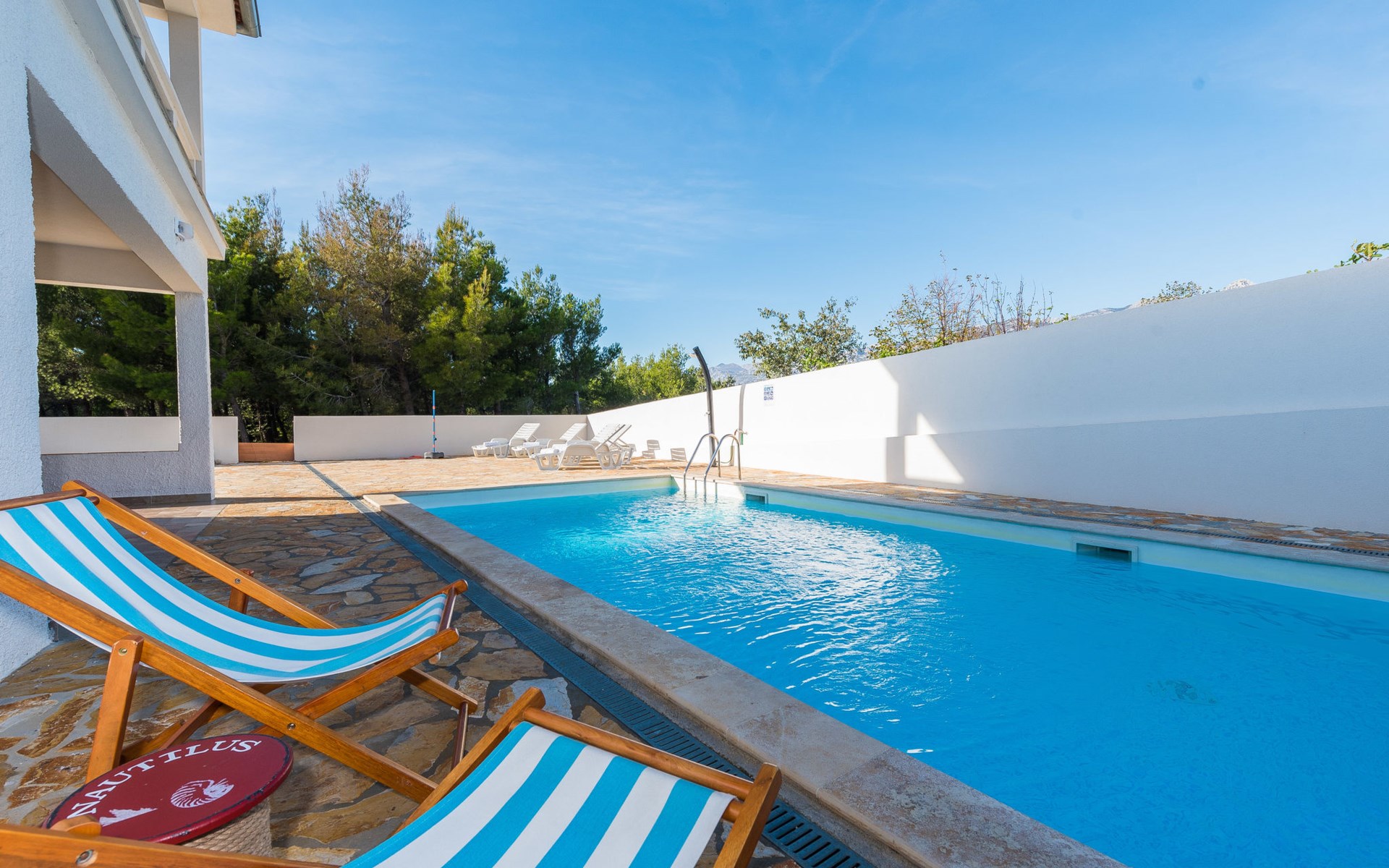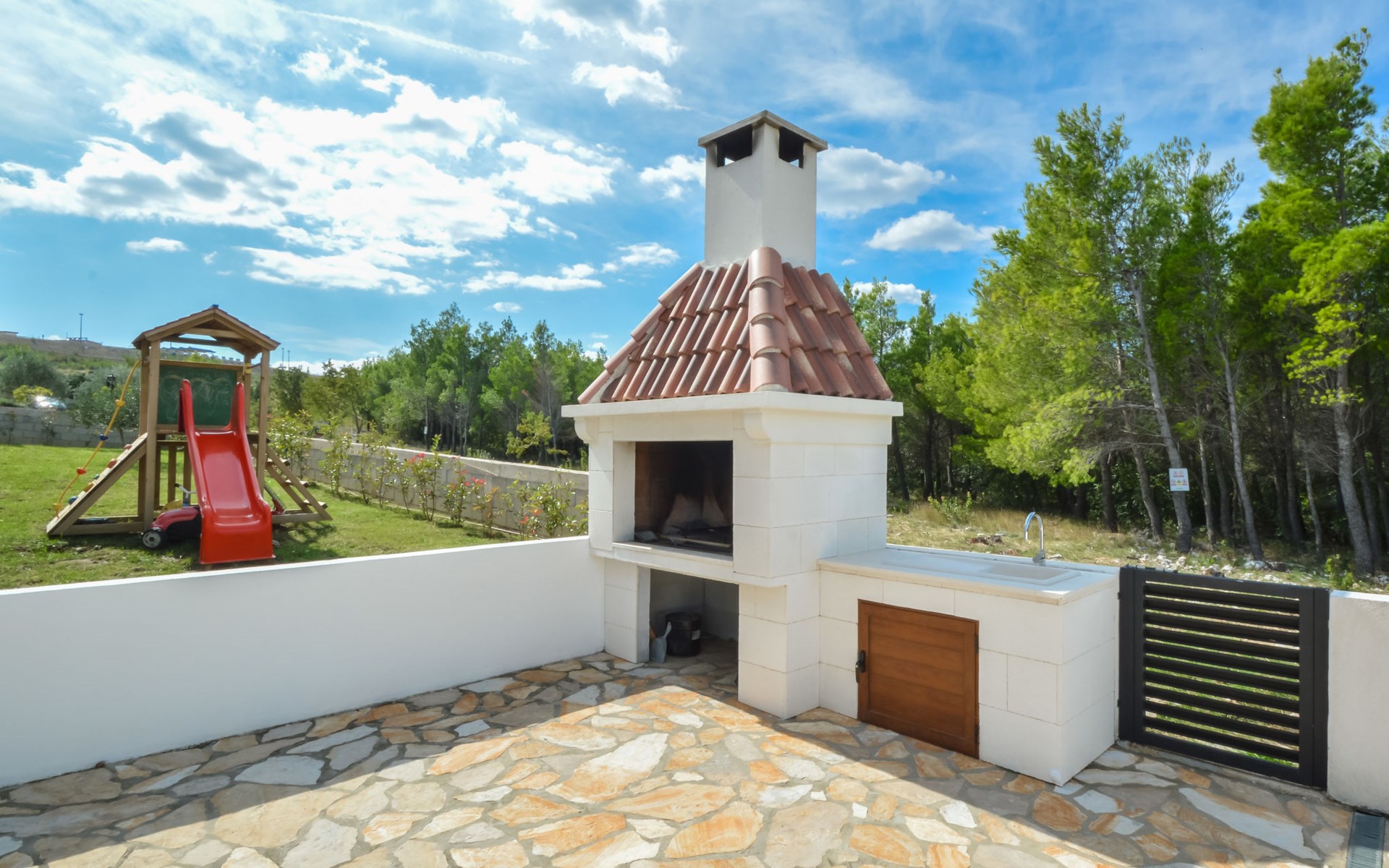 Single-family house "Velebit", 2 storeys. 12 km from the centre of Starigrad-Paklenica, in a sunny position, 250 m from the sea, 250 m from the beach. Private: property 830 m2, lawn and wildlife garden, swimming pool angular (8 x 4 m, depth 140 cm, seasonal availability: 04.May. - 28.Sep.). Outdoor shower, garden furniture, barbecue (slide). In the house: internet access, table tennis, washing machine, tumble dryer. Parking (for 3 cars) at the house on the premises. Shop 1 km, restaurant 1 km, café 200 m, bus stop 1.3 km, pebble beach 250 m. Nearby attractions: NP Paklenica 12 km, Cave Modrič 2 km. Groups of teenagers on request only. By groups of young people double deposit is requested on arrival.