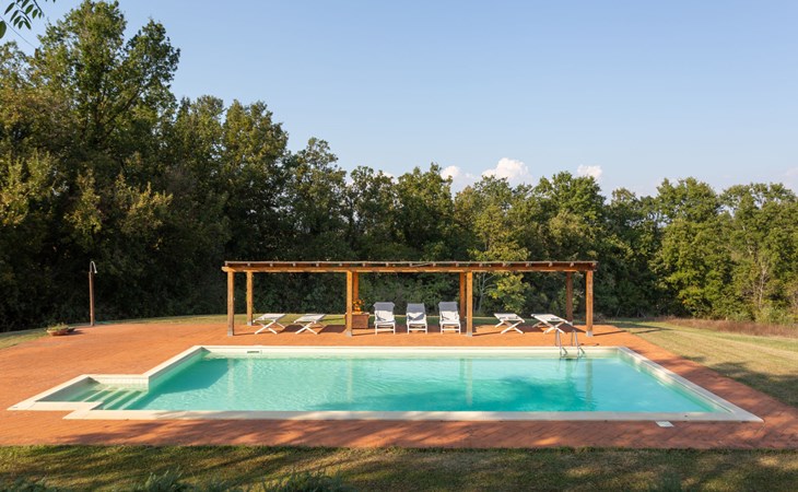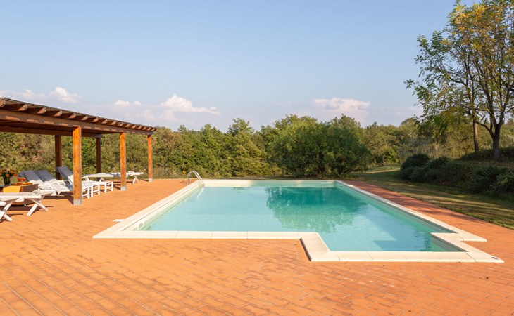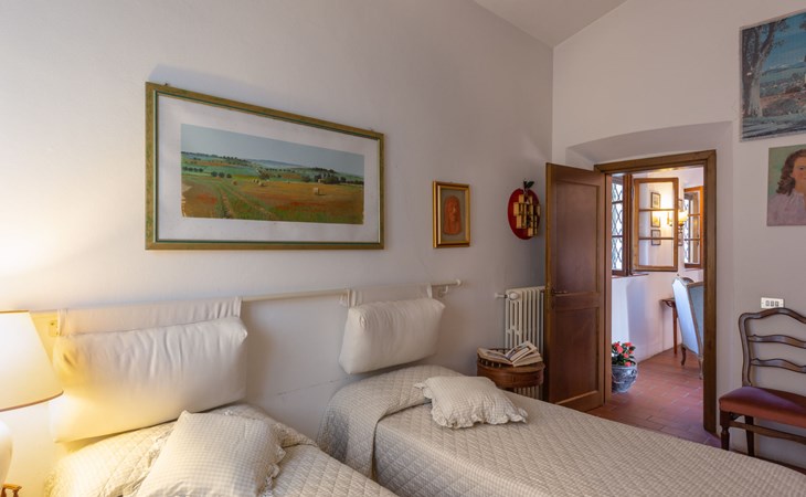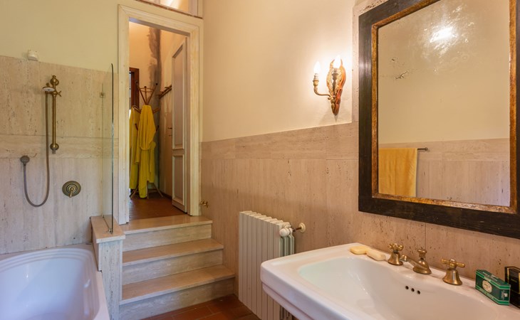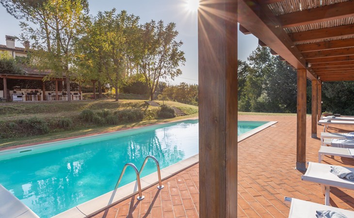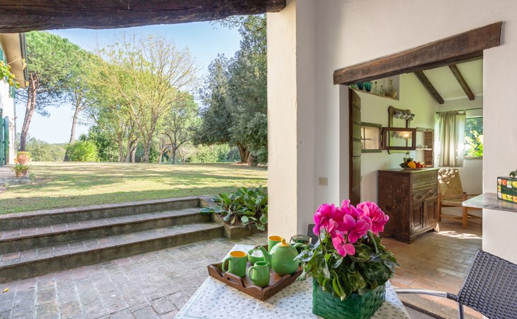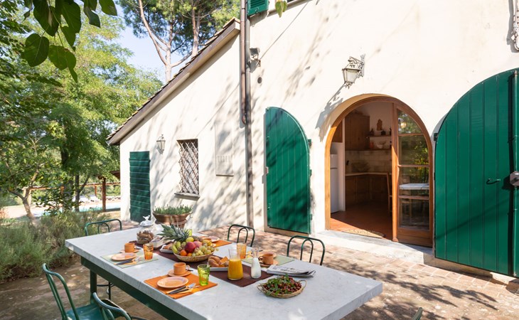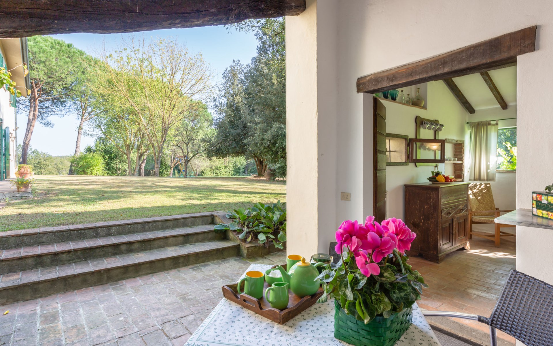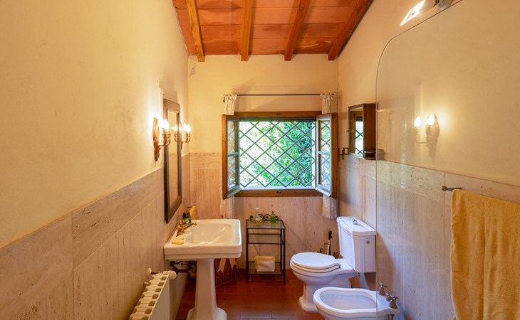 The property advertised by us consists of the villa (for six people) and the depandance (for two people) and is located in the Pisan countryside in a favorable position that allows you to reach the main centers of Tuscany. Country house "Villa San Gervasio", 26 m a.s.l., renovated in 2017. 2 houses in the residence. 6.7 km from the centre of Pontedera, 32 km from the centre of Pisa, 57 km from the centre of Firenze, in a secluded, quiet, sunny position, in the countryside. Private: park 30'000 m2 (fenced), swimming pool (12 x 6 m, depth 150 - 270 cm, seasonal availability: 04.May. - 28.Sep.). Outdoor shower, garden furniture, barbecue, children's playground (swing). In the house: central heating system, heating to be paid on the spot, heating available only from 01.Nov. - 04.Apr.. Cook on request (extra). Motor access to the house (150 m via unmade road). Parking on the premises. Shop 6 km, supermarket 3.5 km, restaurant, bus stop 500 m, sandy beach "Viareggio - Forte dei Marmi" 59 km, rocky beach "Castiglioncello" 50 km, thermal baths "Casciana Terme" 21 km. Golf course (18 hole) 15 km. Nearby attractions: San Miniato 19 km, Lajatico 25 km, Lucca 33 km, Livorno 39 km, Volterra 43 km, San Gimignano 50 km. The guardian resides in a portion of the main building, is very discreet and present only for the needs of the customer, upon request, it will be happy to prepare a typical Tuscan dinner based on meat and local specialties.