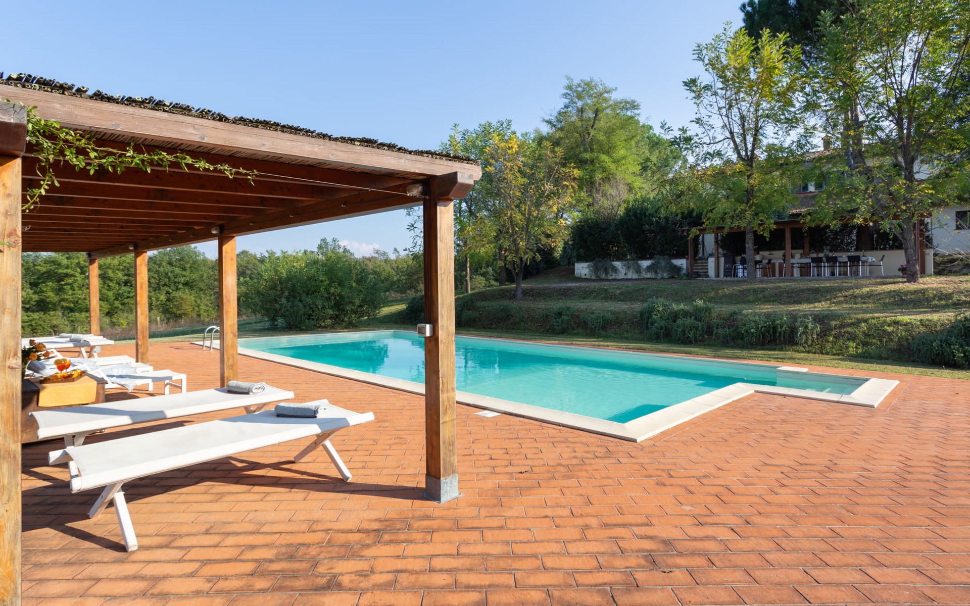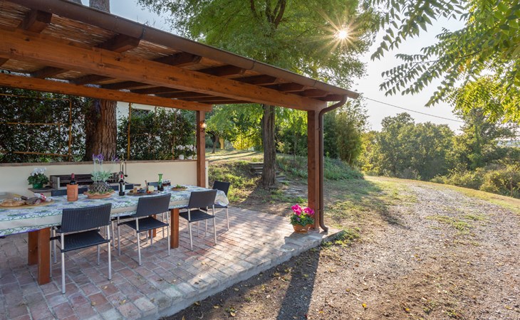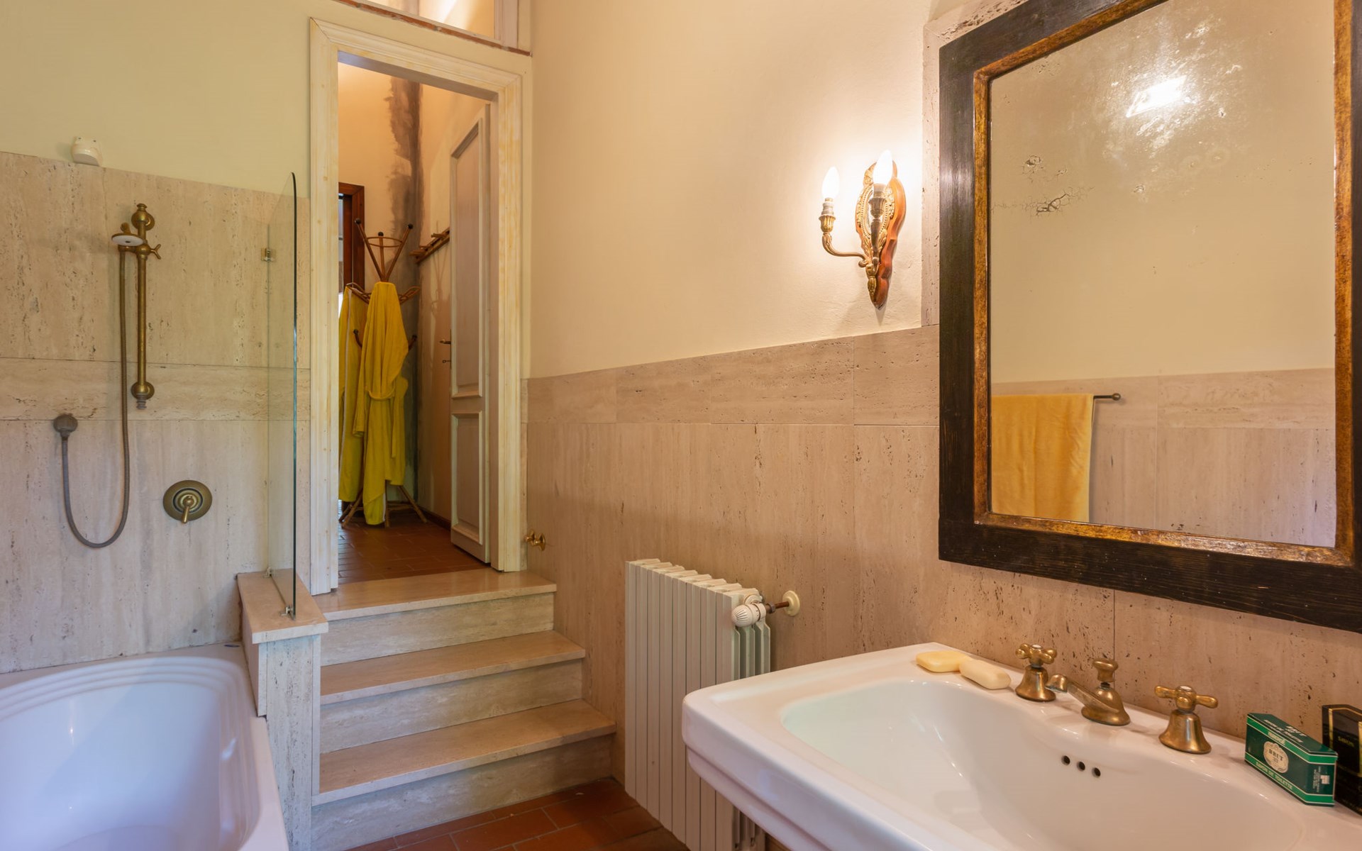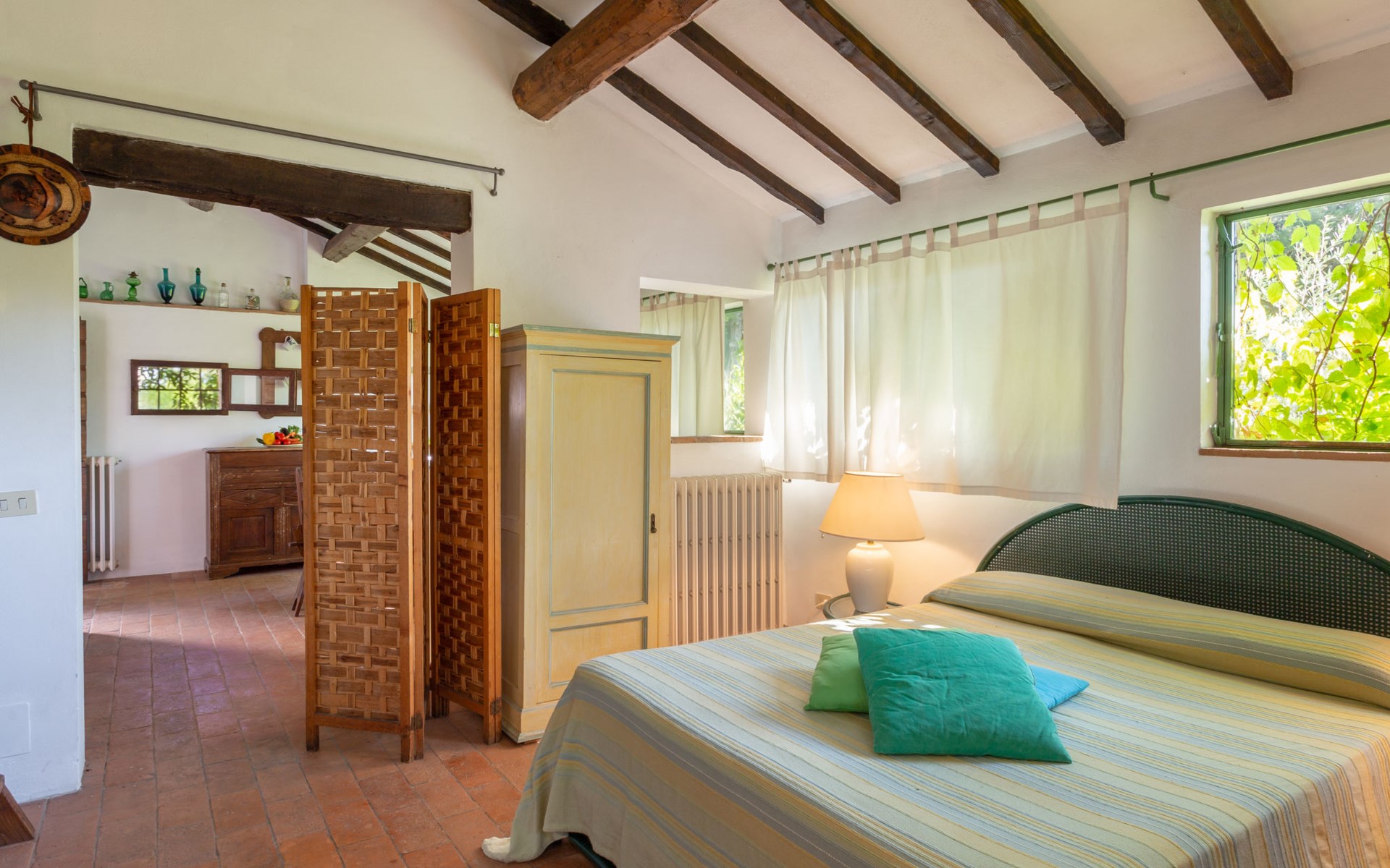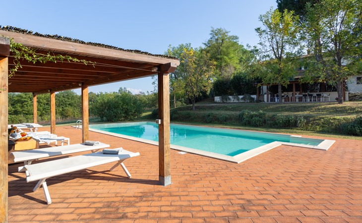 The property advertised by us consists of the villa (for six people) and the depandance (for two people) and is located in the Pisan countryside in a favorable position that allows you to reach the main centers of Tuscany. Country house "Villa San Gervasio", 26 m a.s.l., renovated in 2017. 2 houses in the residence. 6.7 km from the centre of Pontedera, 32 km from the centre of Pisa, 57 km from the centre of Firenze, in a secluded, quiet, sunny position, in the countryside. Private: park 30'000 m2 (fenced), swimming pool (12 x 6 m, depth 150 - 270 cm, seasonal availability: 04.May. - 28.Sep.). Outdoor shower, garden furniture, barbecue, children's playground (swing). In the house: central heating system, heating to be paid on the spot, heating available only from 01.Nov. - 04.Apr.. Cook on request (extra). Motor access to the house (150 m via unmade road). Parking on the premises. Shop 6 km, supermarket 3.5 km, restaurant, bus stop 500 m, sandy beach "Viareggio - Forte dei Marmi" 59 km, rocky beach "Castiglioncello" 50 km, thermal baths "Casciana Terme" 21 km. Golf course (18 hole) 15 km. Nearby attractions: San Miniato 19 km, Lajatico 25 km, Lucca 33 km, Livorno 39 km, Volterra 43 km, San Gimignano 50 km. The guardian resides in a portion of the main building, is very discreet and present only for the needs of the customer, upon request, it will be happy to prepare a typical Tuscan dinner based on meat and local specialties.