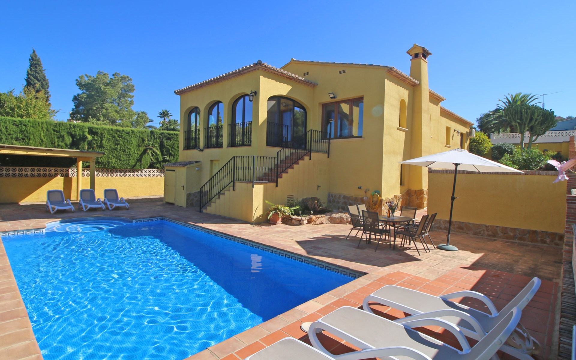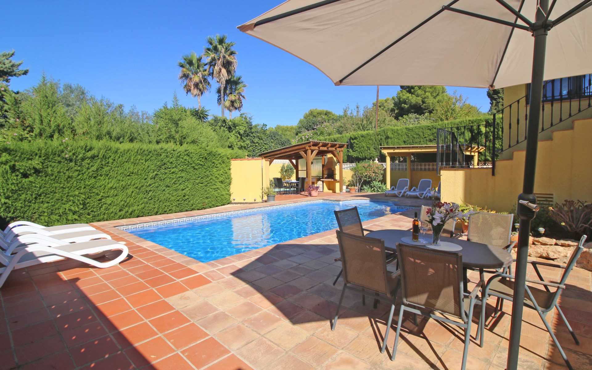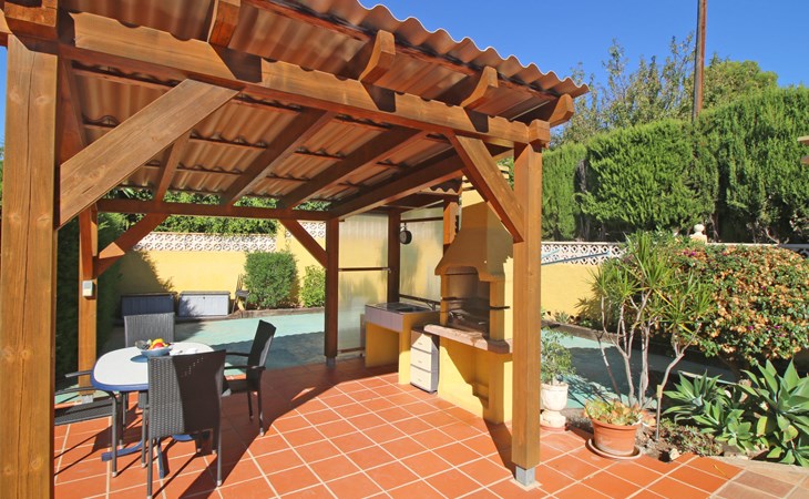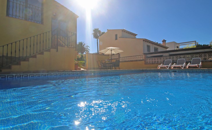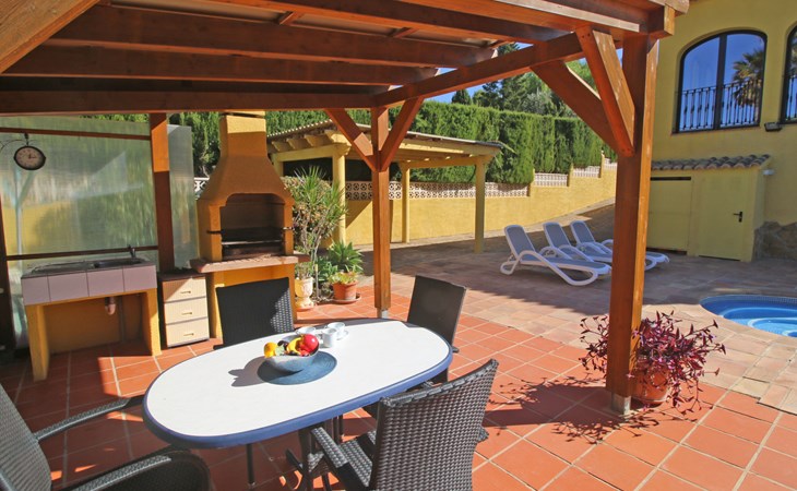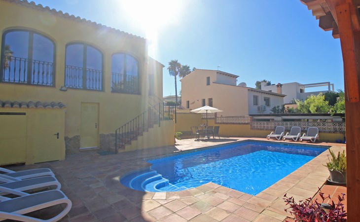 Villa "Jardin". 3.4 km from the centre of Calpe, 25 km from the centre of Benidorm, 60 km from the centre of Alicante, 2.2 km from the sea, 2.2 km from the beach. Private: property 817 m2 (fenced), garden, swimming pool (8 x 4 m, seasonal availability: 01.Jan. - 31.Dec.). Outdoor shower. Shop 1.8 km, supermarket 1.6 km, restaurant 1.5 km, bus stop 800 m, sandy beach "Playa de la Fossa" 2.2 km. Nearby attractions: Parque atracciones Terra Mitica 35 km, Parque acuático Aqualandia 25 km. Hiking paths: Peñon de Ifach 4 km.