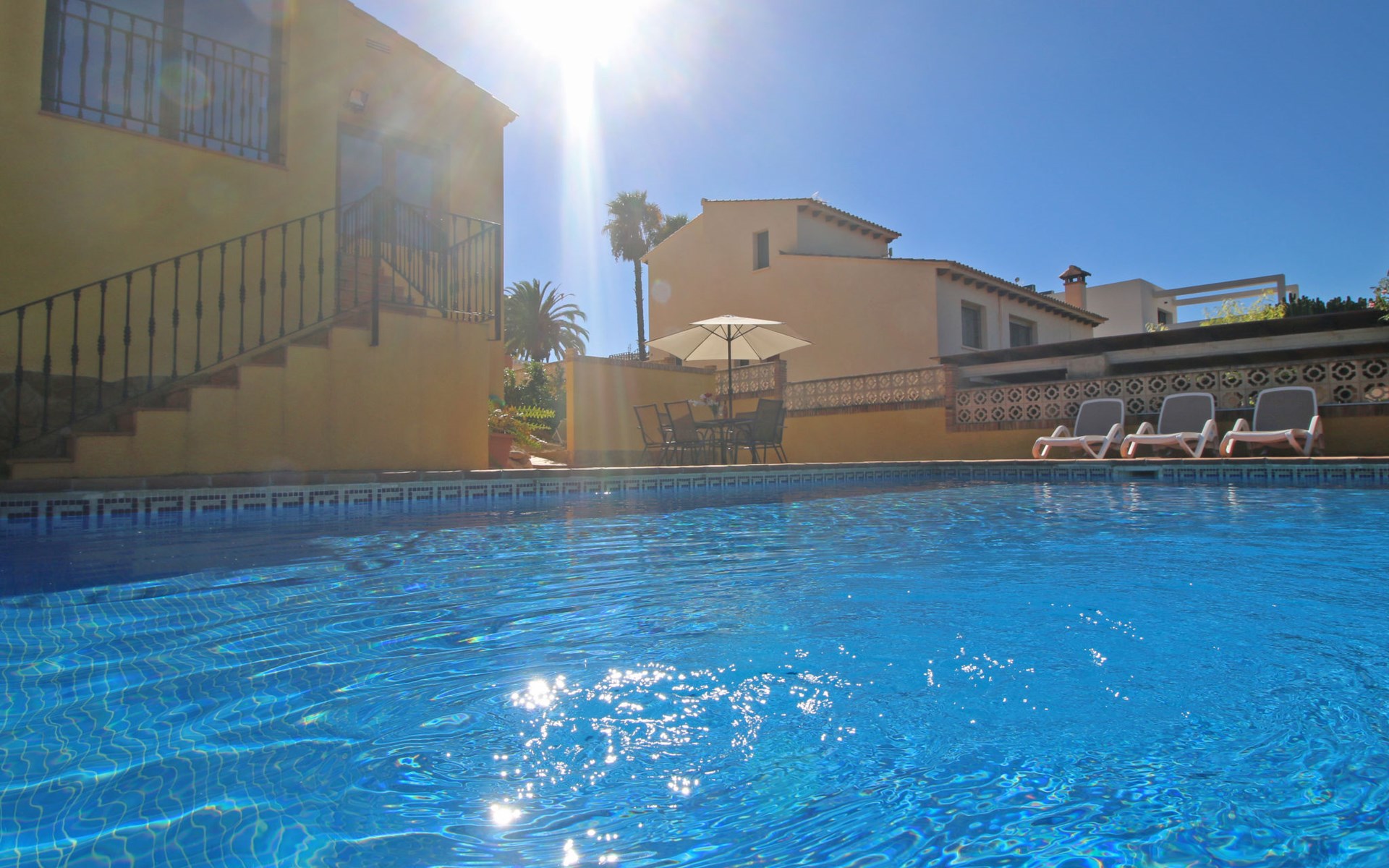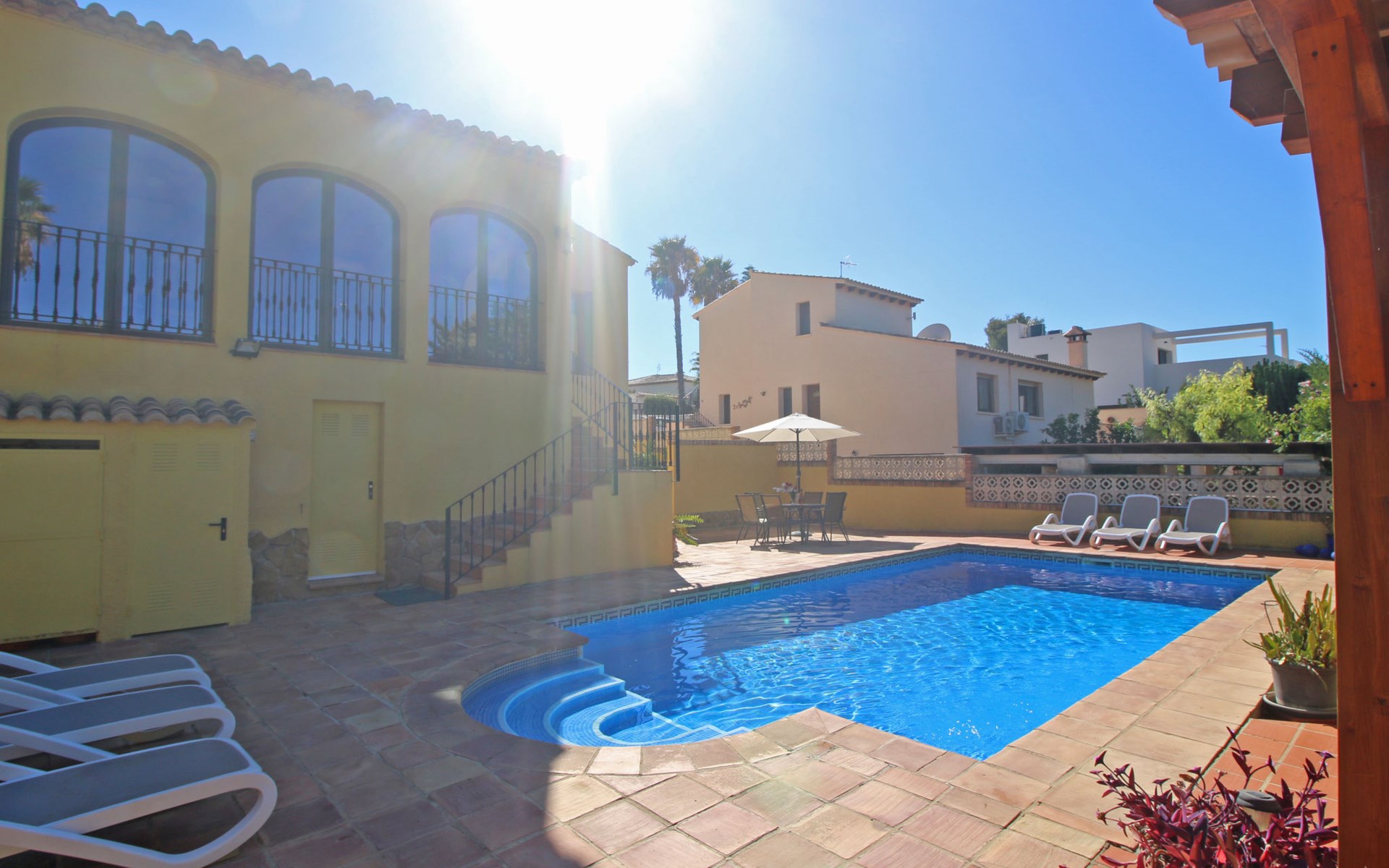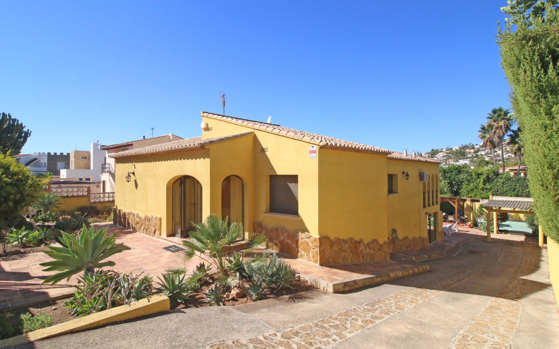 Villa "Jardin". 3.4 km from the centre of Calpe, 25 km from the centre of Benidorm, 60 km from the centre of Alicante, 2.2 km from the sea, 2.2 km from the beach. Private: property 817 m2 (fenced), garden, swimming pool (8 x 4 m, seasonal availability: 01.Jan. - 31.Dec.). Outdoor shower. Shop 1.8 km, supermarket 1.6 km, restaurant 1.5 km, bus stop 800 m, sandy beach "Playa de la Fossa" 2.2 km. Nearby attractions: Parque atracciones Terra Mitica 35 km, Parque acuático Aqualandia 25 km. Hiking paths: Peñon de Ifach 4 km.