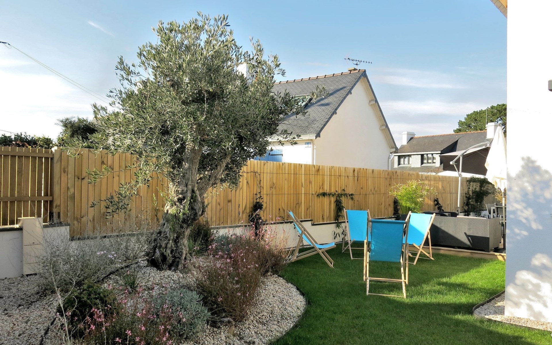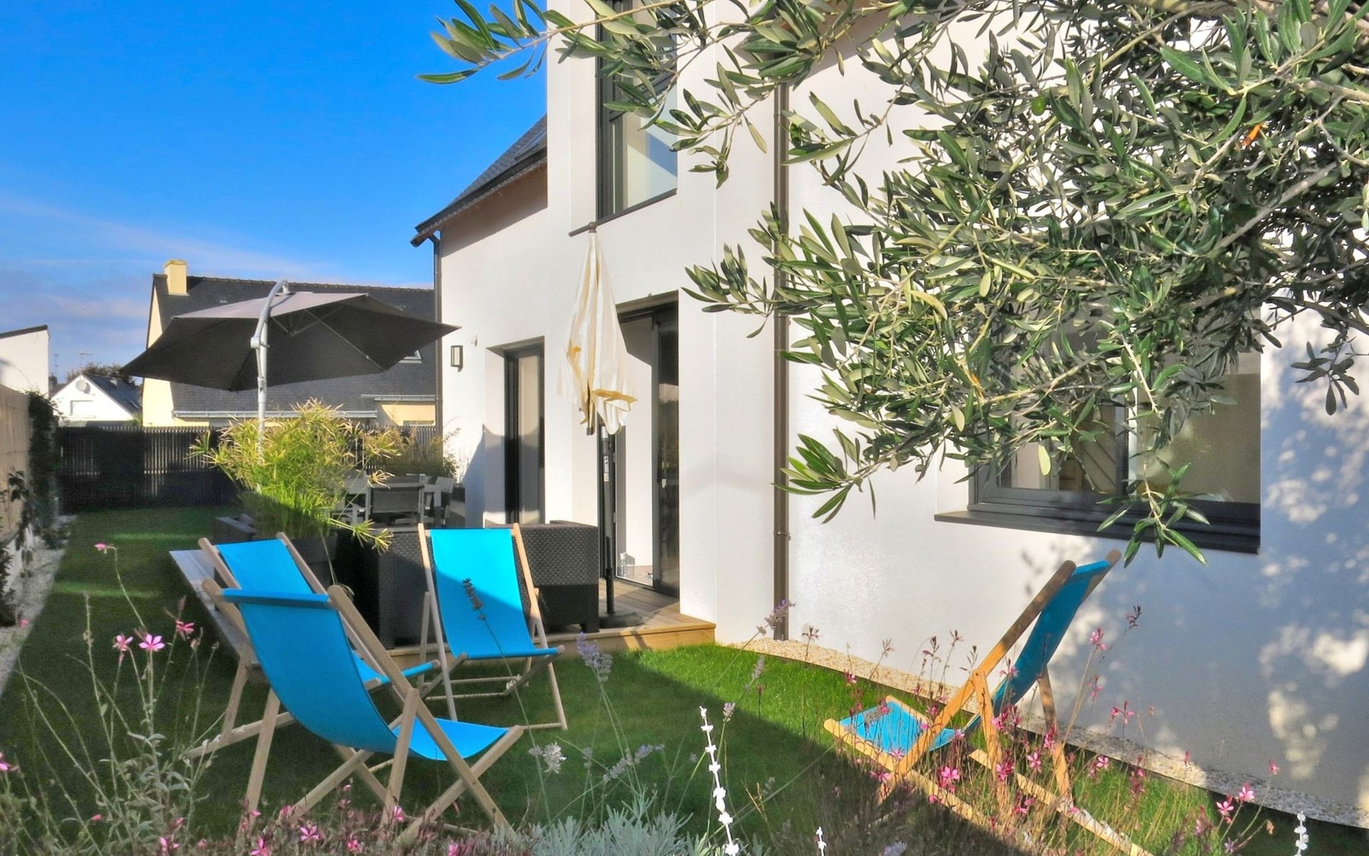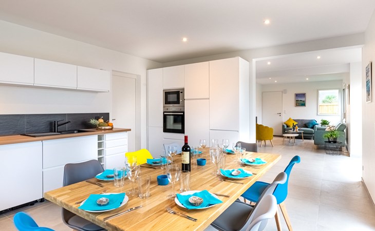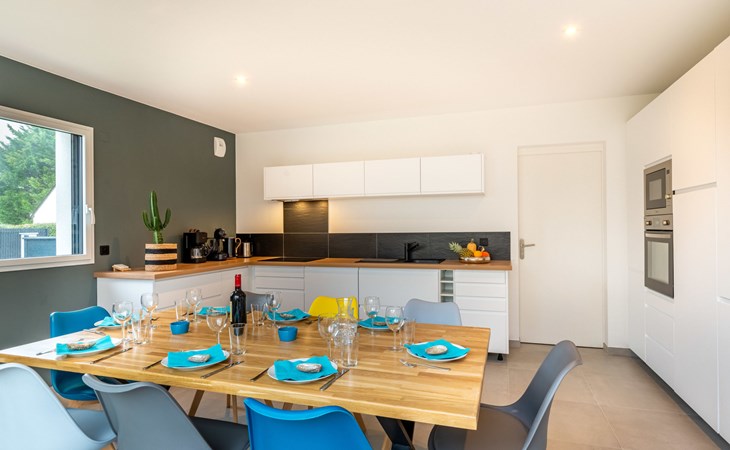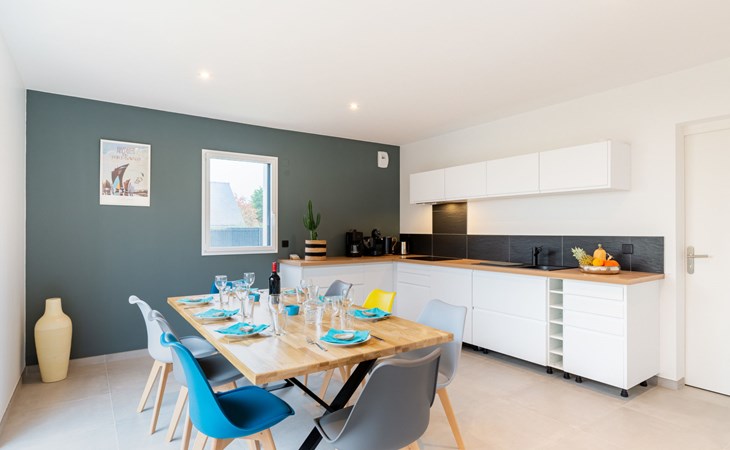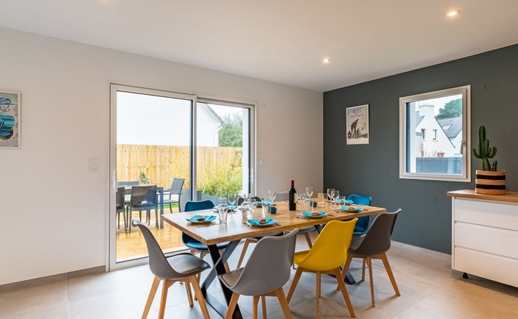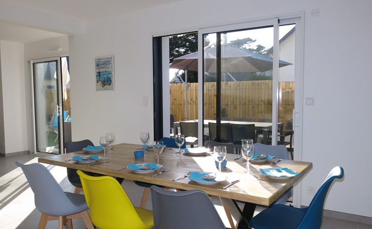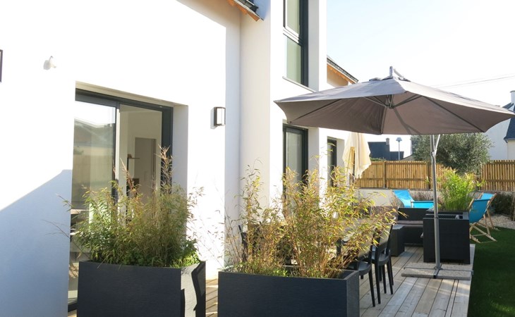 Single-family house "Villa Lanka", built in 2021. 1.3 km from the centre of Arzon, 11 km from the centre of Sarzeau, 34 km from the centre of Vannes, in the residential district, excellent location: right in the centre but still quiet, 370 m from the sea, in a cul-de-sac. Private: property 320 m2 (fenced) with lawn and wildlife garden. In the house: storage room for bicycles. Storeroom available. Parking (for 2 cars) on the premises. Supermarket 900 m, restaurant 600 m, bus stop 1.3 km, sandy beach "Plage de Port Sable" 370 m. Sports harbour 700 m, sailing school 2.2 km, tennis 2.2 km. Nearby attractions: Port du Crouesty 700 m, Golfe du Morbihan (Port Navalo) 1 km, Thalassotherapie 2.2 km, Golf de Kervers 6.7 km, Départs vers Belle Ile, Houat et Hoedic 1 km. Hiking paths: GR34. The owner does not accept any youth groups.