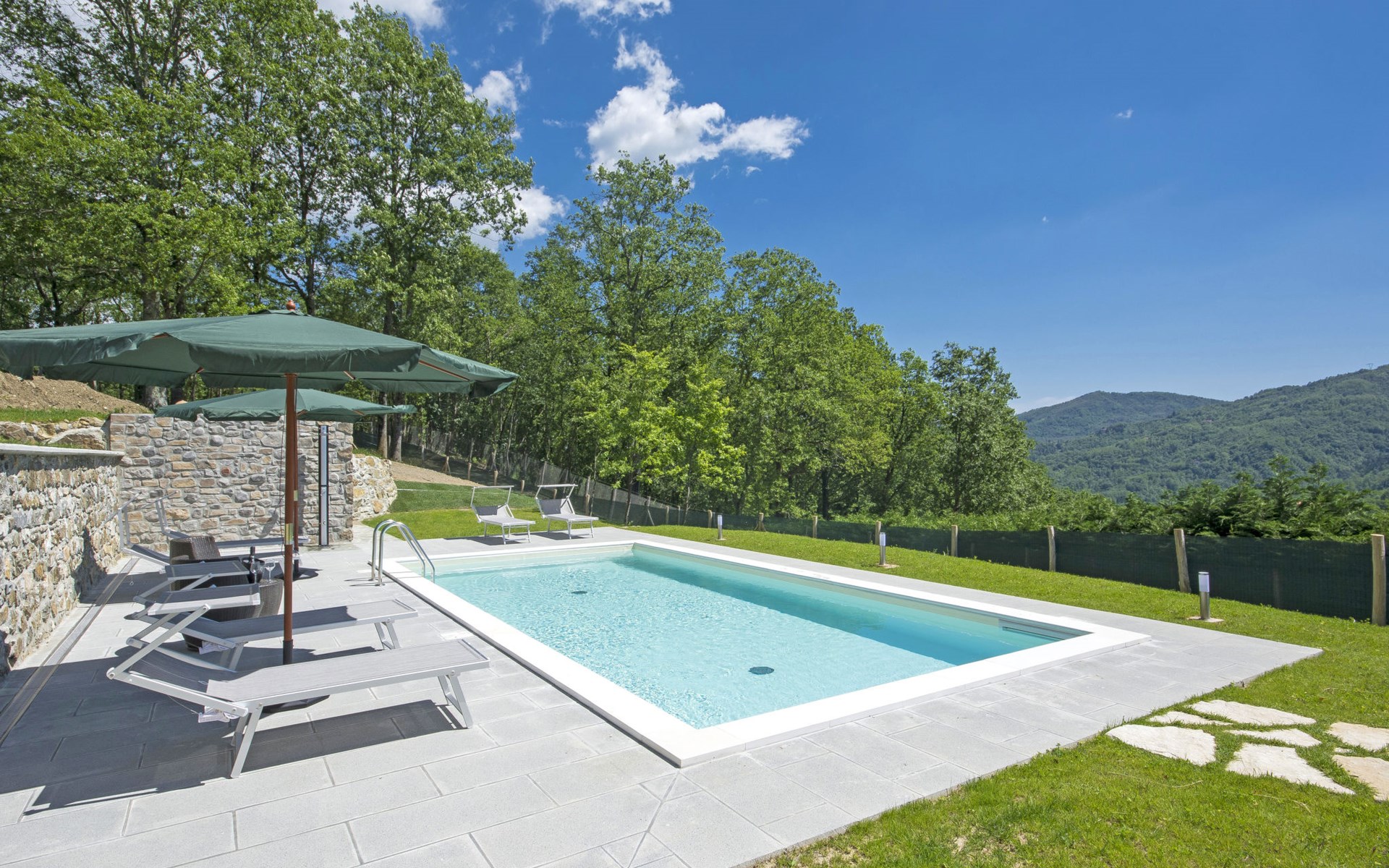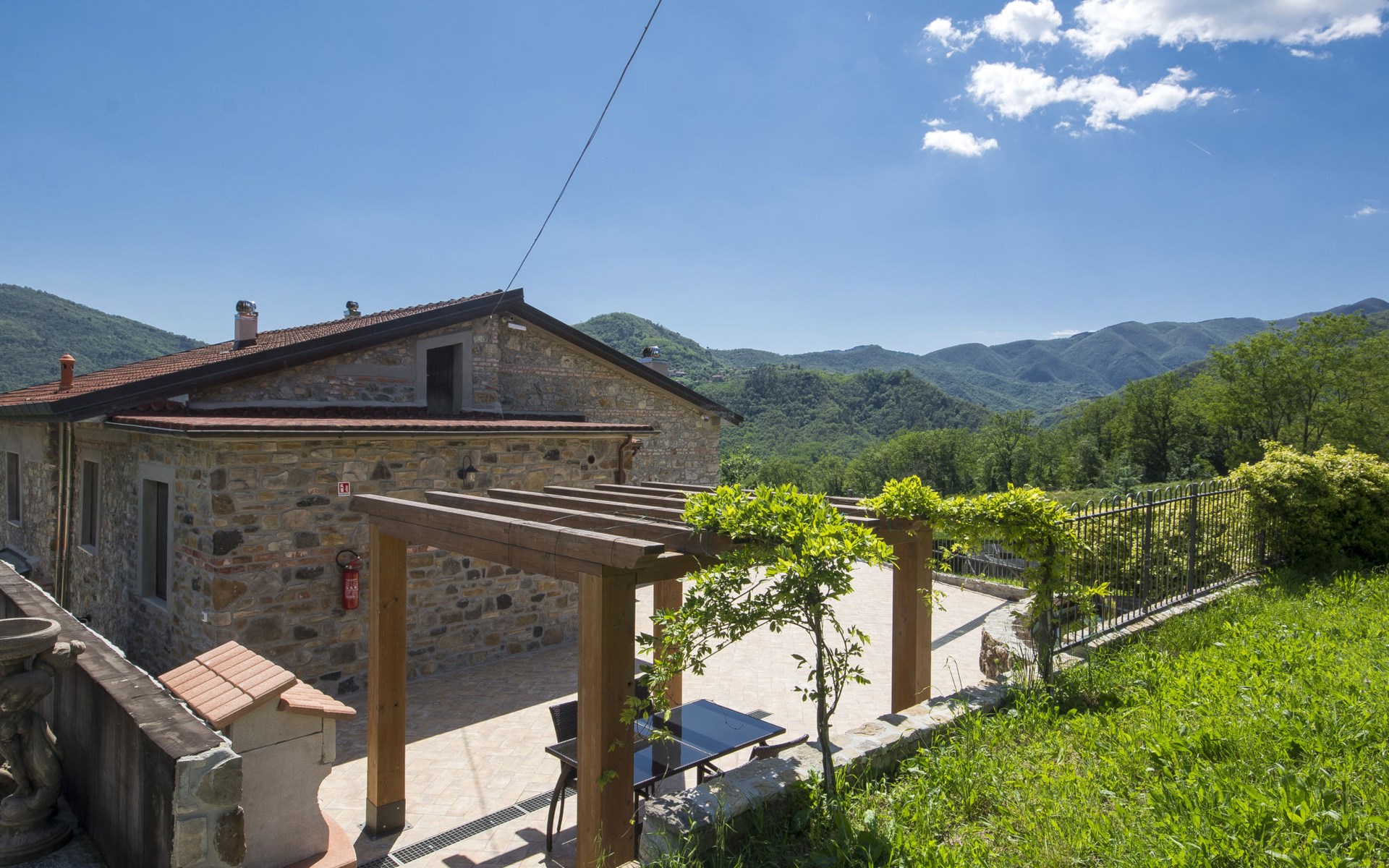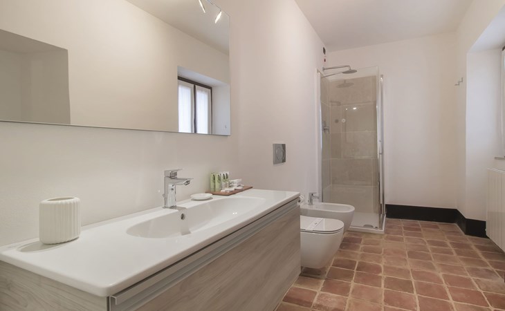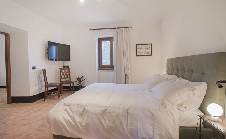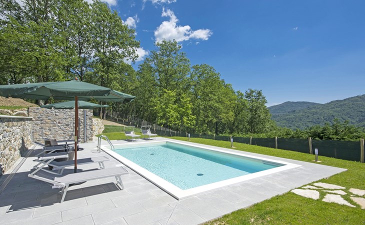 Country house "Agr Castello della Mugazzena", renovated, surrounded by trees. In the hamlet Tresana 8 km from the centre of Aulla, 10 km from the centre of Villafranca in Lunigiana, 15 km from the centre of Castello di Malgrate, in a secluded, quiet position, in the countryside. For shared use: property 140 ha, swimming pool (8 x 4 m, depth 120 cm, seasonal availability: 15.May. - 30.Sep.). Outdoor shower, garden furniture, barbecue. In the house: internet access, central heating system, heating to be paid on the spot (15.Apr. - 31.Oct.). Cook on request. Motor access (1 km via unmade road). Parking at the house. Grocery 5 km, supermarket 8 km, restaurant 5 km, bus stop 800 m, railway station 8 km, thermal baths "Equi Terme" 30 km. Tennis 5 km, riding stable 5 km. Nearby attractions: Fivizzano 25 km, Pontremoli 30 km, Sarzana 27 km, La Spezia 29 km, Lerici 32 km, Riomaggiore (5 Terre) 44 km. Well-known lakes can easily be reached: Cerreto Laghi 46 km, Lago di Gramolazzo 43 km. Please note: car recommended. Cooking courses bookable on request. Local sale of farm products. Part of the house is closed and unoccupied.