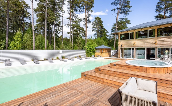 Cosy house "Himla". 14 houses in the residence. 250 m from the sea, in the countryside. For shared use: natural state property, natural garden, swimming pool (seasonal availability: 27.Jun. and 17.Aug.). In the complex: reception, restaurant, spa area for shared use, sun terrace. Public parking. Supermarket 25 km, restaurant 100 m, bus stop "Arnöviken" 600 m, railway station "Hudiksvall" 25 km, grass beach 200 m. Golf course (18 hole) 30 km, fishing possibilities 200 m. Please note: fishing [permit required]. Restaurant and Spa opening hours: Weekend: June 6 - June 26, All day: June 27 - August 17, Weekend open: August 18 - August 31, Weekend open: August 18 - August 31.