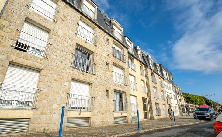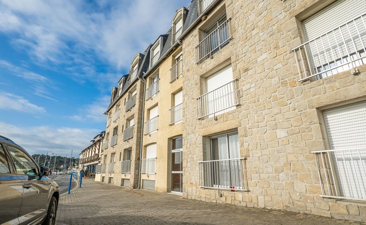 Apartment house "Le Surcouf", 4 storeys. In the centre of Binic, in a busy position, 10 m from the sea. In the house: lift. Public parking on the road. Shop 200 m, restaurant, bar 10 m, bakery 500 m, bus stop 1 km, sandy beach "Plage de l'avant port" 50 m. Sports harbour 200 m, golf course (18 hole) 8 km, sailing school 300 m. Nearby attractions: St. Quai Portrieux 8 km, Paimpol 34 km, Ile de Bréhat, Abbaye de Beauport 28 km, Château de la Roche-Jagu 27 km, St Brieuc 13 km.