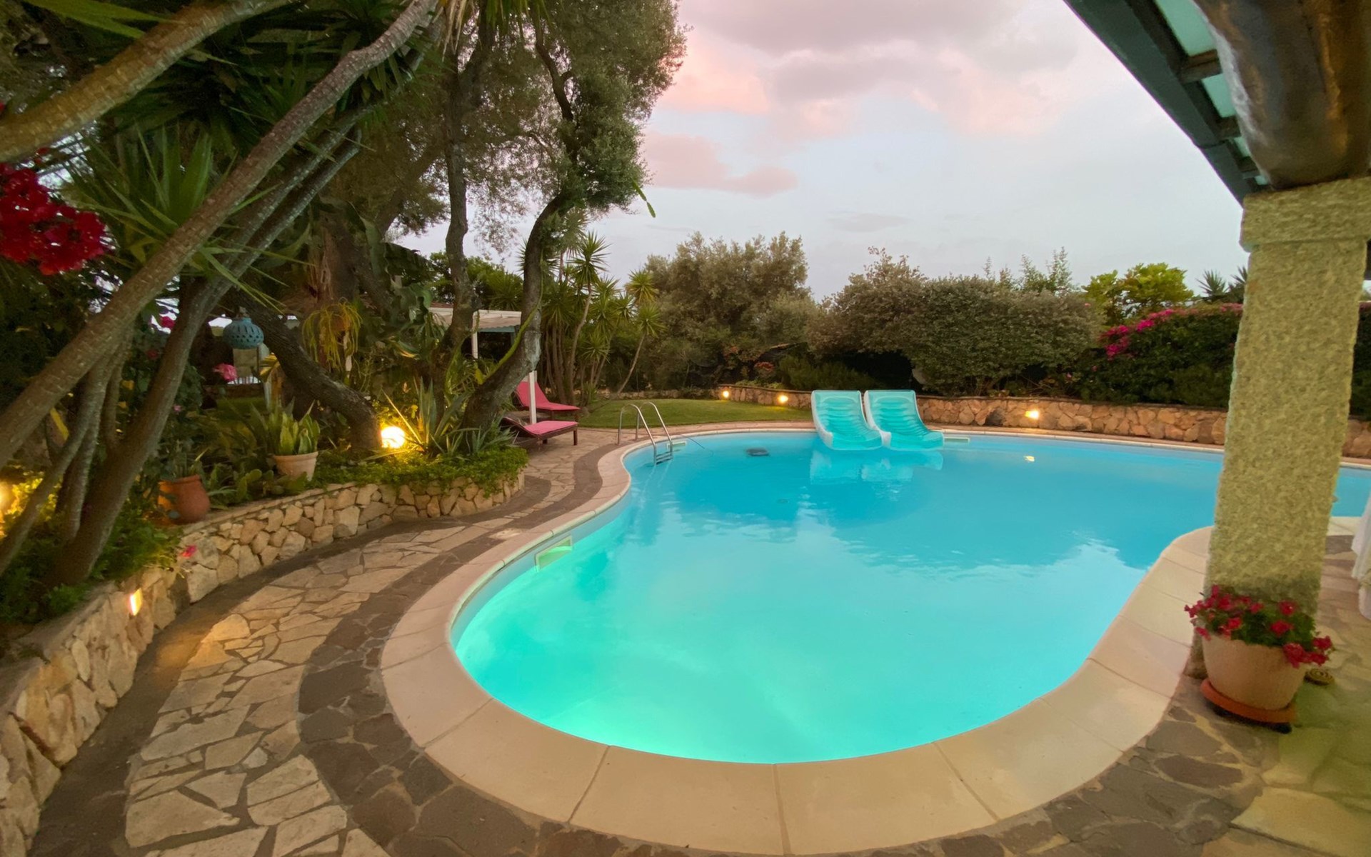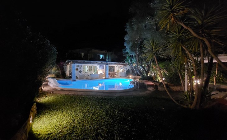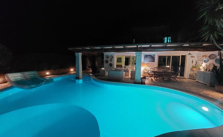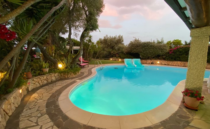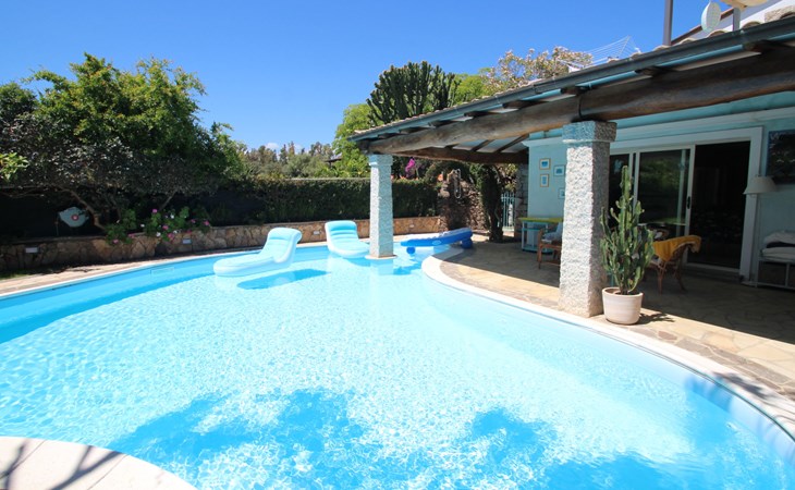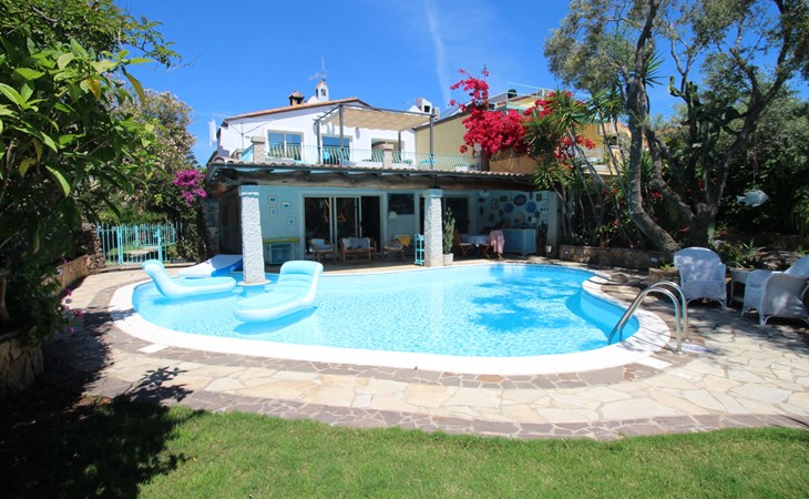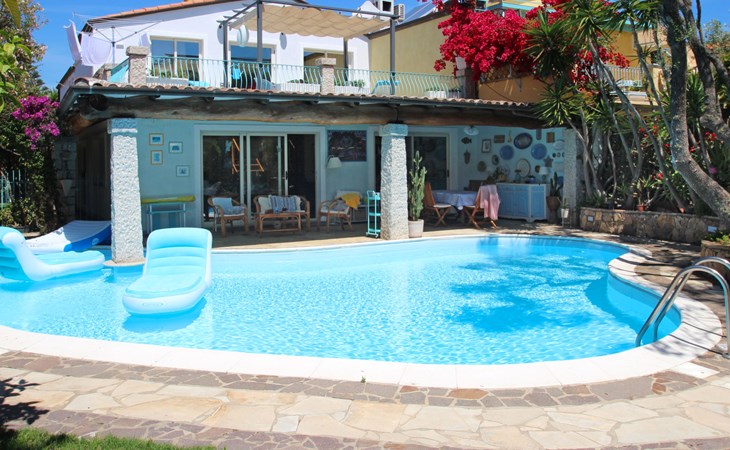 Very cosy, comfortable villa "Surphinia", 2 storeys, detached, surrounded by trees and meadows. 5 km from the centre of Bari Sardo, in a quiet, sunny position residential area (villas), 200 m from the sea. Private: garden 500 m2 (fenced), swimming pool with privacy (60 m2, depth 140 - 200 cm, seasonal availability: 01.Apr. - 30.Oct.). Outdoor shower, patio, pergola, garden furniture, barbecue, fireplace, barbecue house. Motor access to the house. Parking (for 4 cars) at the house. Grocery 1 km, supermarket 4 km, restaurant 1 km, bar 1 km, bus stop 4 km, sandy beach 200 m, rocky beach 1 km. Tennis 1 km. Nearby attractions: Arbatax 20 km, Villasimius 100 km, Cagliari 130 km. Please note: car recommended.