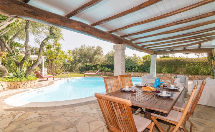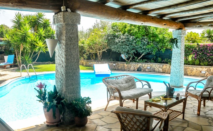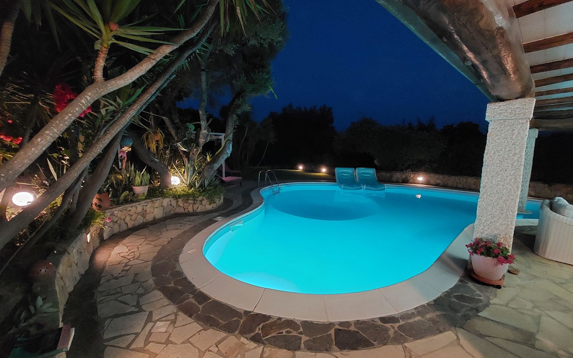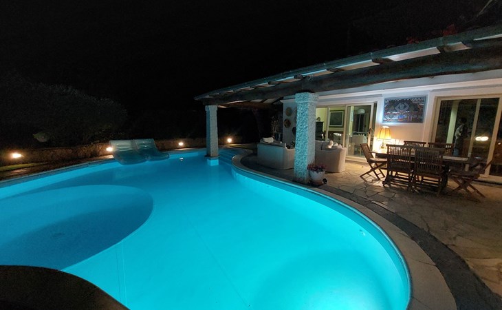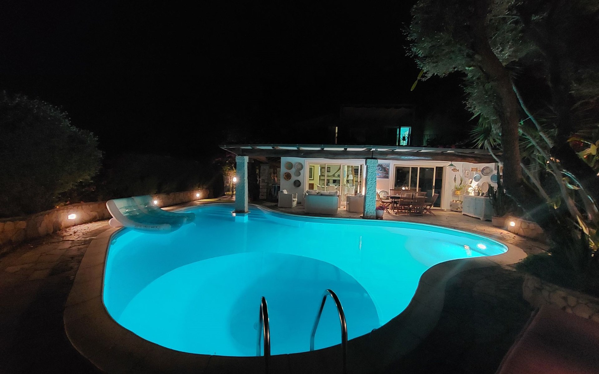 Very cosy, comfortable villa "Surphinia", 2 storeys, detached, surrounded by trees and meadows. 5 km from the centre of Bari Sardo, in a quiet, sunny position residential area (villas), 200 m from the sea. Private: garden 500 m2 (fenced), swimming pool with privacy (60 m2, depth 140 - 200 cm, seasonal availability: 01.Apr. - 30.Oct.). Outdoor shower, patio, pergola, garden furniture, barbecue, fireplace, barbecue house. Motor access to the house. Parking (for 4 cars) at the house. Grocery 1 km, supermarket 4 km, restaurant 1 km, bar 1 km, bus stop 4 km, sandy beach 200 m, rocky beach 1 km. Tennis 1 km. Nearby attractions: Arbatax 20 km, Villasimius 100 km, Cagliari 130 km. Please note: car recommended.