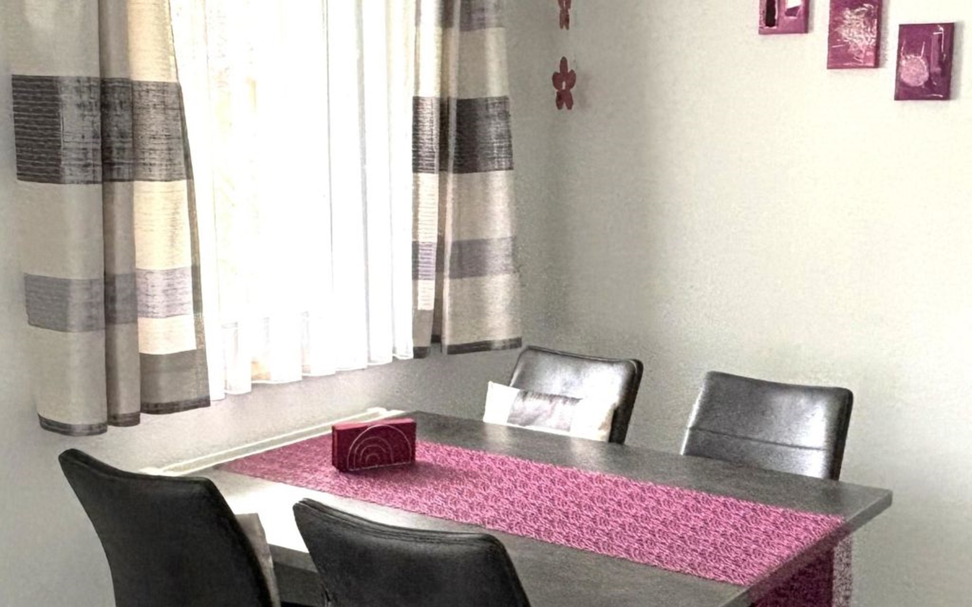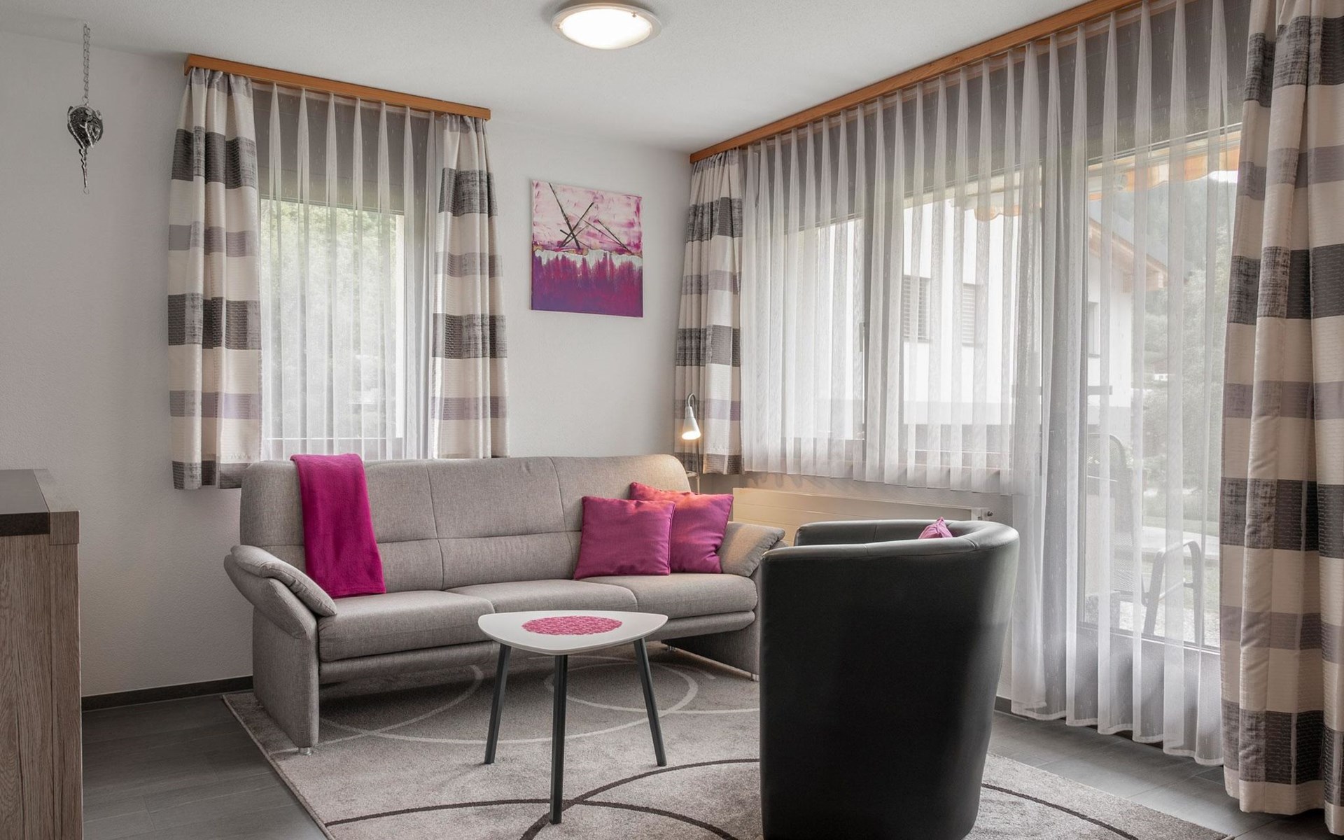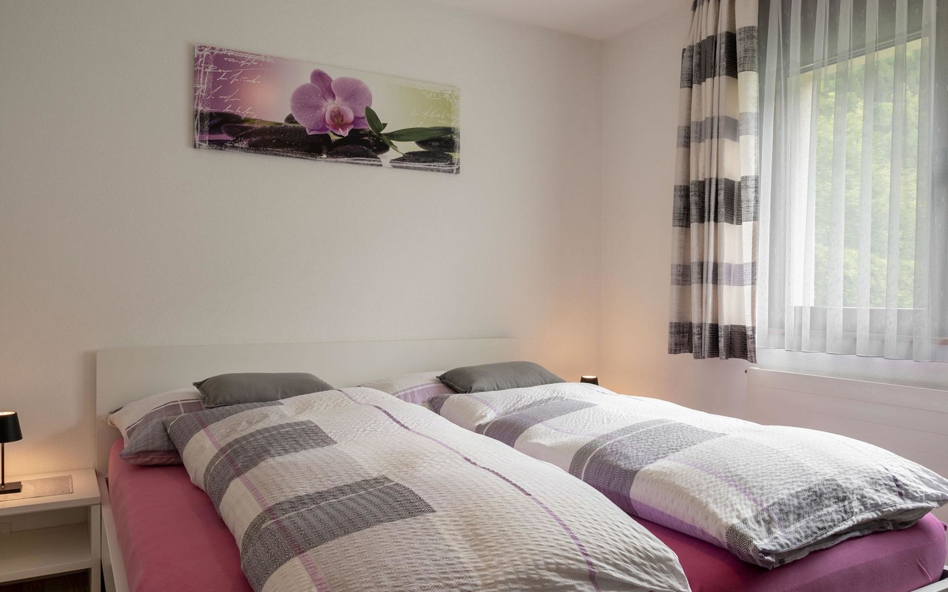 The apartment is modern and comfortably furnished. The bedroom features a double bed. The living area includes a TV, radio, CD player and internet connection. The kitchen with integrated dining area is fully equipped, including a coffee machine, kettle and toaster. A fondue set and a raclette oven are also available. A washing machine, dryer and iron in the adjacent room can be used for free.