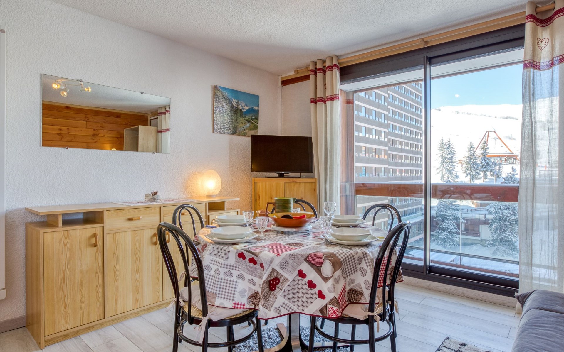 Apartment house "Soyouz Vanguard", 19 storeys. 150 m from the centre, 150 m from the skiing area. For shared use: swimming pool heated (seasonal availability: 14.Dec. - 11.Apr. and 28.Jun. - 29.Aug. pool opening hours: 10:00-19:30). In the complex: internet access, lift, storage room for skis. Public parking. Shop 200 m, grocery 50 m, restaurant, bar 200 m, bus stop 450 m, railway station "St Jean de Maurienne" 15 km, outdoor swimming pool 200 m. Skisport facilities, slopes, ski school 200 m, ski-kindergarten 50 m, sled run 200 m. Please note: Additional accommodations can be booked. The swimming pool facilities are 150 m from the residence at the municipal pool. Entrance for under 3’s is not allowed. Children between 3 and 5 years old are allowed subject to weather conditions (in winter). Entrance tickets to the swimming pool are included in your rental price and will be given to you when you check in.