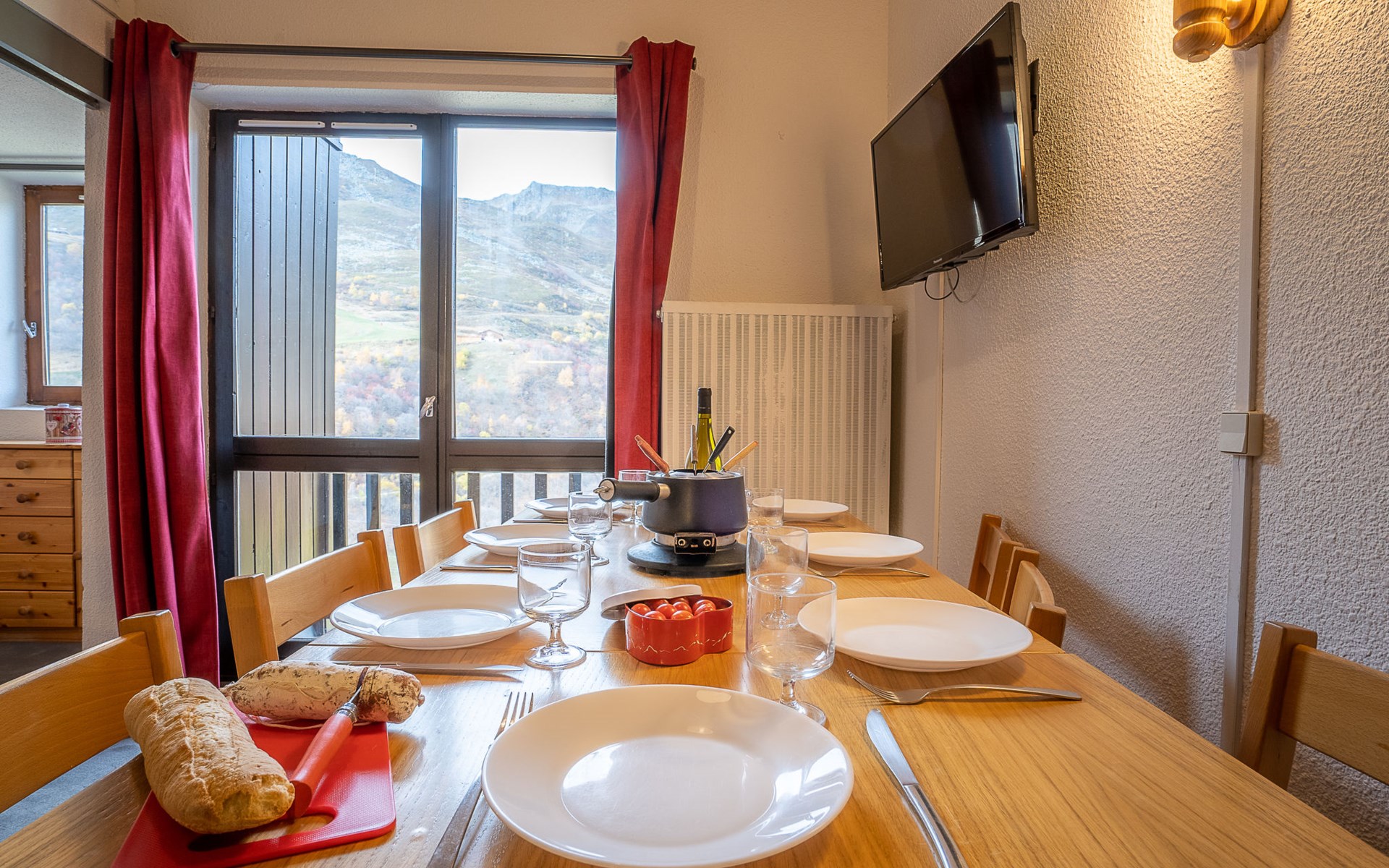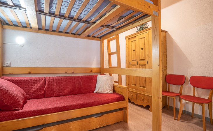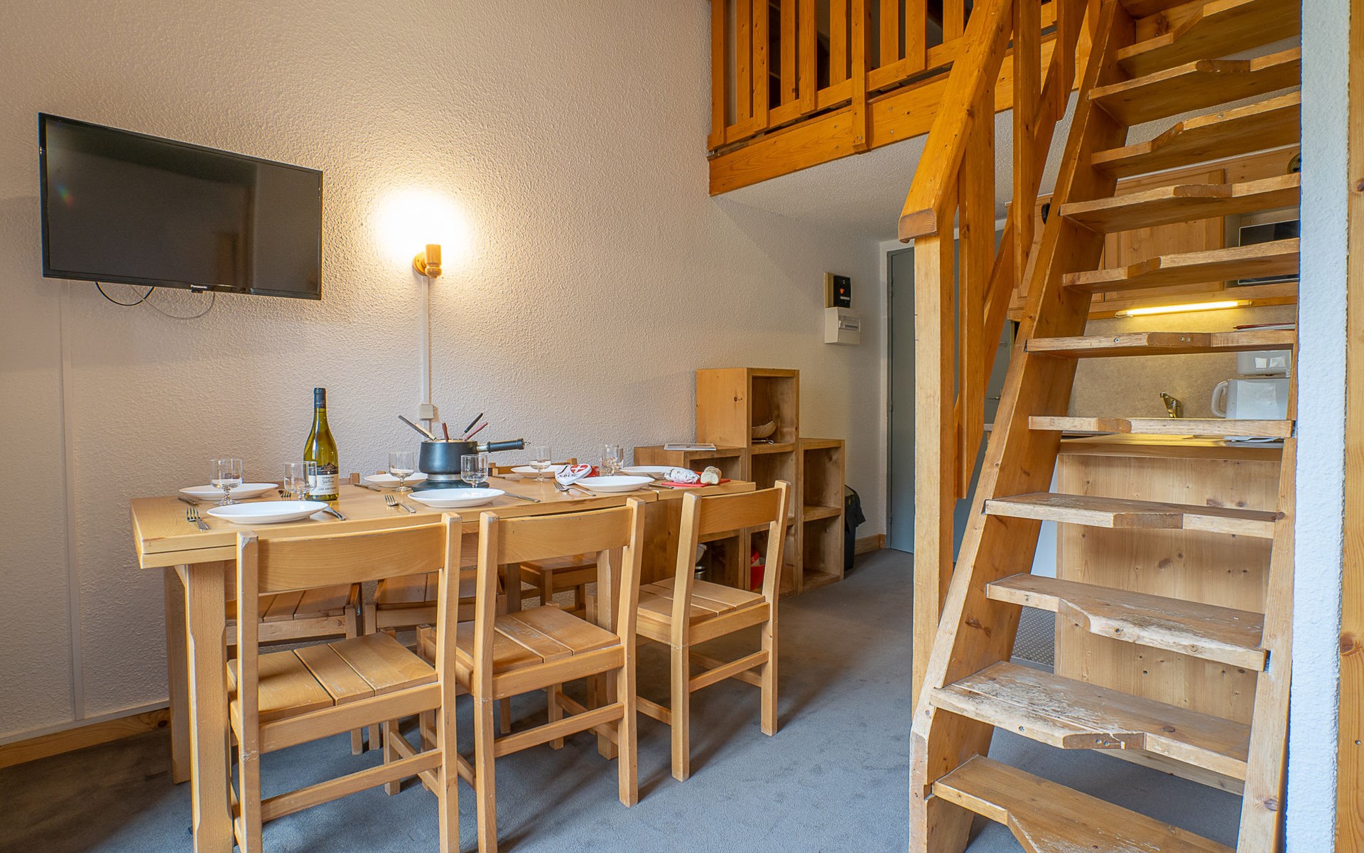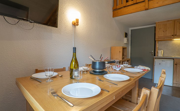Residence "Le Jettay", 5 storeys. 500 m from the centre of La Croisette, directly by the skiing area. In the complex: storage room for skis, central heating system. Public parking. Grocery, supermarket 200 m, shopping centre 500 m, bus stop "Les Fontanettes Haut" 500 m. Sports centre 500 m, skisport facilities 50 m, slopes 10 m, ski school 500 m. Well-known ski regions can easily be reached: 3 Vallées. Please note: no lift. The photograph shows a typical example. Additional accommodations can be booked. The residence "Le JETAY" is linked to the resort centre (ski school, all shops, tourist office) by stairs. Eagle and jackdaws without elevator entrance.