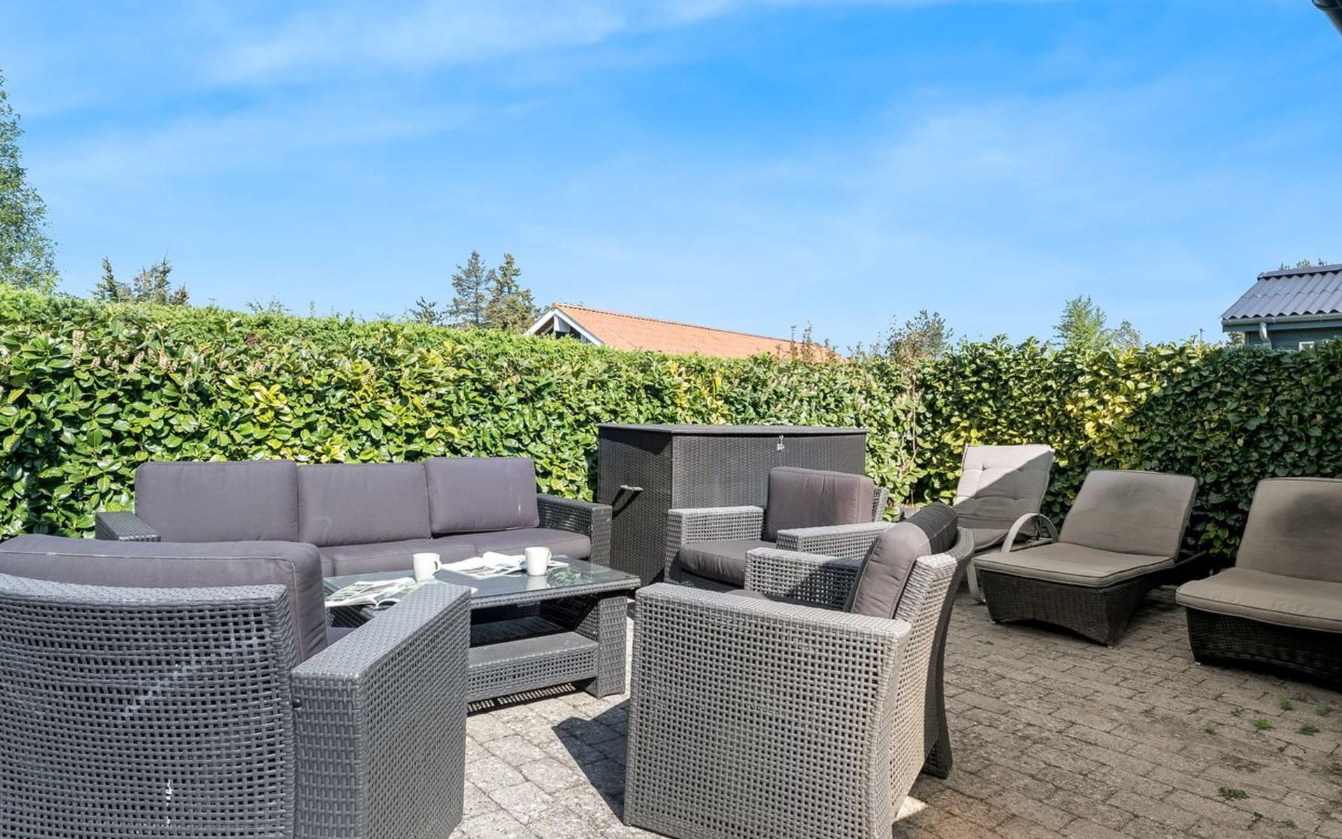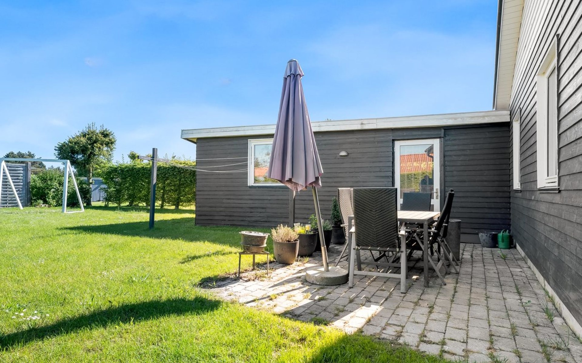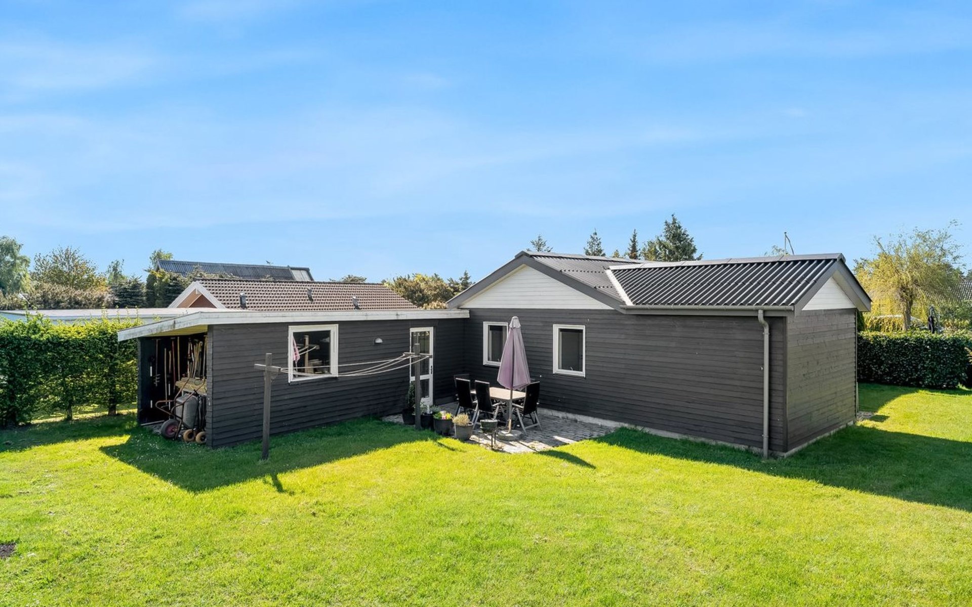 Single-family house, built in 1970. 600 m from the sea. Private: property 1'100 m2, well-kept garden. Barbecue. In the house: trampoline, washing machine. Parking at the house. Carport. Grocery 600 m. The owner does not accept any youth groups.