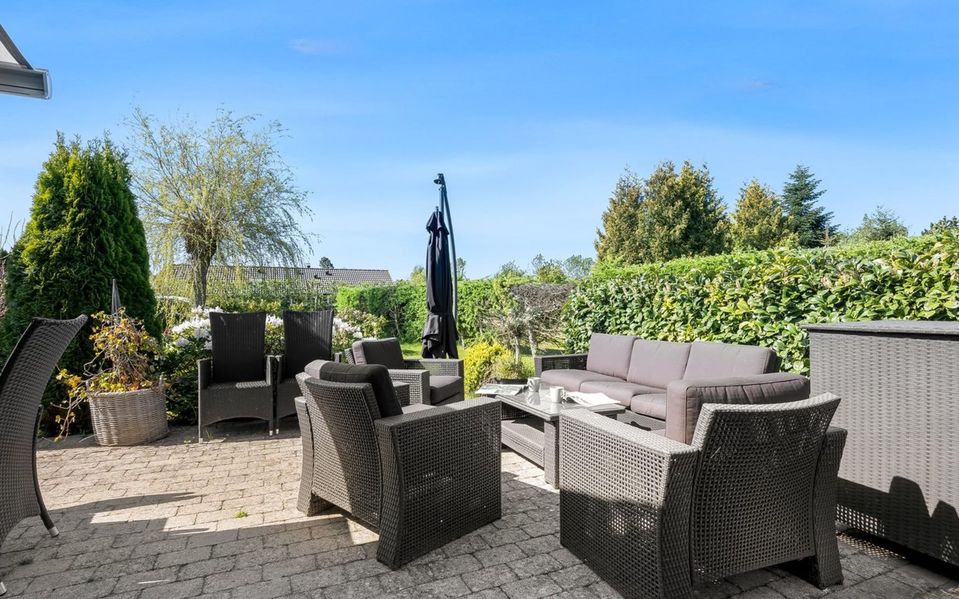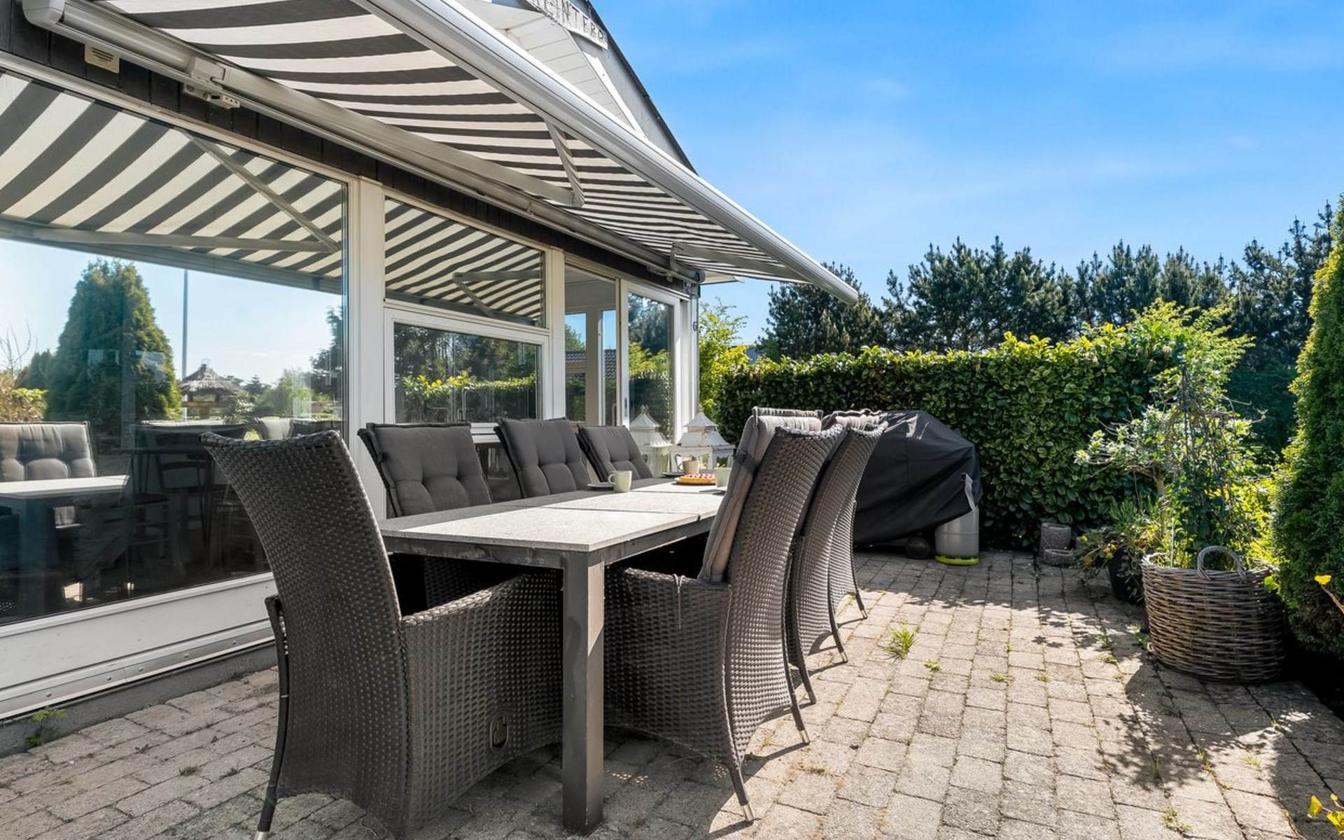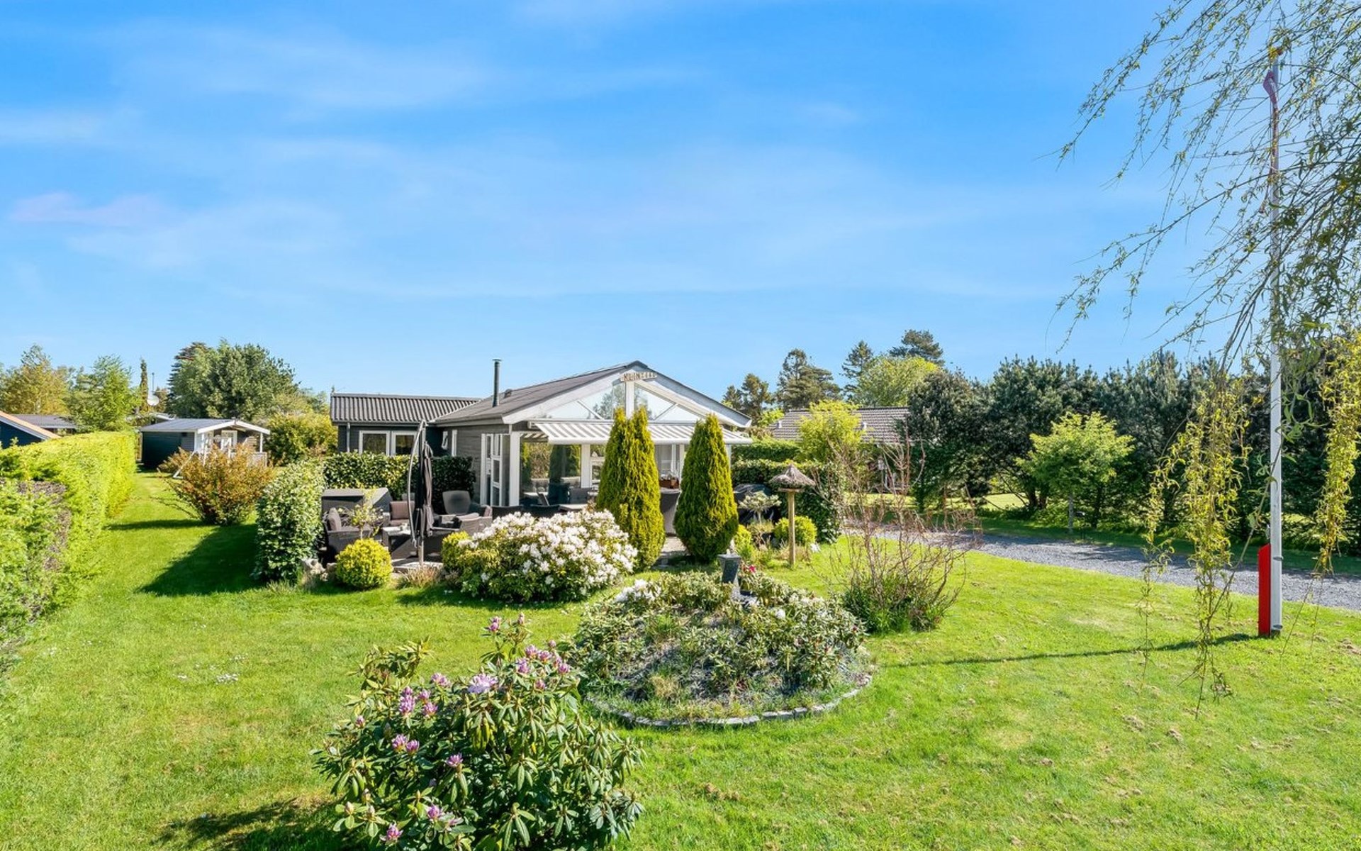 Single-family house, built in 1970. 600 m from the sea. Private: property 1'100 m2, well-kept garden. Barbecue. In the house: trampoline, washing machine. Parking at the house. Carport. Grocery 600 m. The owner does not accept any youth groups.