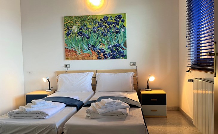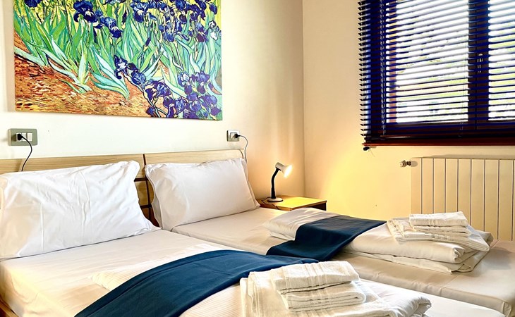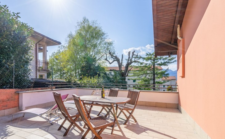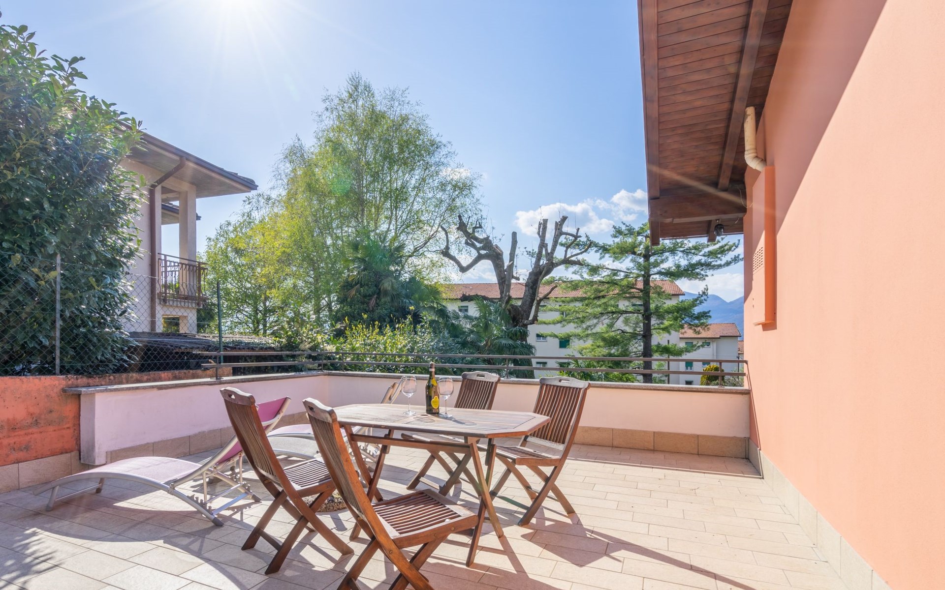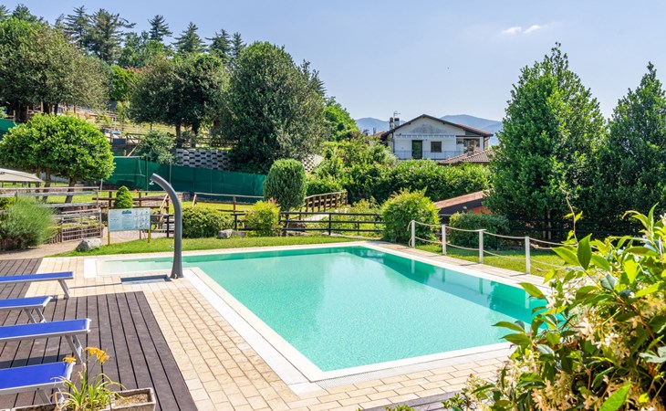 Holiday development "Residenza Agrifoglio". 17 apartments in the property. 2 km from the centre of Luino, in a sunny, elevated position, 3 km from the lake, in a cul-de-sac. For shared use: property (fenced) with lawn and trees, swimming pool (12 x 5 m, depth 140 cm, seasonal availability: 01.May. - 30.Sep. pool opening hours: 09:00-20:00). Outdoor shower, table tennis, volleyball court, barbecue, children's playground. In the house: washing machine (for shared use, extra), heating available only from 05.Oct. - 25.Apr.. 50 m long steep motor access to the house. Parking on the premises. E-charging station. Shop 2 km, supermarket 2 km, restaurant 1.5 km, bar 1.5 km, bus stop 400 m, railway station "Luino" 3 km, shingle beach "Le Serenelle" 3 km, indoor swimming pool 400 m. Tennis 400 m. Nearby attractions: Maccagno 12 km, Laveno 20 km. Please note: car recommended, no lift. Residence with electric gates. Animals in the neighbourhood. Residence consisting of apartments distributed in small buildings with a small garden and / or private balcony. One parking space for each apartment (2 for 6-person apartments). Unattended swimming pool. 2 charging stations available (the activation card must be booked in advance).