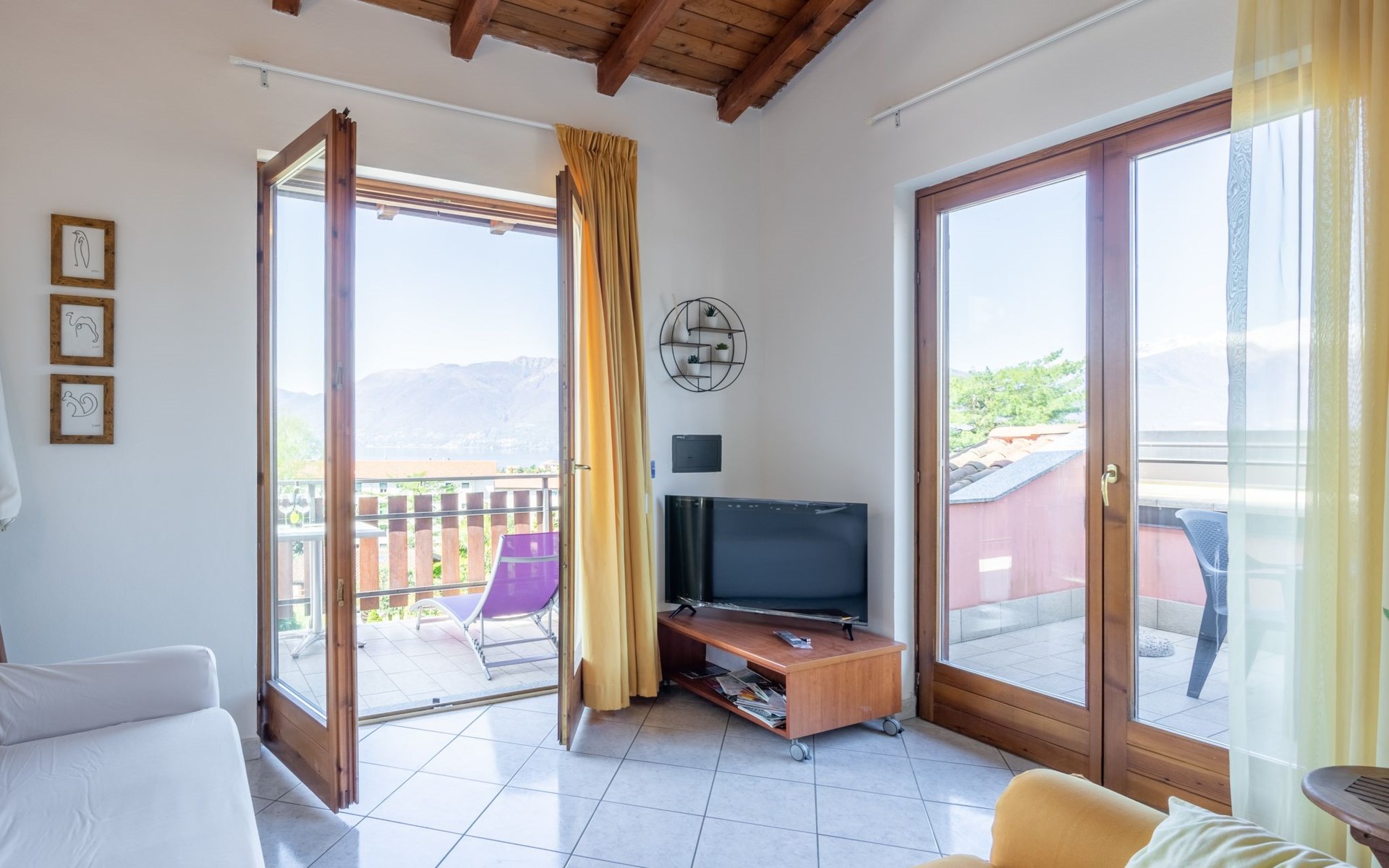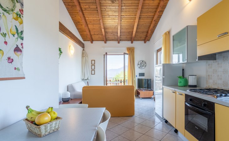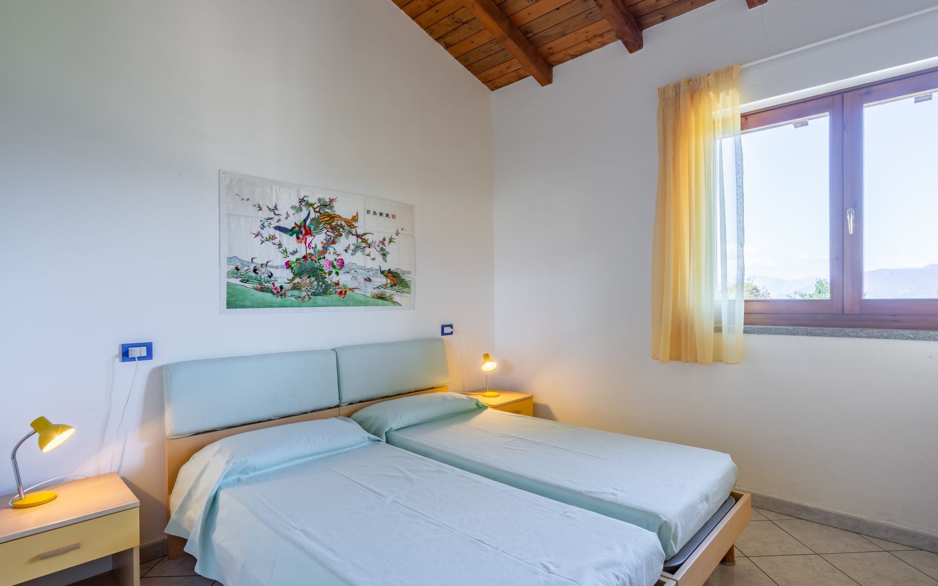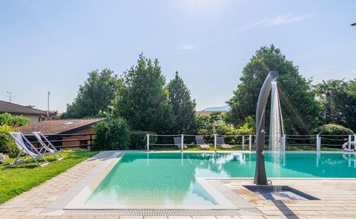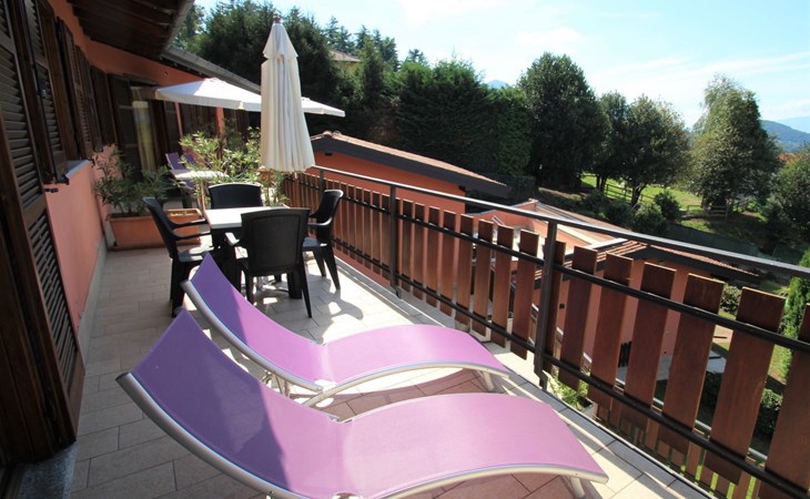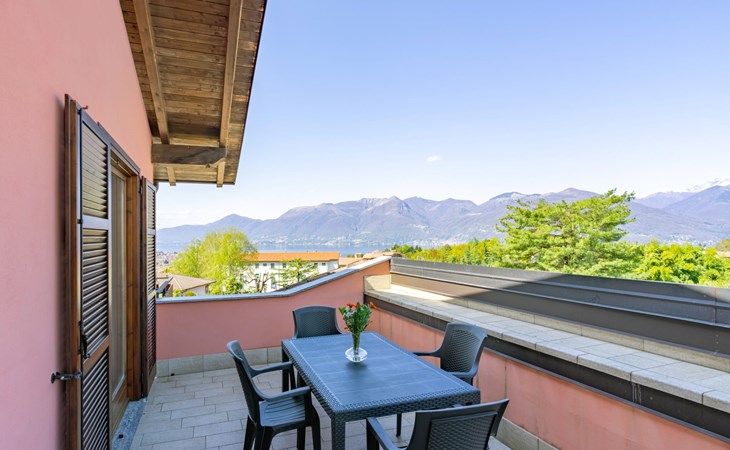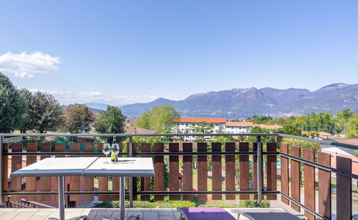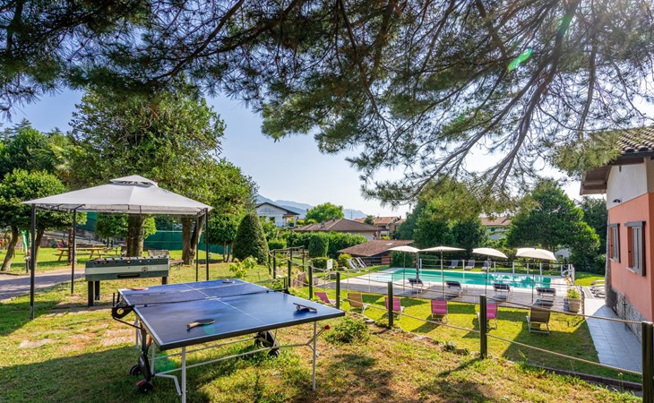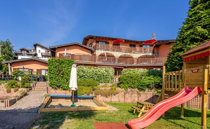 Holiday development "Residenza Agrifoglio". 17 apartments in the property. 2 km from the centre of Luino, in a sunny, elevated position, 3 km from the lake, in a cul-de-sac. For shared use: property (fenced) with lawn and trees, swimming pool (12 x 5 m, depth 140 cm, seasonal availability: 01.May. - 30.Sep. pool opening hours: 09:00-20:00). Outdoor shower, table tennis, volleyball court, barbecue, children's playground. In the house: washing machine (for shared use, extra), heating available only from 05.Oct. - 25.Apr.. 50 m long steep motor access to the house. Parking on the premises. E-charging station. Shop 2 km, supermarket 2 km, restaurant 1.5 km, bar 1.5 km, bus stop 400 m, railway station "Luino" 3 km, shingle beach "Le Serenelle" 3 km, indoor swimming pool 400 m. Tennis 400 m. Nearby attractions: Maccagno 12 km, Laveno 20 km. Please note: car recommended, no lift. Residence with electric gates. Animals in the neighbourhood. Residence consisting of apartments distributed in small buildings with a small garden and / or private balcony. One parking space for each apartment (2 for 6-person apartments). Unattended swimming pool. 2 charging stations available (the activation card must be booked in advance).